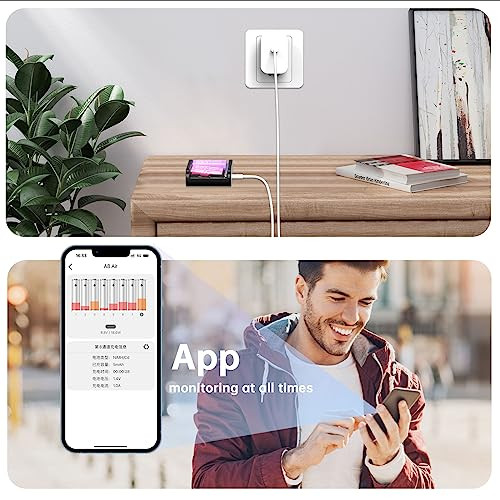 Faster Charging & Intelligent Operation:The R8 Air battery charger is designed for speed and intelligence. It charges faster than ever, and operates with smart, fully automatic features 8 Independent Charging Slots:The R8 Air battery charger offers 8 independent battery slots. This means you can simultaneously charge 8 batteries of varying sizes and types. It's a compact powerhouse that ensures efficient charging for your batteries Multi-Functional AA AAA Smart Charger:This charger automatically detects battery types and configures the appropriate charging method. It's compatible with various battery types, including eneloop, panaloop, NiMH, NiCad, Li-Ion, and LiFePO4 batteries Full-Color LED Indicator:The LED indicator provides clear information on battery status, ensuring you're always in the know about your charging progress APP Connection:Connect the battery charger to the app using Bluetooth. This app offers instant updates on power levels and charging status. You can preset battery type and charging current, and easily update firmware through the app, ensuring you're always equipped with the latest features and improvements