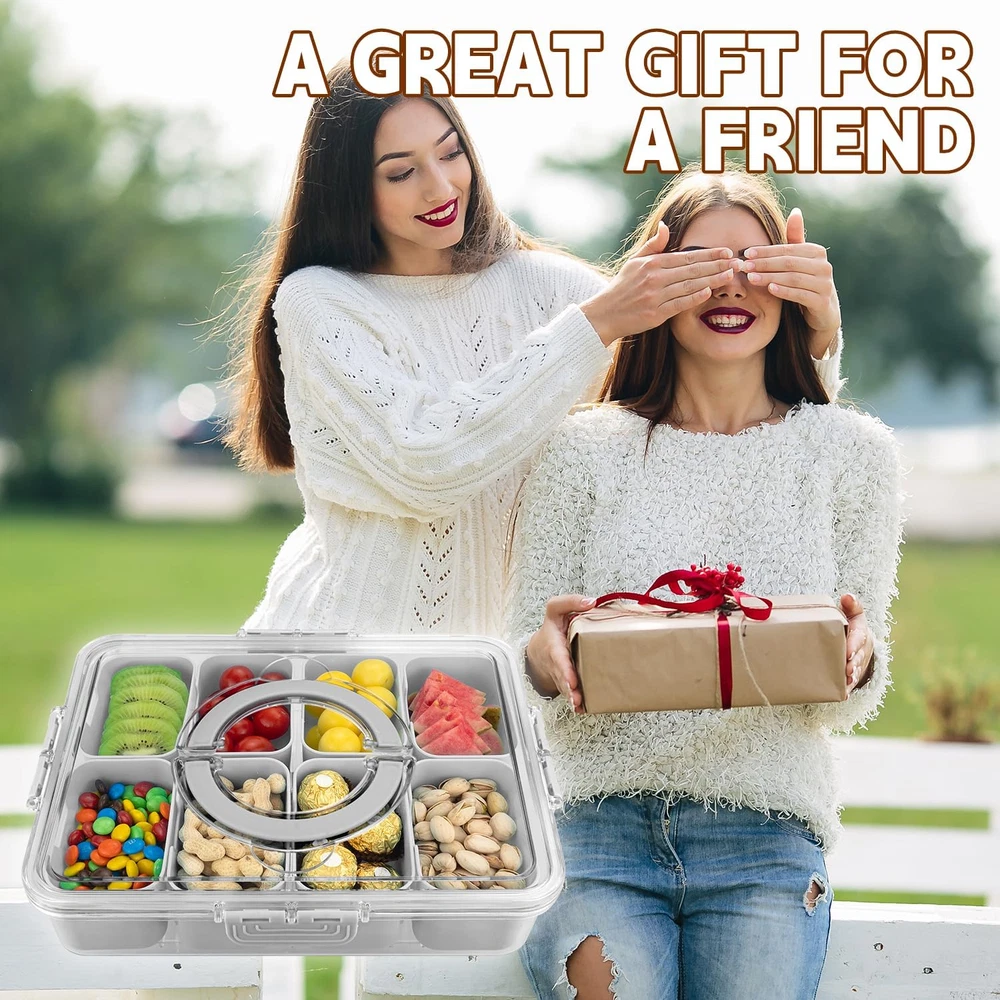 【High-quality Material】 The divided serving tray with lid is made of selected,high-quality food grade plastic,which is odourless,durable and BPA-free and can be reused for many years. 【8 Independent Partitions】 The snack box with compartments has 8 removable dividers with a capacity of 480 ml each and a total capacity of 3840 ml, perfect for storing snacks, fruits, spices, nuts and other snacks. 【Easy to Carry】Portable Snack Box The clear outer container has a portable handle on the lid.Thanks to the snap closure,the lid stays firmly attached to the container,so you can take the snack box anywhere with the help of the handle.It is suitable for outdoor travel, family gatherings and other occasions. 【Easy to Clean】We recommend washing the lid and outer box by hand with warm water.It cannot be cleaned in dishwasher. 【Customer Service】Customer satisfaction is our top priority.If you have any other questions,please contact us through Amazon message.We will try our best to service you. Product Description