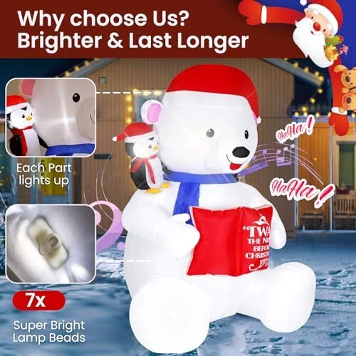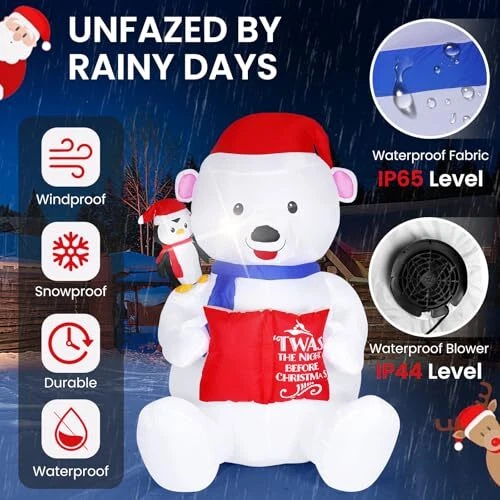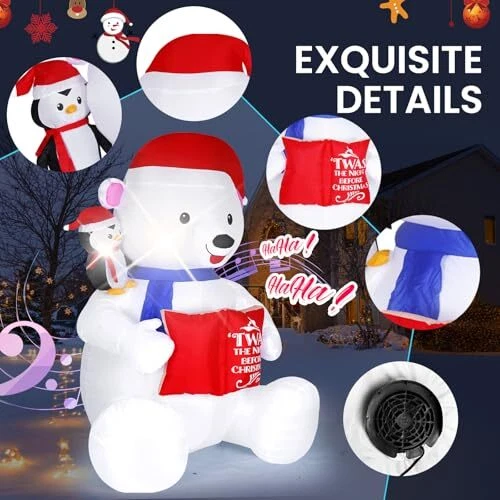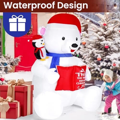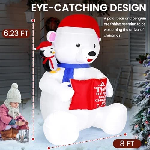 30 Days Return Policy Fast Delivery Trusted seller 8FT Christmas Inflatable Decorations, Christmas Bears, Christmas Penguins, Christmas Books, Indoor/Outdoor Inflatable Christmas Ornaments, Suitable for Yard Lawn Garden Decoration Product Description Description: The product you received is an adorable, 8-foot-tall mother polar bear. Now she had a book in her hand, engrossed in it. This book tells the story of the origin of Christmas and related stories. On the mother bear's shoulder lies a young penguin, listening intently to her story. What the product does: The bottom of the product is equipped with a speaker that can play the sound of the mother bear telling the penguin a story, as well as the content of the book. In addition, the polar bears and penguins are equipped with bright LED lights, which can quickly create a happy atmosp even at night. It is the perfect choice to make your Christmas happy and unique, and it is also a great Christmas gift for children. The design and inspiration of the product are derived from the designers' hard thinking day and night, so as to produce such a creative and inspirational Christmas inflatable model product loved by all ages. You have such an aesthetic, and this product is so exquisite, isn't it just the gift you've been looking for? It's , waiting for you... Surprise! You received a polar bear with Christmas decorations that read books and tell stories. It can be plugged in and inflated to use, the speaker quality is excellent, clear and pleasant, and it is extremely easy to use. Auxiliary materials are equipped with water bags, filled with water and placed inside, which can make the product more stable. In addition, it is also equipped with ground plug and pull rope, whether indoor or outdoor, can be used. The product is made of 210T waterproof fabric, not afraid of wind, rain and sun. The fan is also waterproof, so it can be used outdoors even if it rains, so that our Christmas joy is not affected. This is a great Christmas decoration that will definitely bring you and your children a joyous Christmas holiday, and it is also a cute Christmas inflatable polar bear that your children will love. The product incorporates many traditional Christmas elements, and forms a unique distinction from other products in terms of functionality. With it, you will be a unique presence, and the neighbors and neighbors' children will cast envious eyes. You can use it to decorate the yard, lawn garden, to add a strong festive atmosp for Christmas. It is also a great gift for children. Shipping Returns Payment Shipping Shipping is FREE to all addresses other than APO/PO boxes in the lower 48 states. All our stock ships from US-based warehouses. Shipped via USPS or UPS (depending on location and package weight) Unless stated otherwise, all orders will ship within 24-72 hours of your payment being processed. Check our feedback to see the great reviews of FAST shipping we offer. Returns As our valued customer, we will do our best to make sure the product you receive arrives to you on time and as expected. If you are not satisfied with your purchase, please contact us within 30 days of receiving your order to process a return. Payment We currently accept payment via eBay managed payments only. Once payment is cleared, we will dispatch your shipment within 1-3 business days. Please refer to the "Shipping" tab for more information regarding shipping speed to your destination.