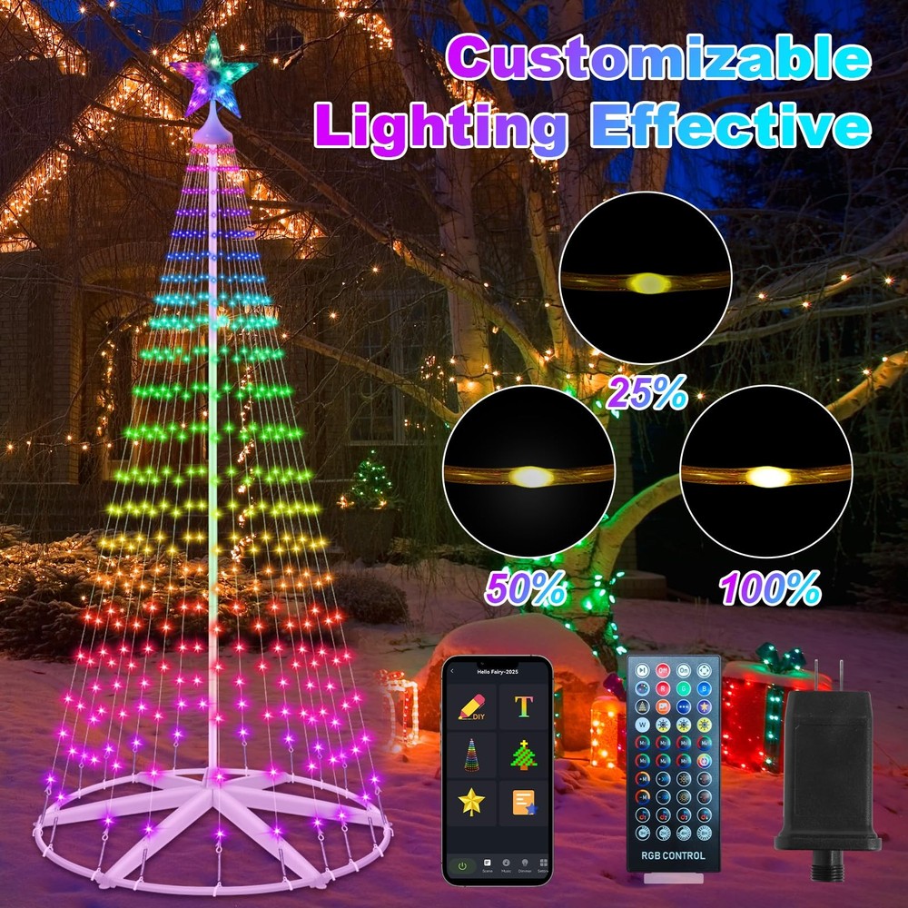 This Christmas tree is a total showstopper! The 388 RGB LEDs create a dazzling light display, and the smart app makes it super easy to switch colors and effects. Just be mindful of the timer settings if the lights turn off—and keep the control box dry for outdoor use. Perfect for adding festive magic to any space!