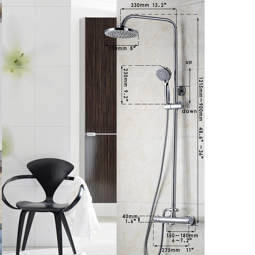 Features: Type of faucet: thermostatic Rasinfall shower faucet Features: hand shower in the set, shower with rain nozzle Installation Type: Wall-mounted Shower System Mounting Holes: Two Holes Number of handles: single handles Pipe type: 3 Way The third mechanism of water management Style: modern Consumption: 1.8 GPM (6.81 l / min) Cold and hot switch: Yes Valve Type: Ceramic Valve Rain Material: Plastic Handshower Material: Plastic Body material: faucet: brass Shower arm in the set: Yes Manual in the kit: Yes The package includes: Spray Rainfall Shower Head Shower arm Shower Handle Precipitation brass body All fitted accessories 8"Chrome Shower Faucet Set Thermostatic Rainfall Spout Head Wall Mount Mixer Tap Features: Type of faucet: thermostatic Rasinfall shower faucet Features: hand shower in the set, shower with rain nozzle Installation Type: Wall-mounted Shower System Mounting Holes: Two Holes Number of handles: single handles Pipe type: 3 Way The third mechanism of water management Style: modern Consumption: 1.8 GPM (6.81 l / min) Cold and hot switch: Yes Valve Type: Ceramic Valve Rain Material: Plastic Handshower Material: Plastic Body material: faucet: brass Shower arm in the set: Yes Manual in the kit: Yes The package includes: Spray Rainfall Shower Head Shower arm Shower Handle Precipitation brass body All fitted accessories Payment Delivery details Terms of sales About us Contact us Payment We accept PayPal only. All major credit cards are accepted through secure payment processor PayPal. Please leave note in PayPal when making the payment if you have any special requests. Unpaid auctions will be reported to eBay. Contact us if you need to file an extension for any late payment. Positive feedback will be posted once the payment has been received. Sales tax and import duties are not include the price Delivery details Usually shipment can be arranged within 1-3 working days after receiving payment. We usually ship by SpeedPAK,FedEx, UPS, TNT,DHL,CNE. Usually the delivery time is 5-15 days. Remote areas will needs extra shipping cost and more time. We ship according to the address on PayPal. (After you make the payment, PayPal will send us an email automatically, informing us the payment and shipping address.) So please make sure your address on PayPal is the right one.We do not ship to PO.BOX address Mail transit time is best estimated, but not guaranteed. As transit time varies. Terms of sales 24 months Warranty. Buy with confidence! Buyer should check item when receiveing item, if you have a problem, please take pictures for us soon, we will solve this problem as soon as possible . About us Our company is an established trading company enjoying a high reputation. We own our own specialized factory more than 10 years. We can ensure that you will get a superb quality item with the best price. Contact us to resolve the problem of defective products within seven days of receipt of delivery. Contact us I describe items as well as I can. If I have missed something, please let me know. Please e-mail me before leaving feedback if you are unhappy with your item, so we can work it out. Our working time is from 8:00 a.m to 22:00 p.m (GMT+8) of throughout a week.