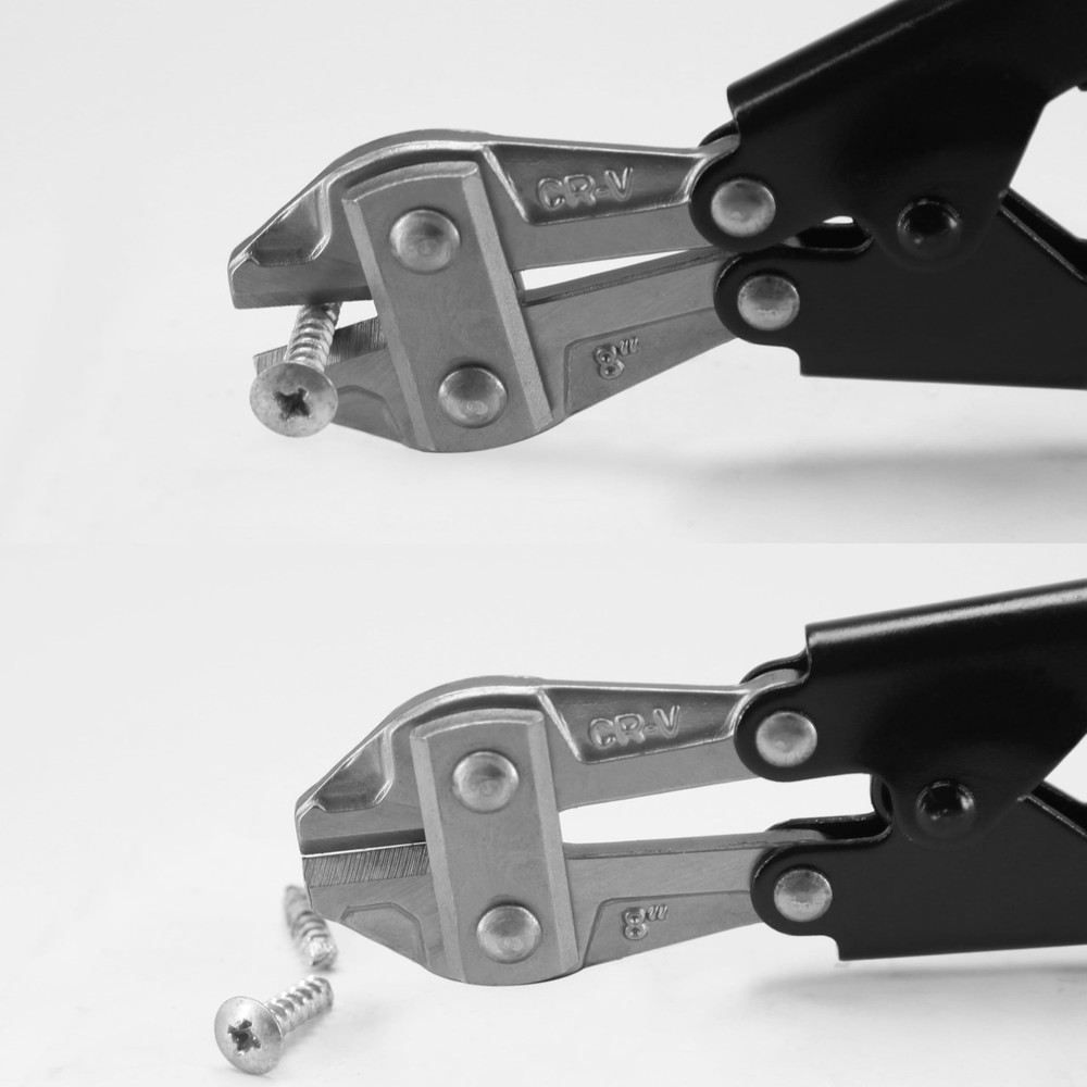 Specifications Material: Steel+ABS rubber coating Size: As shown in the picture The package includes 1 x Mini bolt cutter: 8.66 "/22cm long, 2.56"/6.55cm wide Blister cardboard packaging Kind reminder Manual measurement, please allow for small size errors. Due to different screens, there may be slight differences in color. Please understand Warning: Due to the sharp edges of the pliers, please avoid using or coming into contact with children under 18 years old Mini bolt cutter, with rust proof oil layer on the surface, is a normal condition 1、Duty mini bolt cutter. Our small bolt cutter is made of chrome vanadium steel, with a sharp blade and a maximum cutting capacity of 2.5mm (3/23in). 2、Portable with anti slip handle. Our mini bolt cutting machine has a small volume and is easy to carry. It is designed with a soft anti slip handle, making it easy to operate with one hand. 3、Anti rust bolt cutting pliers, these heavy-duty bolt cutting pliers have anti rust black coating and are durable. (There is a rust proof oil layer on the surface of the product, which is a normal situation.) 4、Mini bolt cutting machine is very suitable for cutting small bolts, screws, and invisible steel wire mesh on balconies. We do not recommend using this small bolt cutter to cut locks, padlocks, iron chains, steel bars, etc. that are too large or super strong. 5、The maxi cutting capacity is 2.5mm (3/23in), the length of the mini wire cutting pliers is 22cm (8.66in), the blade length is 5.5cm (2.16in), and the width when closed is 6.5cm (2.56in)
