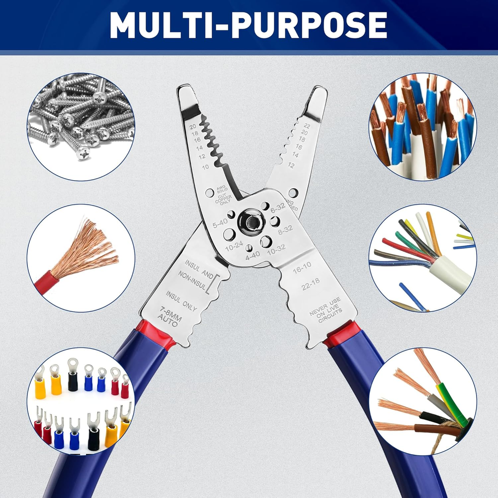This wire stripper is a game-changer for DIY projects and professional work! The all-in-one design handles stripping, crimping, cutting, and more with precision. The stainless steel build feels sturdy and resists rust, while the comfortable grip makes long sessions easy. It effortlessly strips 10-22 AWG wires, saving time and hassle. Perfect for electricians, hobbyists, or anyone needing a reliable, multi-functional tool. A must-have for your toolkit!