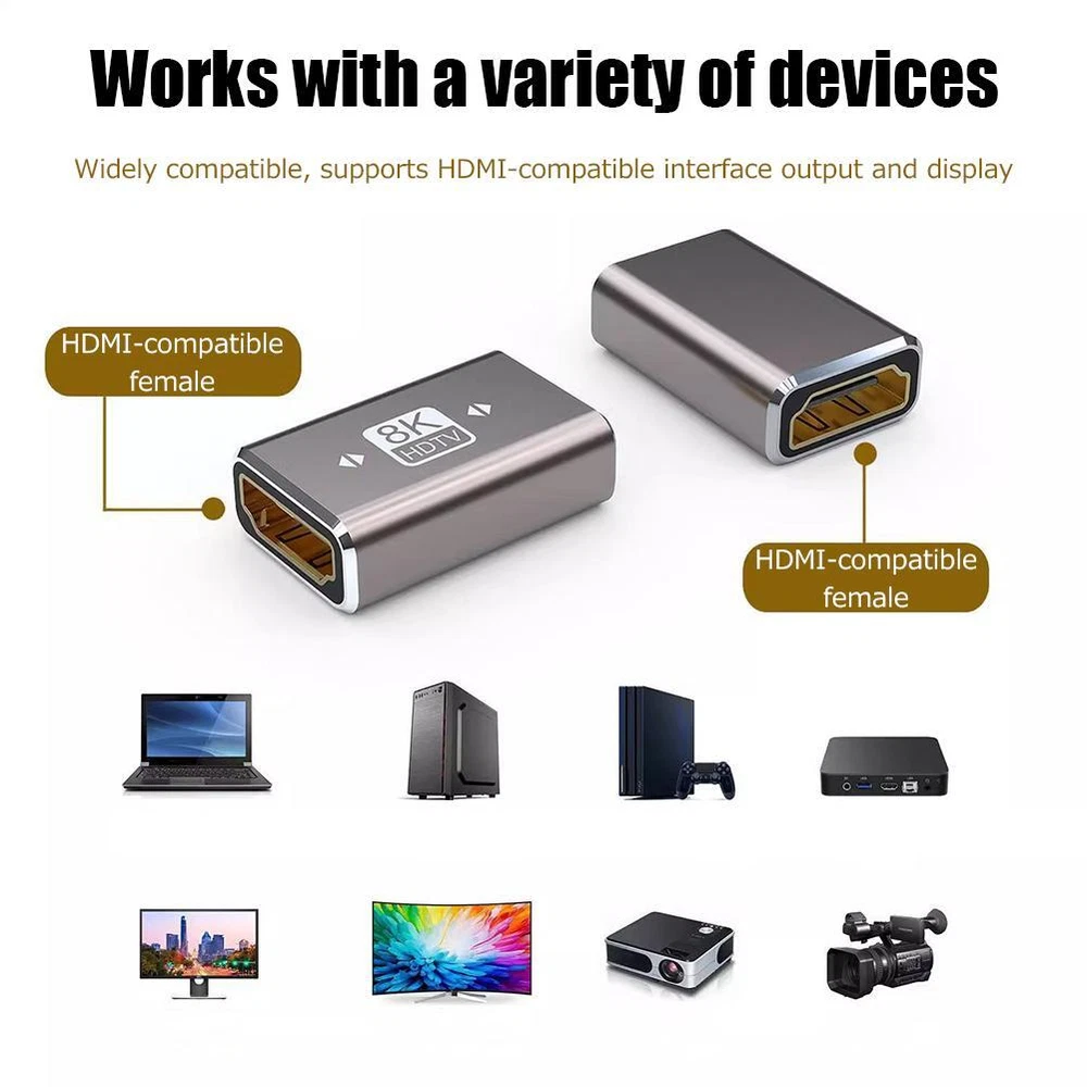 Description Description&Preview shipping&policy Description: Product name: Compatible with HDMI 2.1 high-definition adapter Shell material: aluminum alloy Features: 1. Synchronous audio and video transmission, large screen display, realistic picture. Bring you a different office experience 2. Arbitrary extension of long-distance transmission, two compatible HDMI short lines connected into one line, can achieve longer distance transmission, easily solve the problem of insufficient length of decoration/pre-buried line 3. Aluminum alloy shell protection, aluminum alloy shell, fast heat dissipation, wear-resistant and anti-fingerprint to enhance computer protection Note: To achieve 8K effect, you need to be equipped with 8KHMDI line and support 8K equipment to achieve Single gross weight: 20g Packing method: bagged Packaging includes: adapter*1 Preview: Thank you for your purchase Problems? You can follow below process to contact us. There is a time zone difference,but we will do our best to quickly response to your questions: Shipping ● We will arrange shipping for you within 24 Hours after payment cleared except the holidays. ● We always send the item to the address you give us on Payoneer to ensure the security of the item. If you have changed your address, or want us to ship to another address, please change to the new address when you pay us with Payoneer, otherwise we will not be responsible if the package is lost. Payments We accepts Payoneer only If you have any questions about the payment,please contact us through eBay message. Import Duties In case some duty is due Upon delivery, it is your responsibility to meet that expense and this may cause delays to delivery schedule and you may have to pickup goods at the customs office. Terms & Conditions By bidding on this item,the Buyer agrees to all of the terms and conditions as outlined in this listing .please ensure to read and agree to All eBay terms and Conditions before bidding. All pictures are for illustration purpose only and Colours may vary slightly. Our store obeys all eBay Rules and Policies. Returns Policy To Return an item you must contact us and take photos of your item to clearly show any damage or unusual aspects of it. Approved returns will be subject to inspection on arrival. Items must be returned in original condition with all original packaging. All shipping and handing charges are non-refundable Return delivery costs are the responsibility of the buyer. We will cover the cost if sending replacement/repaired items. Within 7 days after receiving your products, we offers a no-hassle 7 day exchange/replace only if your items are found to be defective by manufacturer.