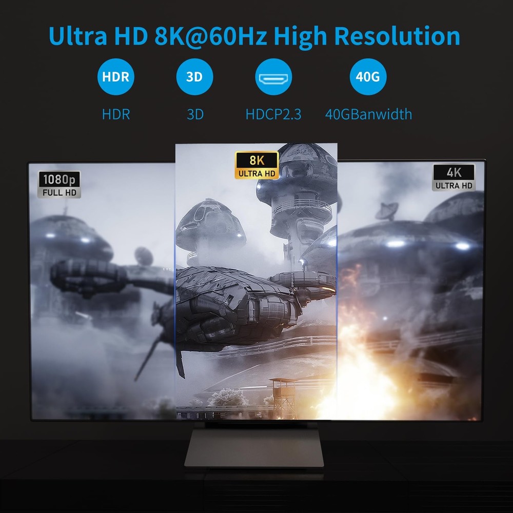This HDMI splitter is a game-changer for anyone needing flawless mirroring across two displays. The 8K@60Hz and 4K@120Hz support delivers stunning clarity, and the EDID/HDCP2.3 compatibility ensures seamless performance. Perfect for home theaters or presentations, it’s easy to set up and works flawlessly—no lag or signal loss. The ability to cascade for more monitors is a huge plus. Highly recommended for crisp, high-res duplication!