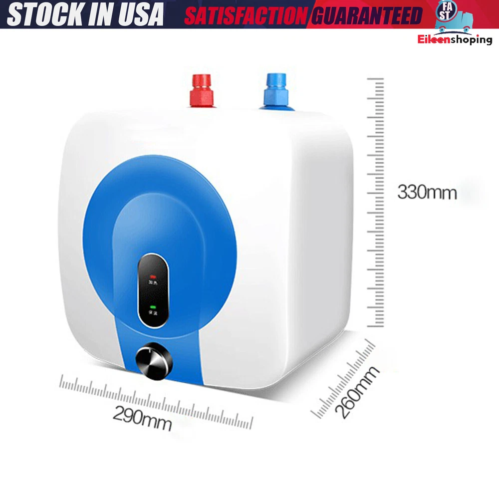 8L Electric Hot Water Heater 110V Compact Mini-Tank Storage, RV Small Output HOT Description: Y our kitchen safety water heater expert; a gift you look forward to, because this gift, let family feel each other's warmth; 8L gold capacity, extend happiness a little more; four protection system, anti leakage, anti dry burning, anti overheating, anti over - pressure, give you and your family more security . Specifications: l Voltage : 110 V / 60 HZ l Capacity: 8L l Maximum temperature: 7 5 ℃ l Rated power: 1500W l Heating time: 8-15 minutes (according to different water temperatures) l Applicable water pressure: 0.05-0.6mpa l Product size: 33 * 26 * 29 cm l Package size: 37 * 34 * 33 cm l Product weight: 4.5 KG l Packing weight: 5 KG l Waterproof level: IPX4 l Applications: The upper outlet is suitable to be installed under the basin l Scope of application: suitable for installation in hotels, toilets, kitchens, hair salons Features: l Four protection system: anti leakage, anti dry burning, anti overheating, anti over - pressure . l Knob thermostat : The temperature can be controlled freely, and it is more convenient to adjust the temperature. l Safety anti leakage plug : Using a new generation of leakage protection plug, it can be used more safely in humid environment. l Zinc magnesium aluminum alloy knob, durable and comfortable, no jamming l The back adopts zinc alloy hanging board, which is firm and durable l Using stainless steel heating tube, durable, anti-corrosion, high utilization rate, good thermal conductivity, heating time reduced by 37%, environmental protection and power saving Packing list: 1 x 8L upper outlet water heater - Blue (110V) Payment Delivery details Terms of sales About us Contact us Payment We accept ebay payment 。 Fees such as import duties, taxes are not included in the item price or shipping costs. These charges are the buyer's responsibility. Delivery details Shipping: 2-9 working days to: USA Terms of sales We maintain high standards of excellence and strive for hundred percent customer satisfaction. Feedback is very important to us. We hope that you contact us immediately before you give neutral or negative feedback, so that we can address your concerns. It is impossible to address issues if we do not know about them! About us Your satis faction is our ultimate goal. We work hard to earn your trust and future business. Our certified technicians have tested each item before shipping. The unit comes with 1 year limited warranty on all manufacturing defects. a) If you receive a defective item, you may return it or ask for a discount. Please contact us within 14 days after you receive the package. b) What you returned must be intact and in its original packaging as re? u. Customer is responsible for shipping costs of the returned item. c) We will cover the cost of shipping back t with the shipping rate indicated in the registration page. We will send you a new unit or refund the full payment you paid. Thank you. Contact us Business Hour Business Hour: Monday To Friday: 8:30 AM to 5:00 PM (Beijing China time) Due to time zones, our reply to your questions may not be immediately. But within above working time, we will reply your email within 24 hours. If it's non-workdays, please kindly be patient and wait till Monday. Please contact us with ebay message. Please feel free to contact us if you have any questions. Monday To Friday: 8:30 AM to 5:00 PM (Beijing China time) Due to time zones, our reply to your questions may not be immediately. But within above working time, we will reply your email within 24 hours. If it's non-workdays, please kindly be patient and wait till Monday. Please contact us with ebay message. Please feel free to contact us if you have any questions. ~Feature~ AAAAA+ SELLER!!! Features Fast shipping from US Warehouse MPN ( MPN ) n/a Warranty 2 years * Feature * Creative Design,Durable Material,Beautiful Appearance Note: Do not send to Brazil Bundle Description: No Feature 1 *Stable characteristic*, *high reliability* shipping notice Can not ship to Puerto Rico,Alaska/Hawaii Item location: CA /NJ /Austell Transportation does not include: canarias shipping notice: Can not ship to Puerto Rico,Alaska/Hawaii Brand Unbranded MPN Does Not Apply Water-Proof level IPX4 Rated power 1500W Voltage 110 V / 60 HZ Capacity 8L Maximum temperature 75 ℃ Heating time 8-15 minutes (according to different water temperatures) Applicable water pressure 0.05-0.6mpa Product size 33 * 26 * 29 cm Package size 37 * 34 * 33 cm Product weight 4.5 KG Packing weight 5 KG Applications The upper outlet is suitable to be installed under the basin Scope of application hotels, toilets, kitchens, hair salons Mounting Location Indoor Power Source Corded Electric Type Tankless Water Heater/Boiler Heating System Instantaneous (Tankless) Color Blue Water Temperature Range Max 75 ℃ Power 1500W EAN Does not apply UPC Does not apply ISBN Does not apply