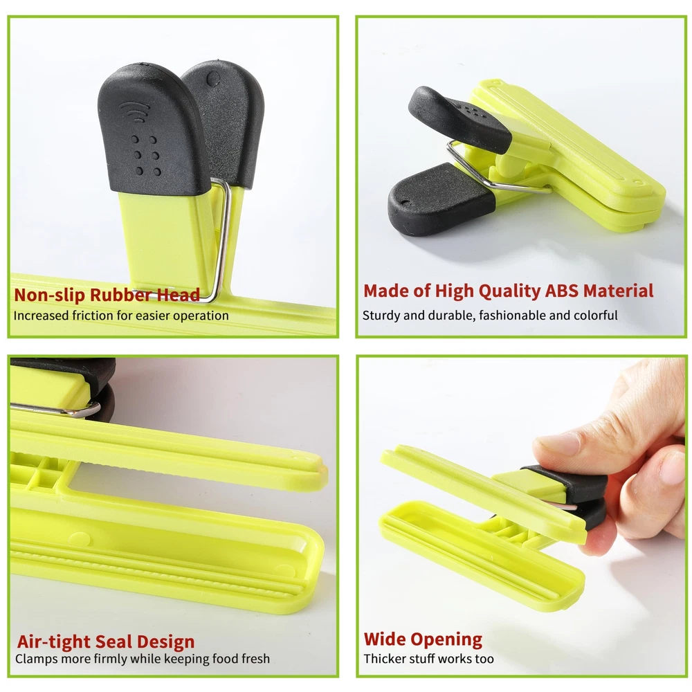 8PCS Chip Bag Clips, HIA Stylish Wide Open Bag Clips for Food Storage, Heavy Seal Grip, Assorted Size (6"*3.3" for 4 and 3"*2.5" for 4) 1. Versatile Size Assortment: Adaptability for All Bag Sizes, Our 8 PCS chip clips offers a thoughtful combination of large and small bag clips to cater to various bag sizes. The 6-inch by 3.3-inch large chip clip are perfect for sealing family-sized bags, while the 3-inch by 2.5-inch small chip clips are ideal for smaller snack pouches. Enjoy the flexibility of having the right chip bag clips for every package in your kitchen. 2. Vibrant Color Variety: Infuse your kitchen with personality using our vibrant food clips colors. The bag clips for food includes four lively options which are red, blue, orange, and yellow, providing not only functionality but also a visually appealing touch to your pantry. Easily differentiate between different snacks or coordinate the bag clips for food storage with your kitchen decor for a cohesive look. 3. Premium Durability: Experience the reliability of our bag clips for chips, meticulously crafted for durability. The robust construction of this clips for chips and other food bags ensures a secure grip on bags, keeping your snacks fresh for longer. No more worries about clips breaking or losing their strength over time. Invest in a chip bag clip that stands up to the demands of everyday use. 4. Clutter-Free Organization: Tired of chaotic pantries and spilled snacks? Our food clips for bags is designed to bring order to your kitchen. Efficiently seal bags of chips, crackers, and other pantry staples, preventing spills and maintaining freshness. Say goodbye to the frustration of disorganized cabinets and hello to a well-organized, clutter-free kitchen. 5. Stylish and Functional Design: Elevate your kitchen with the perfect blend of style and functionality. Our chip clips bag clips food clips not only serve a practical purpose but also boast a sleek design that adds a touch of sophistication to your storage solutions. Upgrade your kitchen essentials with a bag clips set that seamlessly combines style and utility, enhancing the overall aesthetic of your space. Shipping We offer FREE shipping on all orders! We use a selection of shipping services such as UPS, FedEx, USPS etc. We only ship to the lower 48 states, no APO/FPO addresses or PO Boxes allowed. Local pickups and combined shipping options are not provided at this time. Return You can return a product for up to 30 days from the date you purchased it. Any product you return must be in the same condition you received it and in the original packaging. Please keep the receipt. Payment We accept payment by any of the following methods: PayPal Please pay as soon as possible after winning an auction, as that will allow us to post your item to you sooner! Feedback Customer satisfaction is very important to us. If you have any problem with your order, please contact us and we will do our best to make you satisfied. Contact Us If you have any queries, please contact us via ebay. We usually respond within 24 hours on weekdays. Please visit our eBay store to check out other items for sale! Thank you for shopping at our store.