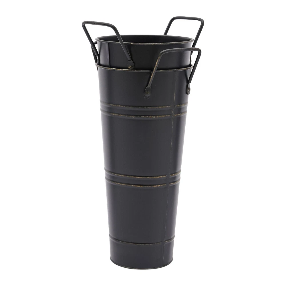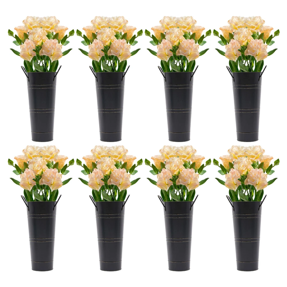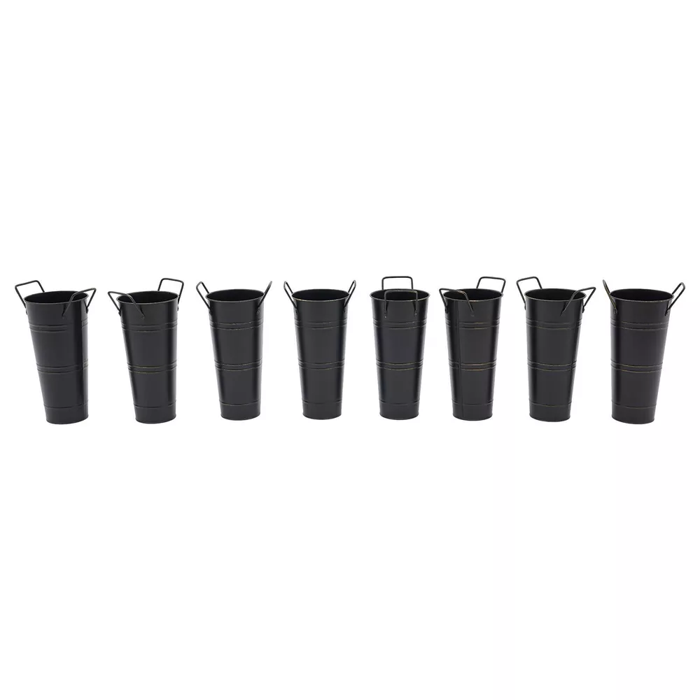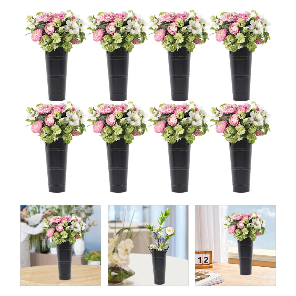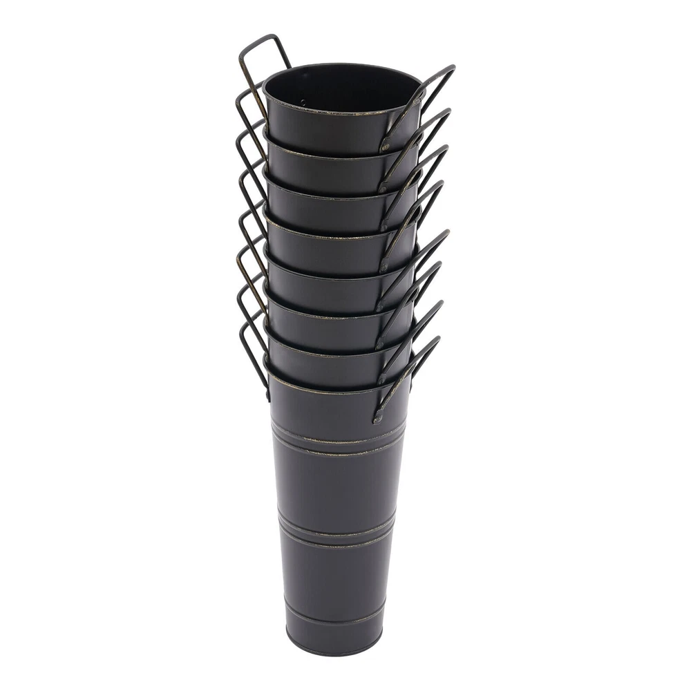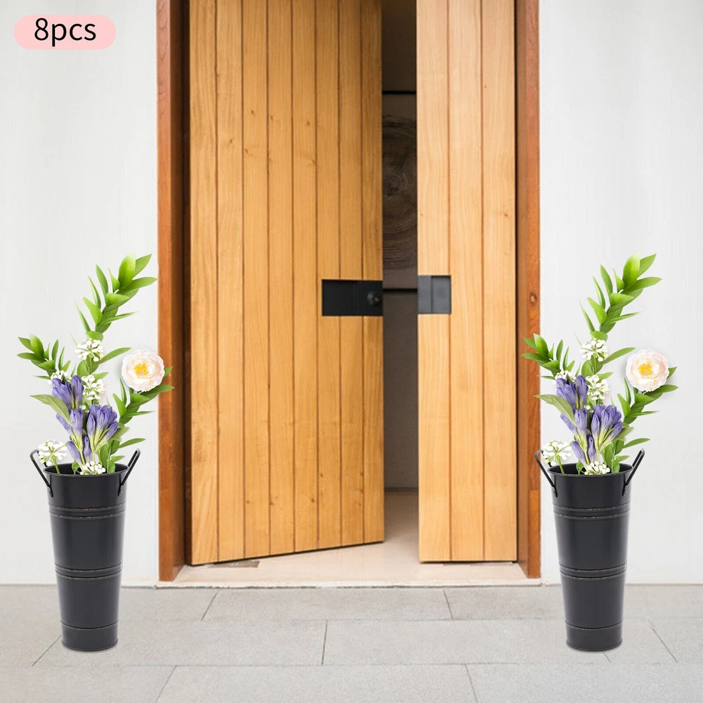 8PCS Galvanized Metal Vases Flower Bucket Vases, Black Flower Vases for Bouquet Description Our metal bucket vase, with its simple cylindrical shape, can harmoniously match various flowers, from fresh wildflowers to noble and elegant roses to display different decorative styles; It can also create a picturesque scene even without flowers, showcasing a unique attitude towards life. Whether as the finishing touch of home decoration or as a gift for family and friends, it is an ideal choice, making every aspect of life full of harmonious coexistence between art and nature. Key Features Strong and Durable : The product is made of thickened iron(0.23mm) with a galvanized finish to prevent rust, deform, and break, together with the waterproof coated interior, providing excellent durability and long service life. Practical Function : The 9.06-inch depth and 4.33-inch opening diameter are not picky about the flower material, whether it is a single large branch bouquet or a complex combination of small flowers, this vase can show their beauty and flexibility to adapt to a variety of decorative needs. Elegant Decoration : The classic retro appearance of the galvanized flower vase can match any home decoration and add an elegantly pristine ambiance to your home. Paired with real, artificial flowers, or plants, it greatly elevates the look of your living space. A pack of 8 : 8 vases can meet your different space placement needs, thus making the whole space layout more reasonable. DIY Fun : With these vases, you can invite your friends and family to join the DIY project and exercise your hand ability, stimulate your imagination and creativity, and have fun in it. Installation-Free : You can use this product directly after receiving it without additional installation, which saves you time and energy. Effortless Clean : A simple structure and smooth surface make this product easy to clean. You only have to wipe it with a damp cloth. Excellent Gift : You can give this practical product to your family, friends, and flower and plant lovers on various occasions such as anniversaries, holidays, Christmas, Thanksgiving, New Year's, and weddings, and share the beauty of nature with your loved ones. Good Customer Service : We stand behind all our guests and look forward to assisting you with your purchase. It is our pleasure to answer your confusion and questions. The end of the story between us is not "we sell and you buy". Details Practical Handles : The ergonomic handles are designed to make it convenient for you to move the product. Smooth Edges : They not only enhance the aesthetics and textures of the product but also improve safety during cleaning and use. Application These vases are ideal for flower arrangements, fresh/dried flowers, or plants. They are suitable for the bedroom, dining table, living room, kitchen, balcony, garden, party, ceremony, wedding, anniversary, hotel, flower shop, and other spaces. Specifications Color: Black Style: Modern Shape: Cylindrical Material: Iron Surface Treatment: Galvanized Assembly Required: No Mount Type: Floor Standing Number of Items: 8 Thickness: 0.23mm/0.009in Top Width(Handle Included): About 15cm/5.9in Top Opening Diameter: About 11cm/4.33in Product Overall Height: About 25.5cm/10.04in Vase Height(Handle Excluded): About 23cm/9.06in Bottom Diameter: About 7.5cm/2.95in Gross Weight: 1.63kg/3.59lbs Net Weight: 1.55kg/3.42lbs Package Size: 43.5*14*11.5cm/17.13*5.51*4.53in Package Included 8*Flower Bucket Vases Notes Please note that flowers are not included in this product. Due to manual aging surface treatment, there may be slight differences in color depth, which is a normal phenomenon. Rust spots are also specially designed. Please make sure you can accept this aging style before purchasing! Iron products may sometimes show signs of collision, paint peeling, etc. during transportation, but it does not affect the overall appearance. The iron sheet series flower vases cannot guarantee absolute waterproofing, and soaking in water for a long time will gradually rust. If you need hydroponic plants, you can put them in your own plastic bag or add a plastic inner pot! Please allow the slight color difference caused by the shooting light and the 1-3 cm error due to manual measurement, and make sure you do not mind before ordering. Payment Delivery details Terms of sales About us Contact us Payment We accept ebay payment 。 Fees such as import duties, taxes are not included in the item price or shipping costs. These charges are the buyer's responsibility. Delivery details Shipping: 2-9 working days to: USA Terms of sales We maintain high standards of excellence and strive for hundred percent customer satisfaction. Feedback is very important to us. We hope that you contact us immediately before you give neutral or negative feedback, so that we can address your concerns. It is impossible to address issues if we do not know about them! About us Your satis faction is our ultimate goal. We work hard to earn your trust and future business. Our certified technicians have tested each item before shipping. The unit comes with 1 year limited warranty on all manufacturing defects. a) If you receive a defective item, you may return it or ask for a discount. Please contact us within 14 days after you receive the package. b) What you returned must be intact and in its original packaging as re? u. Customer is responsible for shipping costs of the returned item. c) We will cover the cost of shipping back t with the shipping rate indicated in the registration page. We will send you a new unit or refund the full payment you paid. Thank you. Contact us Business Hour Business Hour: Monday To Friday: 8:30 AM to 5:00 PM (Beijing China time) Due to time zones, our reply to your questions may not be immediately. But within above working time, we will reply your email within 24 hours. If it's non-workdays, please kindly be patient and wait till Monday. Please contact us with ebay message. P