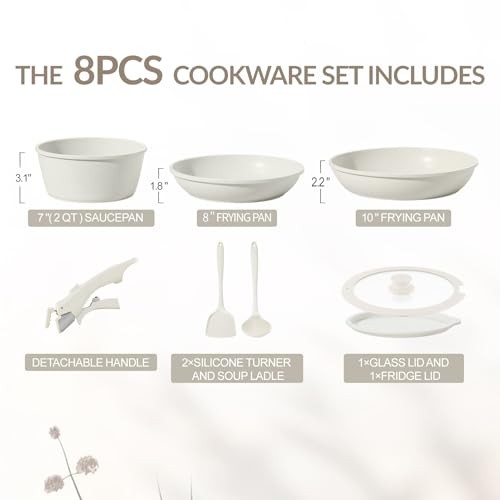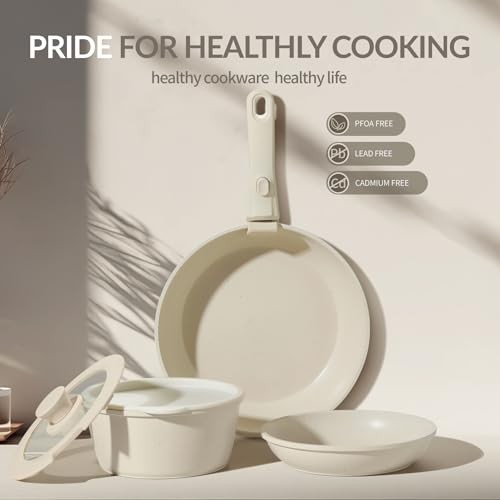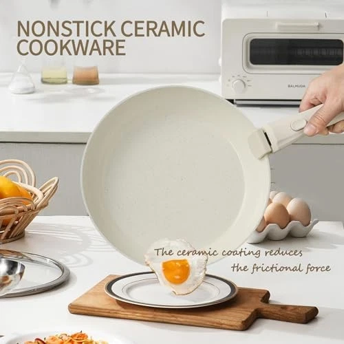 $ 46.7123PCS Ceramic Nonstick Cookware Set with Detachable Handles for Easy Storage