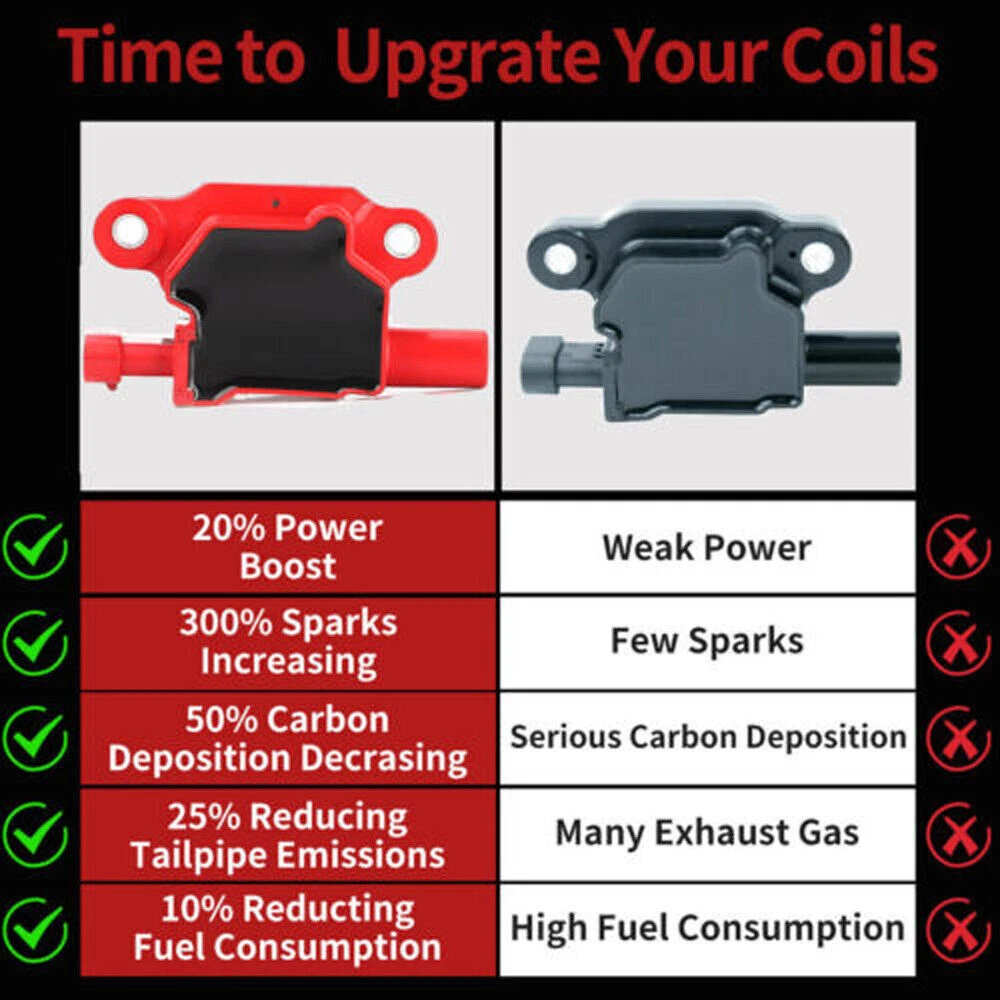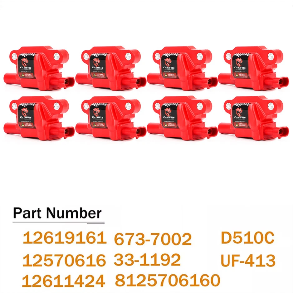 Description: Our ignition coils offer value without compromising quality. They can convert the power of your vehicle from 12 volts to more than 25,000 volts. Helps ensure proper engine performance, maximize fuel economy, minimize both tailpipe emissions and RFI electronic interference Helps avoid spark plug failure, drivability complaints, pre-ignition and detonation Automotiveparts_aa Best choice of motor parts 8PCS UF413 Ignition Coil Pack For Chevy Silverado 1500 GMC 5.3L 6.0L 6.2L C1511 Description : Our ignition coils offer value without compromising quality. They can convert the power of your vehicle from 12 volts to more than 25,000 volts. Helps ensure proper engine performance, maximize fuel economy, minimize both tailpipe emissions and RFI electronic interference Helps avoid spark plug failure, drivability complaints, pre-ignition and detonation Installation: 1. Open the ignition coil cover on the top of the engine; 2. Use the wrench to remove the ignition coil fixing screw; 3. Remove the ignition coil. 4. Use a screwdriver to gently tilt up and take out the ignition coil; 5. Put in a new ignition coil and fasten the screws; 6. After connecting the plug, see Cover the top cover. Details: 100% Brand New Items, Never Used Or Installed High quality Proper alignment, positioning and spacing for faster, easier installation Designed to meet or exceed specifications in form, fit and function High quality components and materials Superior performance and reliability Features: 1) All parts are hand inspected off the line before packaging and once again by our team before shipment. 2) According to the original factory specifications. Superior performance and reliability 3) Easy installation. 4) High quality components and materials. Stable characteristics, high reliability. 5)High quantity product for factory 6)Easy to install, direct fits 7)A perfect replacement for your original part 8)Condition: Brand New 9)Fitment Type:Direct Replacement Specifications: Color:Red Connector: 4 Pins Connector Gender: Female Terminal Gender: Male Terminal Type: Blade Voltage: 12V Part Numbers: 12570616, UF413, E893, D510C, UF-413, 12611424, 8125706160,12669351, , C1511, D513A, D510, C511 Package included: 8x Ignition coils Note: If you need Ignition Coil&Spark Plug Wire Set , please go to check: https://www.ebay.com/itm/154496447500 Vehicle Fitment: 2008-2008 Buick Allure 5.3L-V8 2008-2009 Buick LaCrosse 5.3L-V8 2006-2007 Buick Rainier 5.3L-V8 2006-2007 Cadillac CTS 6.0L-V8 2009-2015 Cadillac CTS 6.2L-V8 2007-2016 Cadillac Escalade 6.2L-V8 2009-2013 Cadillac Escalade 6.0L-V8 2007-2016 Cadillac Escalade ESV 6.2L-V8 2007-2013 Cadillac Escalade EXT 6.2L-V8 2010-2015 Chevrolet Camaro 6.2L-V8 2009-2012 Chevrolet Colorado 5.3L-V8 2005-2007 Chevrolet Corvette 6.0L-V8 2006-2013 Chevrolet Corvette 7.0L-V8 2008-2013 Chevrolet Corvette 6.2L-V8 2006-2009 Chevrolet Impala 5.3L-V8 2007-2007 Chevrolet Monte Carlo 5.3L-V8 2007-2013 Chevrolet Silverado 1500 5.3L-V8 2007-2013 Chevrolet Silverado 1500 4.8L-V8 2007-2013 Chevrolet Silverado 1500 6.0L-V8 2009-2013 Chevrolet Silverado 1500 6.2L-V8 2008-2016 Chevrolet Silverado 2500HD 6.0L-V8 2008-2016 Chevrolet Silverado 3500HD 6.0L-V8 2007-2014 Chevrolet Suburban 1500 5.3L-V8 2007-2009 Chevrolet Suburban 1500 6.0L-V8 2007-2013 Chevrolet Suburban 2500 6.0L-V8 2007-2015 Chevrolet Tahoe 5.3L-V8 2007-2009 Chevrolet Tahoe 4.8L-V8 2008-2009 Chevrolet Tahoe 6.2L-V8 2008-2013 Chevrolet Tahoe 6.0L-V8 2006-2008 Chevrolet Trailblazer 5.3L-V8 2006-2009 Chevrolet Trailblazer 6.0L-V8 2009-2012 GMC Canyon 5.3L-V8 2005-2009 GMC Envoy 5.3L-V8 2005-2006 GMC Envoy XL 5.3L-V8 2005-2005 GMC Envoy XUV 5.3L-V8 2007-2013 GMC Sierra 1500 5.3L-V8 2007-2013 GMC Sierra 1500 6.2L-V8 2007-2013 GMC Sierra 1500 4.8L-V8 2007-2013 GMC Sierra 1500 6.0L-V8 2008-2016 GMC Sierra 2500HD 6.0L-V8 2008-2015 GMC Sierra 3500HD 6.0L-V8 2007-2014 GMC Yukon 5.3L-V8 2007-2014 GMC Yukon 6.2L-V8 2007-2009 GMC Yukon 4.8L-V8 2008-2013 GMC Yukon 6.0L-V8 2007-2013 GMC Yukon XL 1500 5.3L-V8 2007-2013 GMC Yukon XL 1500 6.2L-V8 2007-2009 GMC Yukon XL 1500 6.0L-V8 2007-2013 GMC Yukon XL 2500 6.0L-V8 2008-2009 Hummer H2 6.2L-V8 2008-2010 Hummer H3 5.3L-V8 2009-2010 Hummer H3T 5.3L-V8 2008-2009 Pontiac G8 6.0L-V8 2009-2009 Pontiac G8 6.2L-V8 2005-2006 Pontiac GTO 6.0L-V8 2006-2008 Pontiac Grand Prix 5.3L-V8 2005-2009 Saab 9-7x 5.3L-V8 2008-2009 Saab 9-7x 6.0L-V8 Compatibility is just for reference. Please compare with your original one before purchasing Notes: (1)Please make sure the part numbers matches the part you are replacing. Please review the information above carefully to make sure this part fits your vehicle. (2)If you have questions on whether this part fits your vehicle, please feel free to contact us via eBay.Thank you! (3)We will process your order within 1 business day upon payment. (4)If you have any questions about quality, shipping or other problems, please contact me first via eBay message. (5)Please don't open cases or return requests without contacting me. I will give you a satisfy solution. Certificates of our product Our Factory Payment We accept Credit card, Debit card, Apple Pay, Google Pay and PayPal. Shipping We ship all items to United States only. International shipping is provided by Ebay global shipping program and is calculated once the items are placed in the shopping cart. Additional shipping fee may be charged for buyers from Puerto Rico, Hawaii, Alaska, Guam, and the U.S. military address of the United States or other remote area (zone 8-10). Returns If the item is broken or has any other problem when you receive it, please feel free to contact us. We will handle your problem as soon as possible. You can return the item for a replacement or refund. You have 30 days to return the item since the day that the item was delivered. Contact Us If you have any questions, please feel free to consult via eBay message. We will handle it for you as soon as possible. Feedback Please leave a positive feedback and 