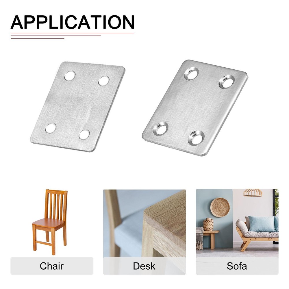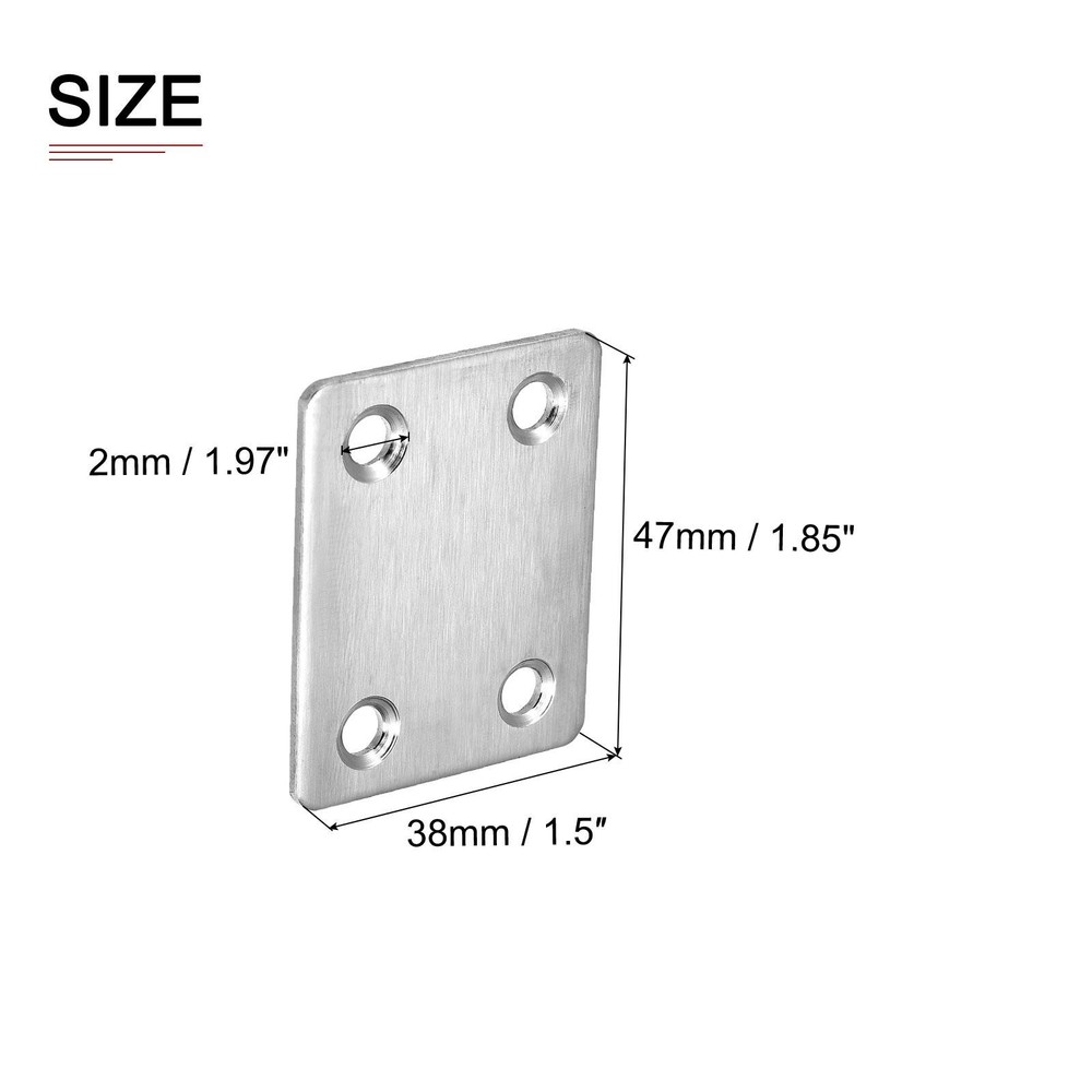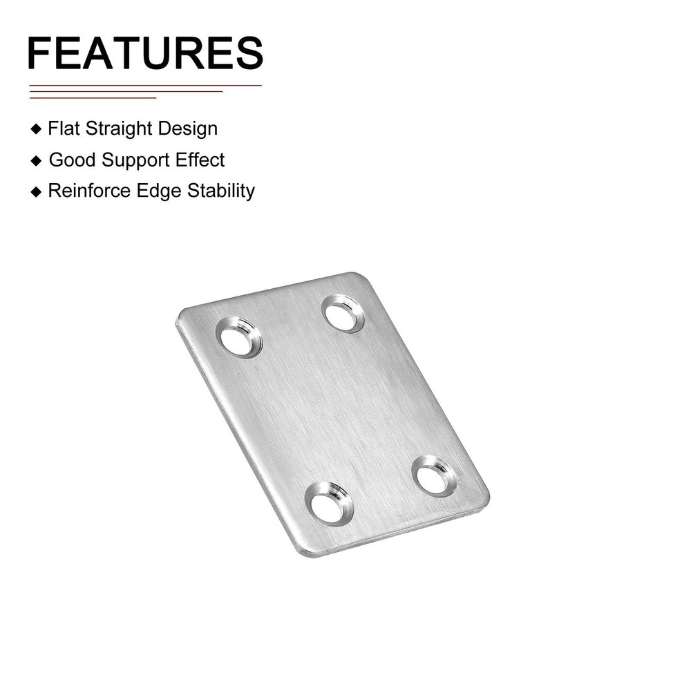 Document Product Details:Color: Silver ToneMaterial: Stainless SteelMounting Hole Dia.: 5mm/ 0.2"Hole Quantity: 4Plate Size: 47x38x2mm/ 1.85"x1.5"x0.08" (L*W*T)Package Content: 8pcs x Flat Mending PlatesMaterial - Made of stainless steel material with vibration finish, these flat mending brackets are of strong durability, not easy to deform or corrode, and have a long-lasting service.Feature - This repair plate is in integrated molding and has good firmness. With arc grinding, does not hurt your hands. Can be used both indoor or outdoor.Application - Good repairing and mending tools for use on various occasions and strengthen the right-angle joint. Can be used in most wooden furniture, like window, screens, chests, beds, chairs, desks, cabinets, drawers, shelves, and so on.Notice - They are easy to install with screws (Not Included.). Allowing ± 0.1-0.5mm differs due to manual measurement. Please check the sizes before buying. 8Pack 47x38x2mm Flat Straight Brace Plate Stainless Steel Brace Plate Silver Product Details: Color: Silver Tone Material: Stainless Steel Mounting Hole Dia.: 5mm/ 0.2" Hole Quantity: 4 Plate Size: 47x38x2mm/ 1.85"x1.5"x0.08" (L*W*T) Package Content: 8pcs x Flat Mending Plates Material - Made of stainless steel material with vibration finish, these flat mending brackets are of strong durability, not easy to deform or corrode, and have a long-lasting service. Feature - This repair plate is in integrated molding and has good firmness. With arc grinding, does not hurt your hands. Can be used both indoor or outdoor. Application - Good repairing and mending tools for use on various occasions and strengthen the right-angle joint. Can be used in most wooden furniture, like window, screens, chests, beds, chairs, desks, cabinets, drawers, shelves, and so on. Notice - They are easy to install with screws (Not Included.). Allowing ± 0.1-0.5mm differs due to manual measurement. Please check the sizes before buying. Hot Item Payment 1.We accept eBay payment . 2.Payment must be received within 7 business days of auction closing. Shipping 1.We ship to your eBay or Paypal address. Please make sure your eBay and Paypal address is correct before you pay. 2.Items will be shipped within 1-3 business day when we received payment. 3.Delivery time depends on destination and other factors. Description Policy 8Pack 47x38x2mm Flat Straight Brace Plate Stainless Steel Brace Plate Silver Product Details: Color: Silver Tone Material: Stainless Steel Mounting Hole Dia.: 5mm/ 0.2" Hole Quantity: 4 Plate Size: 47x38x2mm/ 1.85"x1.5"x0.08" (L*W*T) Package Content: 8pcs x Flat Mending Plates Material - Made of stainless steel material with vibration finish, these flat mending brackets are of strong durability, not easy to deform or corrode, and have a long-lasting service. Feature - This repair plate is in integrated molding and has good firmness. With arc grinding, does not hurt your hands. Can be used both indoor or outdoor. Application - Good repairing and mending tools for use on various occasions and strengthen the right-angle joint. Can be used in most wooden furniture, like window, screens, chests, beds, chairs, desks, cabinets, drawers, shelves, and so on. Notice - They are easy to install with screws (Not Included.). Allowing ± 0.1-0.5mm differs due to manual measurement. Please check the sizes before buying. Hot Item Payment 1.We accept eBay payment . 2.Payment must be received within 7 business days of auction closing. Shipping 1.We ship to your eBay or Paypal address. Please make sure your eBay and Paypal address is correct before you pay. 2.Items will be shipped within 1-3 business day when we received payment. 3.Delivery time depends on destination and other factors.