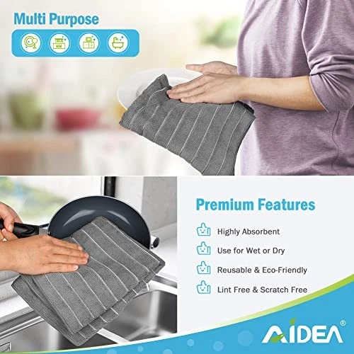 Return Policy Fast Delivery Trusted seller Microfiber Towels-8Pack, Soft Absorbent Dish Towels, Multi-Purpose Kitchen & Travel-Grey 15'x25' Product Description Super Absorbent: microfiber kitchen towels are designed to provide exceptional water absorption; highly absorbent and quick-drying; offer extreme absorbency and effectively wick away water to keep surfaces dry Long-Lasting, Soft & Lint-Free: kitchen towels are long-lasting and strong, perfect for all your household chores; measuring 15 x 25 inches each; provide a streak-free and lint-free experience on all surfaces; oversized and serve as great kitchen napkins Machine Washable: dish towels are quick-drying and easy to wash; save you time and energy; can be washed and reused hundreds of times without losing effectiveness; remain soft and super absorbent even after multiple washes Versatile: dish towels are perfect for a variety of cleaning tasks; perform effectively with just plain water; can be used in the kitchen, bathroom, for dusting, and more; make them an essential tool for any cleaning routine Better Lifestyle: The towels are free from harmful chemicals, ensuring safety for you and your family; using these reusable towels reduces the need for disposable paper towels, supporting a better lifestyle Shipping Returns Payment Shipping Shipping is FREE to all addresses other than APO/PO boxes in the lower 48 states. All our stock ships from US-based warehouses. Shipped via USPS or UPS (depending on location and package weight) Unless stated otherwise, all orders will ship within 24-72 hours of your payment being processed. Check our feedback to see the great reviews of FAST shipping we offer. Returns Seller does not accept returns Payment We currently accept payment via eBay managed payments only. Once payment is cleared, we will dispatch your shipment within 1-3 business days. Please refer to the "Shipping" tab for more information regarding shipping speed to your destination.