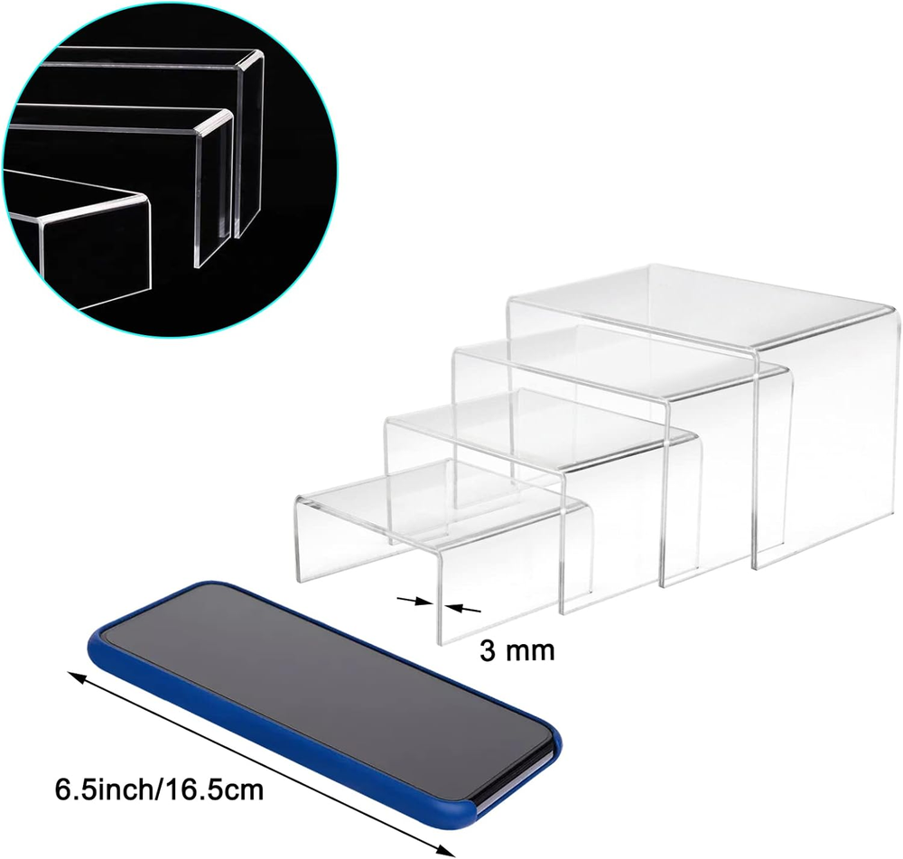 【Acrylic Display Risers 】It comes with 8 pieces of 2 Sets acrylic Display Risers , each Display Risers is made of acrylic, can be can display what you want.light passes through clearly, making it possible to see through it, much like glass. 【Highly Versatile】Our clear acrylic Display Risers can be used for product Stand,Cupcakes Holder Dessert Display Transparent Showcase Stands, Candy Bar Risers, and can display what you want. 【Multi-purpose Use 】They are made to provide long term use while being strong enough to support almost anything you can fit on them. This set of clear display stands blends in perfectly with the décor of any home, event, party or shop to let you display anything you want in style. 【Easy To Clean】- They are laser cut so finished with a shiny & smooth edge all round, Easy to clean, you don't have to buy more if it gets dirty. Will save you money down the road. 【SATISFACTION GUARANTEED】Any questions please feel free to contact with us, and we promise to response within 24 hours.100% customer satisfaction is what we strive for at Cerpourt! Product Description Display Risers Color: Clear Size: 3" :4" :5":6" Number of Item:8pcs Thickness: 3 mm Material: acrylic Acrylic Riser Acrylic Display Risers It comes with 2 Sets acrylic Display Risers , each Display Risers is made of acrylic, can be can display what you want.light passes through clearly, making it possible to see through it, much like glass. Highly Versatile Our clear acrylic Display Risers can be used for product Stand,Cupcakes Holder Dessert Display Transparent Showcase Stands,pop figures ,Candy Bar Risers, and can display what you want. They are made to provide long term use while being strong enough to support almost anything you can fit on them. This set of clear display stands blends in perfectly with the décor of any home, event, party or shop to let you display anything you want in style. Collections of pop figures, which become our close friends. Sometimes, too many "close friends" is also a kind of happiness trouble, we have to face a messy desktop or drawer, and also can't display the figures well.This 3-Tier Acrylic Riser is your good helper to keep your desktop neat and tidy.