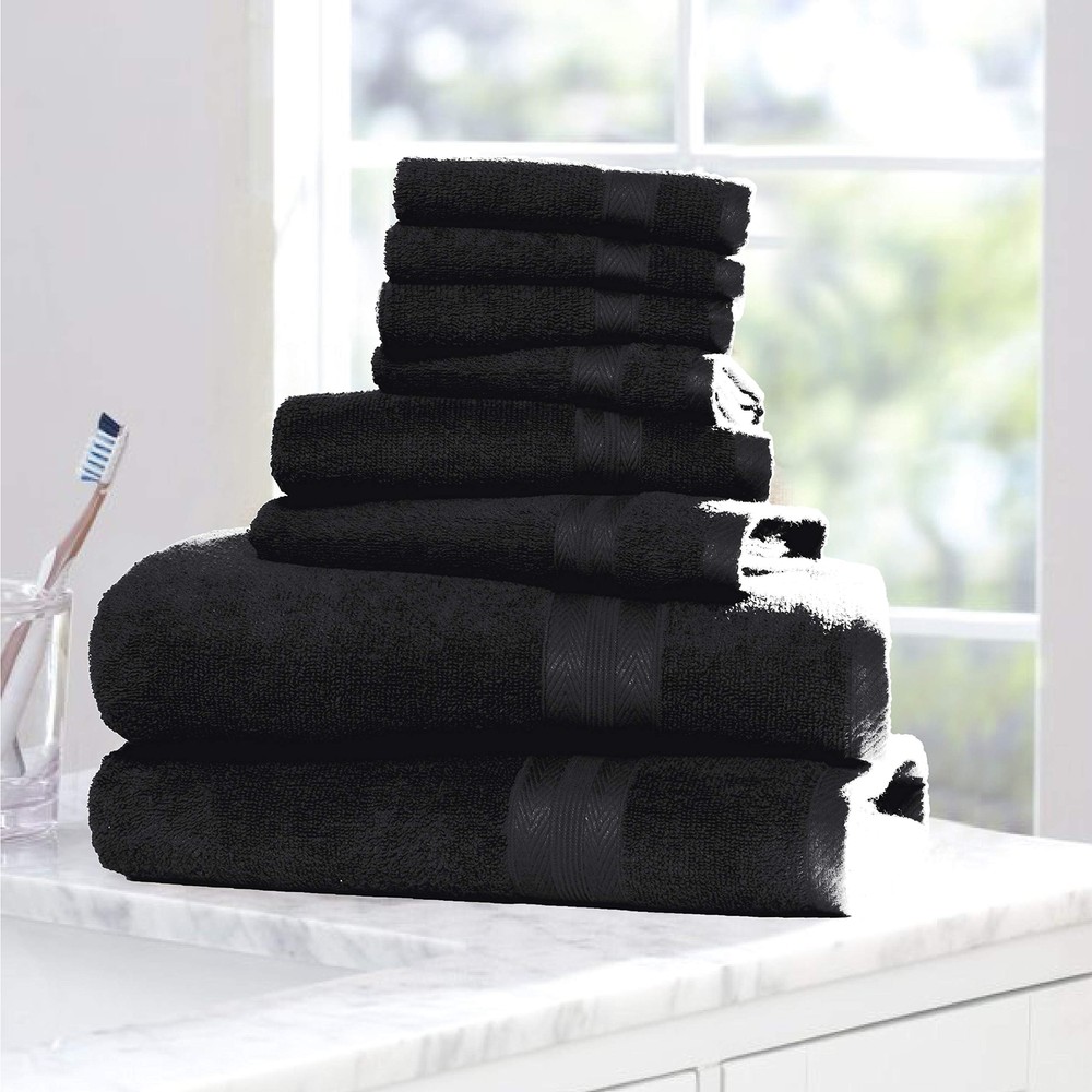 Black Towel Set - 8 Piece Bathroom Towel Set - 100% Ring Spun Cotton, 2 Bath Towel 27x54, 2 Hand Towel 16x28 and 4 Washcloth 13x13 - Ultra Soft Highly Absorbent Towel Set - Black Each set contains 2 oversized bath towels 27x54, 2 hand towels 16x28 & 4 washcloths 13x13 Ring Spun Cotton for softness, absorbency and durability - Luxurious hotel and spa quality towel set Complimented set for daily use, hotel & spa, quick drying & multipurpose usage Edges are reinforced with fine double-needle stitching so these towels won’t warp or fray Machine washable & dryable, wash in cold water, tumble dry low - wash separately before first use cotton towel is a beautiful and carefully crafted product with lot of attention to details. High quality living, luxurious, exceptionally smooth and soft to the touch. Sustainable product without compromising on the comfort and style. Made in a state of the art vertically integrated facility Shipping We offer FREE shipping on all orders! We ship within Three business days of payment, usually sooner. We use a selection of shipping services such as UPS, FedEx, USPS etc. We only ship to the lower 48 states, no APO/FPO addresses or PO Boxes allowed. Local pickups and combined shipping options are not provided at this time. Return You can return a product for up to 30 days from the date you purchased it. Any product you return must be in the same condition you received it and in the original packaging. Please keep the receipt. Payment We accept payment by any of the following methods: PayPal Please pay as soon as possible after winning an auction, as that will allow us to post your item to you sooner! Feedback Customer satisfaction is very important to us. If you have any problem with your order, please contact us and we will do our best to make you satisfied. Contact Us If you have any queries, please contact us via ebay. We usually respond within 24 hours on weekdays. Please visit our eBay store to check out other items for sale! Thank you for shopping at our store.