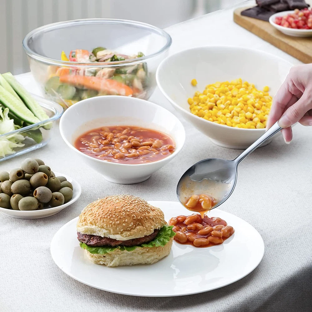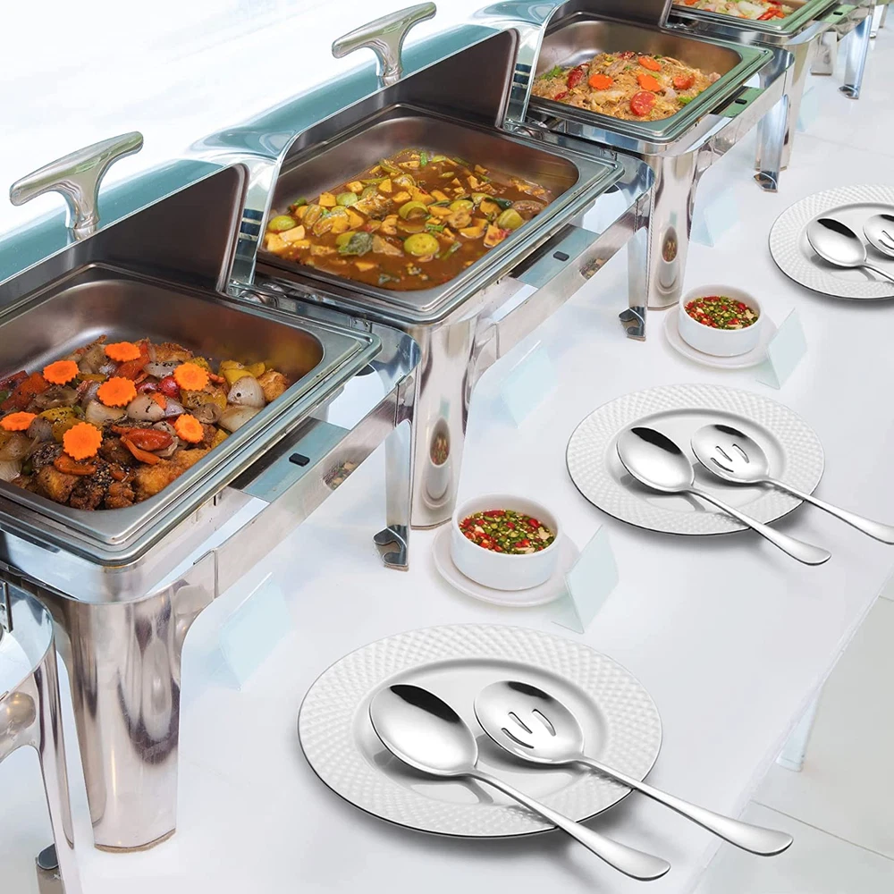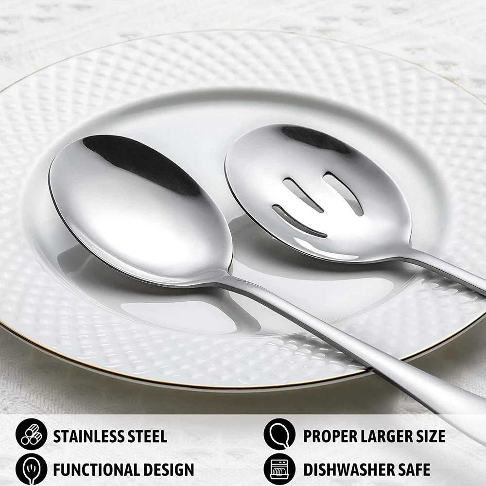 Serving Spoons Set: Includes 4 Serving Spoons and 4 Slotted Serving Spoons. Ideal for catering, food service, picnics, weddings, buffets, holiday dinners, party serving, family reunions and everyday use. High Quality: Made of 18/8 stainless steel ensure your health, rust resistant to avoid additional investments, solid and sturdy structure will not chip or bend after heavy use, durable set to serve you well for years. Proper Size: The length of the whole spoon is 8.6", the bowl of the spoon is 2.9"L and 2.1"W. Perfect for serving appetizer, soup, salad, mashed potatoes, scurries, party platters, rice, ice cream and more. Classic Design & Easy to Clean: Highly mirror polished, smooth edges and comfortable handle. These serving spoons are completely dishwasher safe, so they are easy to clean up. If you're not completely satisfied simply let us know and we will offer a prompt refund or replacement, no questions asked. Product Description Multi-functional Serving Spoons Set Ideal for catering, food service, picnics, weddings, buffets, holiday dinners, party serving, family reunions and everyday use. Ideal for catering, food service, picnics, weddings, buffets, holiday dinners, party serving, family reunions and everyday use. HIWARE is the definitive kitchenware brand with over 20 years of foodservice and hospitality industry experience. Reliable and trusted by professionals, our commercial lines of products, span from tabletops, restaurant kitchens supplies to utensils. We are now very proud to make our tools and gadgets available to any home cook and hope to give them the joy of using quality utensils loved by professionals. FEATURES: 18/8 Stainless Steel Serving Spoon x 4 Slotted Serving Spoon x 4 Length: 8.6 inch Width: 2.1 inch QUALITY MATERIAL The high-quality 18/8 stainless steel has the advantages of anti-corrosion and anti-rust, which can ensure long-term use without damage or breakage, and is very strong and durable. Compared with plastic or other materials such as wood, it will not collect residue and dirt, and it is dishwasher safe and easy to clean. PERFECT SIZE The length of these spoons and the length and width of the bowl are very suitable for severing food, it was a little bigger than the usual “big” spoon but smaller than a giant plastic spoon that can hold more food than a dinner spoon. Perfect for serving appetizer, soup, salad, mashed potatoes, scurries, party platters, rice, ice cream and more. SLOT DESIGN The slot design allows the soup to flow down from the slots and leave the food you want when holding food with a lot of water or soup. Different spoon designs can be used on different foods making your use more convenient and selective. MULTI-USE: