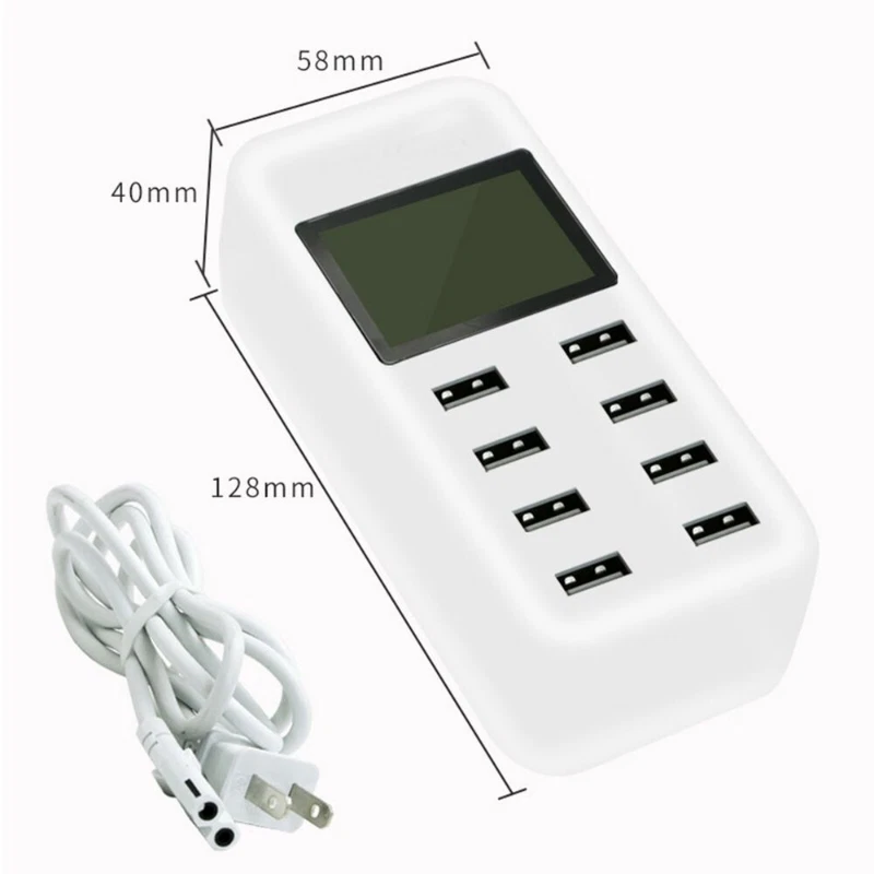 Description: Product Features: Multi ports: 8 USB ports, can charge up to 8 devices at the same time Smart charge: Ea ch USB charging port intelligently identifies your device to deliver the optimal current(Max.3.5A per port or 8A overall) Safety Charger: Built-in overheat, overcharge, overcurrent, short circuit protection,protects your devices automatically and extending the battery life of your devices LCD Display: Show each port charging status simultaneously Super Smart: Auto detects the performance for your device battery and charging cable through the displayed current Product Specification: Type: 8 Port Smart USB Charger with LCD display Dimension: 2.28*5.03*1.57in (58*128*40mm) Cable length: 48.4in (1230mm) Input: 100-240V~50-60Hz 0.8A USB output: 5V~3.5A Total output: 5V~8A(max) Package includes: 1 x Wall Charging Station Note: Please allow minor errors due to manual measurement. Item color displayed in photos may be showing slightly different since monitors are not calibrated same. Payment: We only accept PayPal . PayPal is the only online payment method we accept. Please make sure you have a valid/confirmed PayPal account prior bidding. And please make sure that your Payoneer registed address is the same with your eBay registed address. Shipping: It usually takes about 10-30 working days to arrive for economy shipping which not including tracking number; 7-15 working days for standard shipping which including tracking number. Transit time may be a little delayed because of the bad weather and customs inspection. If you do not receive your item within 30 working days since payment finished, please contact us immediately for further assistance. Note: It may takes more than 30 working days to other countries such as Mexico,Brazil,Chile,Peru, because they is far away from China. PS: We also offer faster shipping service (3-5 days to deliver), such as DHL,EMS, but buyers need to pay for the extra shipping cost. Please contact us if you need it. Customs Declaration: Import duties, taxes and charges are not included in the item price or shipping charges. These charges are the buyer's responsibility. Please check with your country's customs office to determine what these additional costs will be prior to bidding. Return Policy: If you are dissatisfied with our item or service, then please follow the good eBay practice to contact us by eBay message before leaving any feedback. We are committed to resolve all issues in a friendly and satisfactory manner. We always reply to eBay messages within 1-2 business days. If you do not get a response from us, then please check your eBay message. Only unused, undamaged and original condition item can be qualified for a return. Feedback: We strive for 100% customer satisfaction! Positive Feedback is very important to us. If you have any questions, please feel free to contact us instead of leaving negative feedback. We will reply your email within 24 working hours.