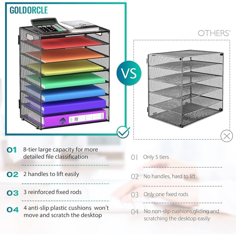 You may also like Ceramic Soup Bowls Set of 6 Colorful Porcelain Dinnerware Dishwasher Safe Gift 46.36 USD 48.8 USD Free shipping 5% off Wheat Straw Bowls Set of 2 Unbreakable Kitchen Bowls Microwave Dishwasher Safe 20.01 USD 21.06 USD Free shipping 5% off Non-Stick Cooking Pot W/ Lid Induction Compatible Durable Easy Clean 2.1qt New 38.68 USD 40.72 USD Free shipping 5% off 2 Pack Glass Mixing Bowls Nesting Set W/ BPA Free Lids Food Storage Baking New 36.81 USD 38.75 USD Free shipping 5% off Stoneware Cereal Soup Bowls Set of 4 Dishwasher Microwave Safe Unique Wavy Rim 47.04 USD 49.52 USD Free shipping 5% off Cast Iron Skillet Pre-Seasoned Oven Safe Heavy Duty Kitchen Cookware Camping New 28.92 USD 30.44 USD Free shipping 5% off Ceramic Serving Bowls Set 50oz 2 Pack Durable Dishwasher Safe Kitchen Essentials 36.79 USD 38.73 USD Free shipping 5% off Stainless Steel Mixing Bowl Set 10 Pieces Food Prep Storage Dishwasher Safe New 44.16 USD 46.48 USD Free shipping 5% off Large Porcelain Serving Bowls Set of 2 Salad Soup Pasta Ideal Entertaining New 51.2 USD 53.89 USD Free shipping 5% off Unbreakable Wheat Straw Bowls Set 6PCS Microwave Dishwasher Safe Eco-Friendly US 25.01 USD 26.33 USD Free shipping 5% off Ceramic Scalloped Decorative Tabletop Bowl Perfect Home Accent Indoor Display US 10.27 USD 10.81 USD Free shipping 5% off Ceramic Cereal Bowls Set of 4 Embossed Kitchen Soup Microwave Safe Gift New 29.37 USD 30.92 USD Free shipping 5% off About this item 【8-Tier Large Capicity】Measures 12. 6 L x 9. 06 W x 16. 5 H in total, 2. 2 inches for each tray. The desktop paper tray organizer is big enough to hold more files and classify your paper more detailed 【Handle Design】With 2 portable handles, you can move the desk file tray organizer as you want. Just need 6 screws and several steps, you can easily put the paper organizer together within a few minutes(installation tools included) 【Not easy to be bent】Made of sturdy metal steel,the mesh desk file organizer is sturdy and well-constructed by 3 reinforced fixed rods 【Sturdy Mesh Shelves】We advise to tighten the 6 screws when all installations are done if you don't want the shelves to come out while getting the paper out. The removable shelves can be also pulled out to accommodate higher file boxes 【Desktop Paper Organizer】Ideal for mails, forms, catalogs, invoices and any letter size literature, magazines, etc. Brand: Color: Black Material: Metal Product Dimensions: 12. 6"L x 9. 06"W x 16. 5"H Shape: Rectangular You may also like Wood Desk Organizer 2-Tier Monitor Stand Drawer Pen Holder Phone Tablet Holder 33.85 USD Free shipping Desk Organizer 2-Tier Letter Tray Drawer Pen Holder Mesh Home Office Storage New 29.89 USD Free shipping 5 Tier Mesh Desk Organizer Portable File Holder Office Supplies Storage Solution 30.98 USD Free shipping Desk Dumpster Pencil Holder W/ Flame Notecards Fun Office Organizer Gift Green 20.81 USD Free shipping Mesh Desk Organizer W/ 3 Compartments Pencil Holder Office Storage Accessories 17.03 USD Free shipping 360° Rotating Leather Art Supply Organizer Multi-Functional Desk Storage Holder 30.98 USD Free shipping 4 Tier Stackable Paper Tray Organizer Desk File Holder Home Office Accessories 38.73 USD Free shipping Desk Organizer File Rack Vertical File Holder 5-Section Office Storage White New 38.73 USD Free shipping 5-Tier Desk Organizer Letter Tray File Holder W/ Handle Office Classroom Black 26.19 USD Free shipping 4-Tier Desk Organizer W/ Drawer & Pen Holders Efficient Office Storage Solution 40.28 USD Free shipping Mesh Letter Tray Organizer W/ 3 Horizontal Trays & 2 Vertical File Holders New 32.53 USD Free shipping Purple Desk Organizer Set Office Supplies Scissors Stapler Ruler Tape Clips New 43.38 USD Free shipping