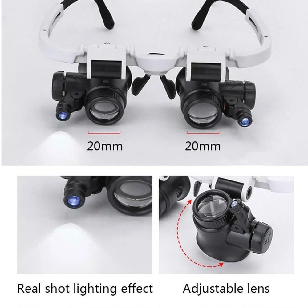 This headband magnifier is a game-changer! The crystal-clear lenses provide distortion-free magnification, and the adjustable LED lights make detailed work a breeze. Perfect for hobbies, repairs, or reading small print—super comfortable and easy to use. A must-have for anyone needing precision vision!