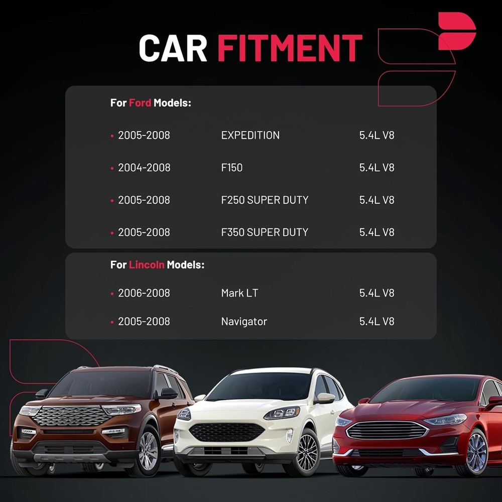 【Basic Info:】Ignition Coil DG511 & Spark Plug SP546 fit for Expedition F150 F250 Super Duty F350 Super duty LincoIn Mark LT navigator. Please check detail fitting info from pics or detail page. OE checking is necessary before buying. 【Features of ignition coil:】High quality ignition coils are made of silicon steel material, Japan-imported rubber, and Germany-imported varnished wire, which makes our products have a long using life and better quality. ‼Please check OE:DG511 GD511 FD508 SP546 PZH14F SP515 ‎3L3U12A366BB 3L3Z12029BA HT15 SP507 SP515; 【Features of spark plug:】Professional spark plus is made of high-tech materials. We choose iridium electrode and special ceramic to make sure your car can have a new life after being installed. The car will start quickly and speed up in a short tim Specification: Voltage: 12V Connector Gender:Female Terminal Gender:Male Connection: 2 pins Terminal Type: Blade Description: Each coil is design to eliminate misfires and provide maximum voltage. Part Numbers: 5C1584 E508 3L3E-12A366-CA 3L3Z-12029-BA C1659 5C1584 3L3Z12029BA 3L3U12A366BB 3L3E12A366CA 50082 601000 11054 DG-511 DG511 3L3Z 12029 BA 3L3U 12A366 BB 3L3E 12A366 CA Reduces common ignition coil issues such as; no/hard start, long crank time, misfires, lack of power, inconsistent transmission shifts, spark plug fouling, premature catalytic converter failure, poor fuel economy, check engine light illumination Performance ignition coils with plugs sp546 ,made of high quality. Please check if your boots are curved or straight. The months are important along with year of manufacture. DQ50101 is for Curved Boots and DQ50101D is for Straight Boots.If your coils are brown boots, you will need DG521. Fitment: 2005-2008 Ford Expedition 5.4L V8 2006-2008 Ford Explorer 4.6L V8 2007-2008 Ford Explorer Sport Trac 4.6L V8 2004-2008 Ford F-150 5.4L V8 2005-2008 Ford F-250 Super Duty 5.4L V8 2005-2008 Ford F-250 Super Duty 6.8L V10 2005-2008 Ford F-350 Super Duty 5.4L V8 2005-2008 Ford F-350 Super Duty 6.8L V10 2005-2007 Ford F-450 Super Duty 6.8L V10 1999-2007 Ford F-550 Super Duty 6.8L V10 2005-2008 Ford Mustang 4.6L V8 2006-2008 Lincoln Mark LT 5.4L V8 2005-2008 Lincoln Navigator 5.4L V8 2006-2008 Mercury Mountaineer 4.6L V8 Package Included: 8x Ignition Coil + Spark Plugs