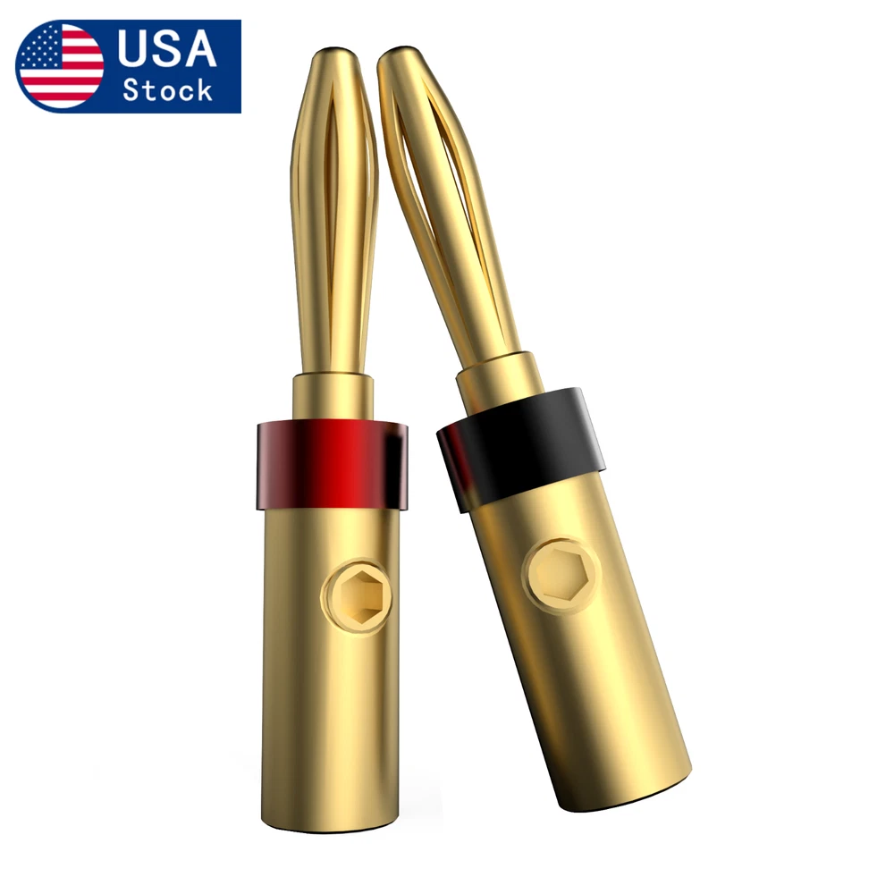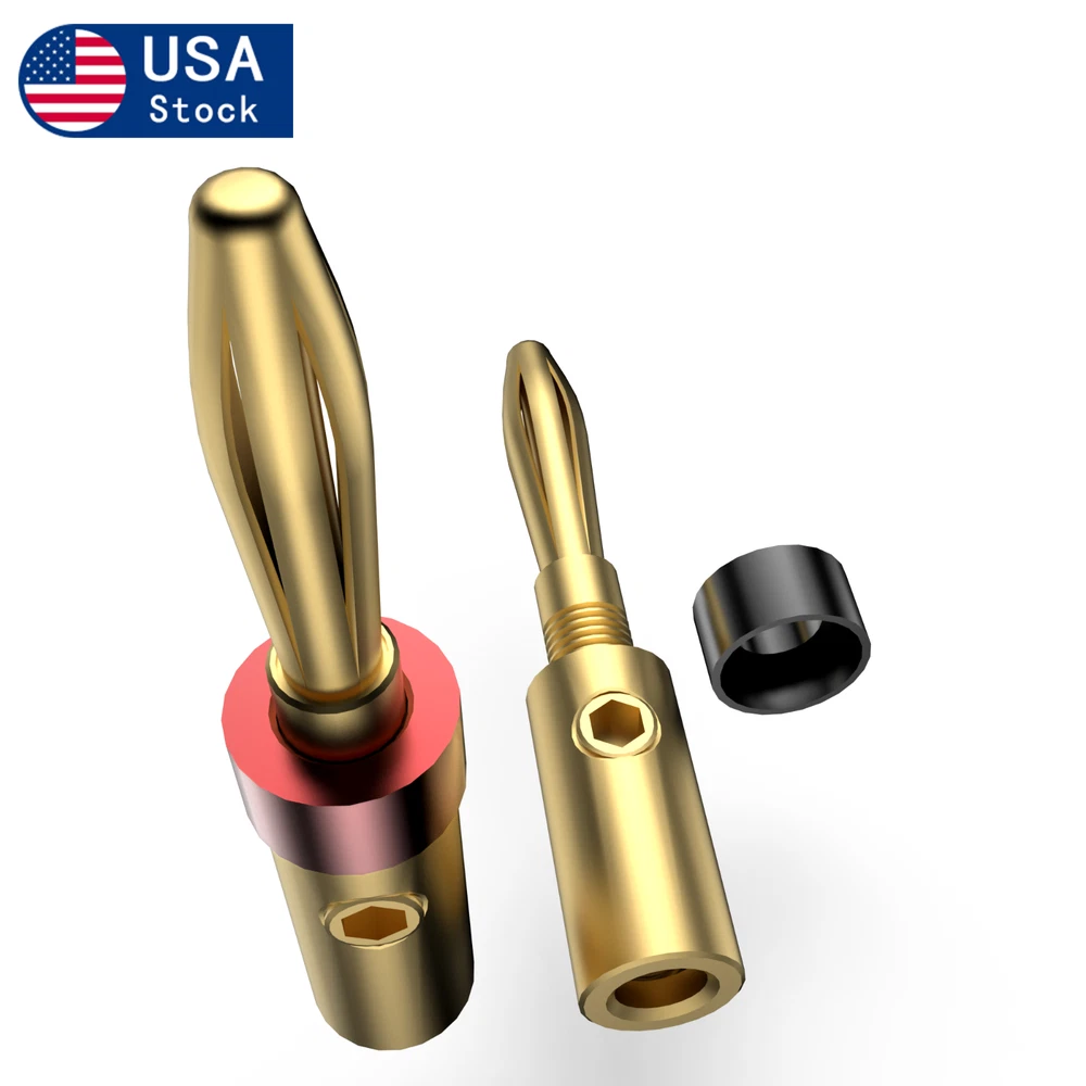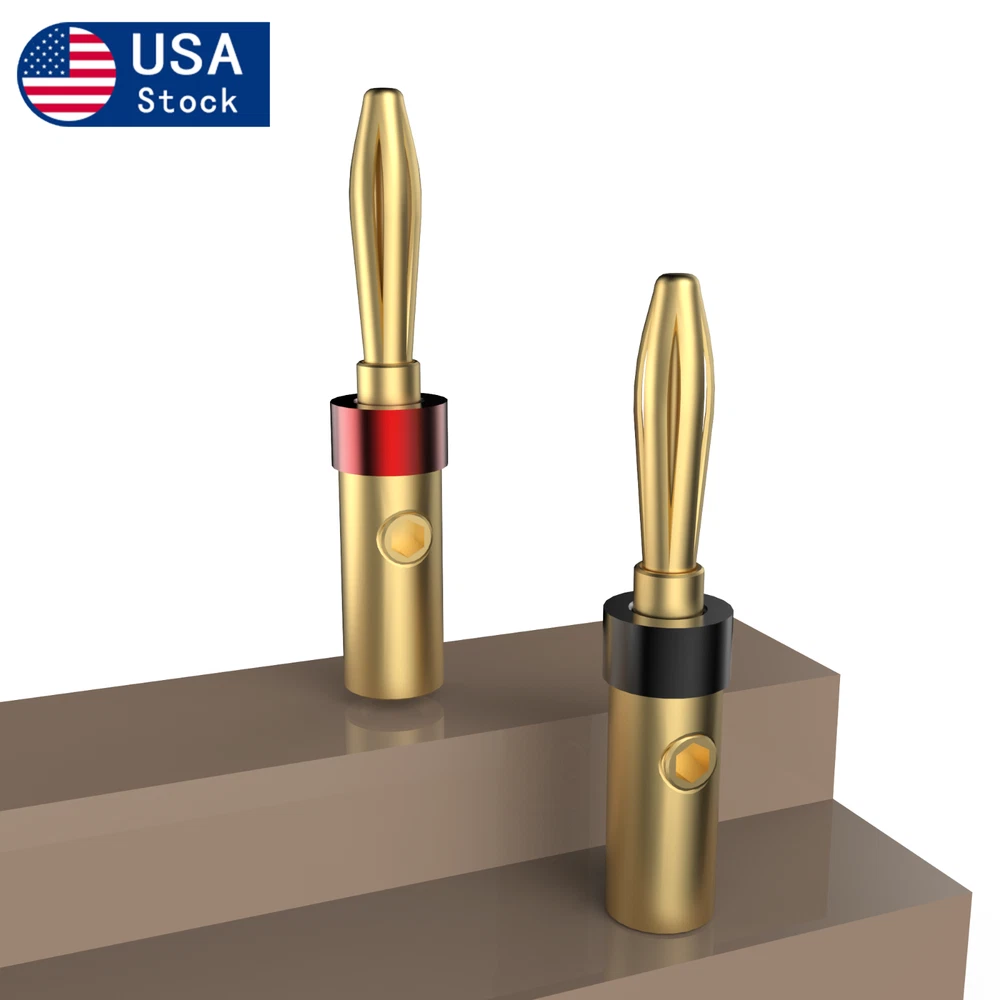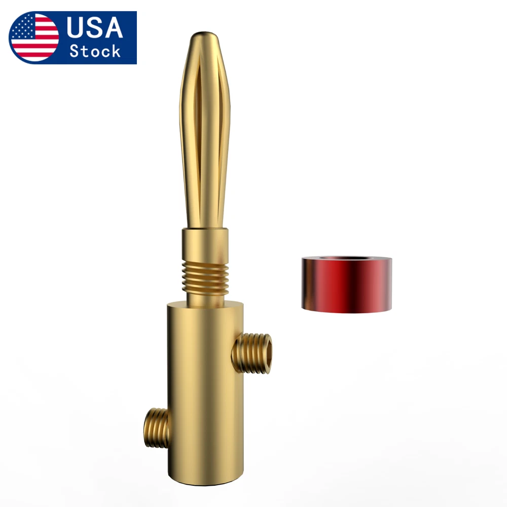 Description: Conductor:Brass Spring Part: Brozne Ring:Aluminium Plating:Gold plated Connect: Screw locking Max Wire: 5MM Total Length: 43mm Color:Picture show Package: 8pieces /set Original Made:China