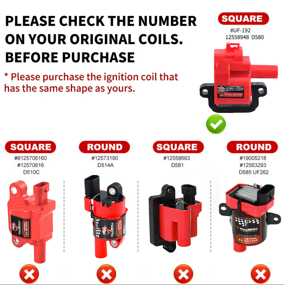 Details: 100% Brand New Items, Never Used Or Installed High quality Proper alignment, positioning and spacing for faster, easier installation Designed to meet or exceed specifications in form, fit and function High quality components and materials Superior performance and reliability Feature: Terminal Connection: 4 Pins Better than OEM QUALITY replacement Our parts are bought from the same factories as major auto parts dealers! Part Number: 12556450, 12558948, E247, 5C1078, C1144, UF192, D580, 52-1573, IC334, 3861267 Automotiveparts_aa Best choice of motor parts Item Specifics Interchange Part Number 12556450 12558948 E247 5C1078 Type Ignition Coil Other Part Number 52-1573, IC334, 12558948 / 3861267 / 5C1078 Interchange Part Number 1 C1144, UF192, D580 Manufacturer Part Number UF192 C1144 Brand Carbole Fitment 1 2004-2005 Cadillac CTS V8 5.7L Fitment 2 2002 Chevrolet Avalanche 2500 V8 8.1L Fitment 3 1999-2000 Chevrolet B7 V8 7.4L Fitment 4 2001-2002 Chevrolet B7 V8 8.1L Fitment 5 2001-2002 Chevrolet C3500HD V8 8.1L Fitment 6 1999-2000 C6500 Kodiak V8 7.4L Fitment 7 1999-2000 V7500 Kodiak V8 7.4L Fitment 8 1998-2002 Chevrolt Camaro V8 5.7L Fitment 9 1998-1999 Chevrolet Corvette V8 5.7L Fitment 10 1998-1999 Chevrolet P30 V8 7.4L Fitment 11 2001-2002 Chevrolet Silverado 2500HD V8 8.1L Fitment 12 2001-2002 Chevrolet Silverado 3500 V8 8.1L Fitment 13 2001-2002 GMC C3500HD V8 8.1L Fitment 14 2003-2004 GMC C4500 Topkick V8 8.1L Fitment 15 1999-2000 GMC C6500 Topkick V8 7.4L Fitment 16 2001-2002 GMC C6500 Topkick V8 8.1L Fitment 17 1999-2000 GMC C7500 Topkick V8 7.4L Fitment 18 1998 GMC P3500 V8 7.4L Fitment 19 2001-2002 GMC Sierra 2500 HD V8 8.1L Fitment 20 2001-2002 GMC Sierra 3500 V8 8.1L Fitment 21 2001-2002 GMC Yukon XL 2500 V8 8.1L Fitment 22 1998-2002 Pontiac Firebird V8 5.7L Part Number 1 12556450, 12558948, E247, 5C1078, C1144 Part Number 2 UF192, D580, 52-1573, IC334, 3861267 Manufacturer Warranty Lifetime Terminal Connection 4 Pins 8XHigh Performance Ignition Coil Pack For Chevrolet GMC LS1 LS6 D580 C1144 UF192 Details: 100% Brand New Items, Never Used Or Installed High quality Proper alignment, positioning and spacing for faster, easier installation Designed to meet or exceed specifications in form, fit and function High quality components and materials Superior performance and reliability Feature: Terminal Connection: 4 Pins Better than OEM QUALITY replacement Our parts are bought from the same factories as major auto parts dealers! Part Number: 12556450, 12558948, E247, 5C1078, C1144, UF192, D580, 52-1573, IC334, 3861267 *Important* Please use the below information to determine if the part(s) in this listing fit your vehicle. Do not rely on the eBay 'compatibility' feature. CHECK OUR FITMENTS LIST: ➙ 2004-2005 Cadillac CTS V8 5.7L ➙ 2002 Chevrolet Avalanche 2500 V8 8.1L ➙ 1999-200 Chevrolet B7 V8 7.4L ➙ 2001-2002 Chevrolet B7 V8 8.1L ➙ 2001-2002 Chevrolet C3500HD V8 8.1L ➙ 1999-2000 C6500 Kodiak V8 7.4L ➙ 1999-2000 V7500 Kodiak V8 7.4L ➙ 1998-2002 Chevrolt Camaro V8 5.7L ➙ 1998-1999 Chevrolet Corvette V8 5.7L ➙ 1998-1999 Chevrolet P30 V8 7.4L ➙ 2001-2002 Chevrolet Silverado 2500HD V8 8.1L ➙ 2001-2002 Chevrolet Silverado 3500 V8 8.1L ➙ 2001-2002 GMC C3500HD V8 8.1L ➙ 2003-2004 GMC C4500 Topkick V8 8.1L ➙ 1999-2000 GMC C6500 Topkick V8 7.4L ➙ 2001-2002 GMC C6500 Topkick V8 8.1L ➙ 1999-2000 GMC C7500 Topkick V8 7.4L ➙ 1998 GMC P3500 V8 7.4L ➙ 2001-2002 GMC Sierra 2500 HD V8 8.1L ➙ 2001-2002 GMC Sierra 3500 V8 8.1L ➙ 2001-2002 GMC Yukon XL 2500 V8 8.1L ➙ 1998-2002 Pontiac Firebird V8 5.7L Compatibility is just for reference. Please compare with your original one before purchasing Installation: 1. Open the ignition coil cover on the top of the engine; 2. Use the wrench to remove the ignition coil fixing screw; 3. Remove the ignition coil. 4. Use a screwdriver to gently tilt up and take out the ignition coil; 5. Put in a new ignition coil and fasten the screws; 6. After connecting the plug, see Cover the top cover. Notes: (1)Please make sure the part numbers matches the part you are replacing. Please review the information above carefully to make sure this part fits your vehicle. (2)If you have questions on whether this part fits your vehicle, please feel free to contact us via eBay.Thank you! (3)We will process your order within 1 business day upon payment. (4)If you have any questions about quality, shipping or other problems, please contact me first via eBay message. (5)Please don't open cases or return requests without contacting me. I will give you a satisfy solution. Certificates of our product: Our Factory: Payment PayPal: We accept Credit card, Debit card, Apple Pay, Google Pay and PayPal. Shipping We ship all items to United States only. International shipping is provided by Ebay global shipping program and is calculated once the items are placed in the shopping cart. Additional shipping fee may be charged for buyers from Puerto Rico, Hawaii, Alaska, Guam, and the U.S. military address of the United States or other remote area (zone 8-10). Returns It is the customers responsibility to get the item postmarked to us within the 60 day return period in NEW, UNUSED condition. If you decide to return your item for any reason please send the items back to the below address along with your receipt or packing slip. Package all items carefully so that they are not damaged during shipping. Items returned past 60 days or damaged will not be refunded. These items will be returned at the buyers expense. Refunds will be processed quickly when package arrival. Contact us immediately! Take photos and note damages. The more details you can provide, the quicker we can assist you. Contact Us If you have any questions, please feel free to consult via eBay message. We will handle it for you as soon as possible. Feedback We maintain high standards of excellence (five stars review)and strive for 100% customer satisfaction! FEEDBACK IS VERY IMPORTANT TO US. W