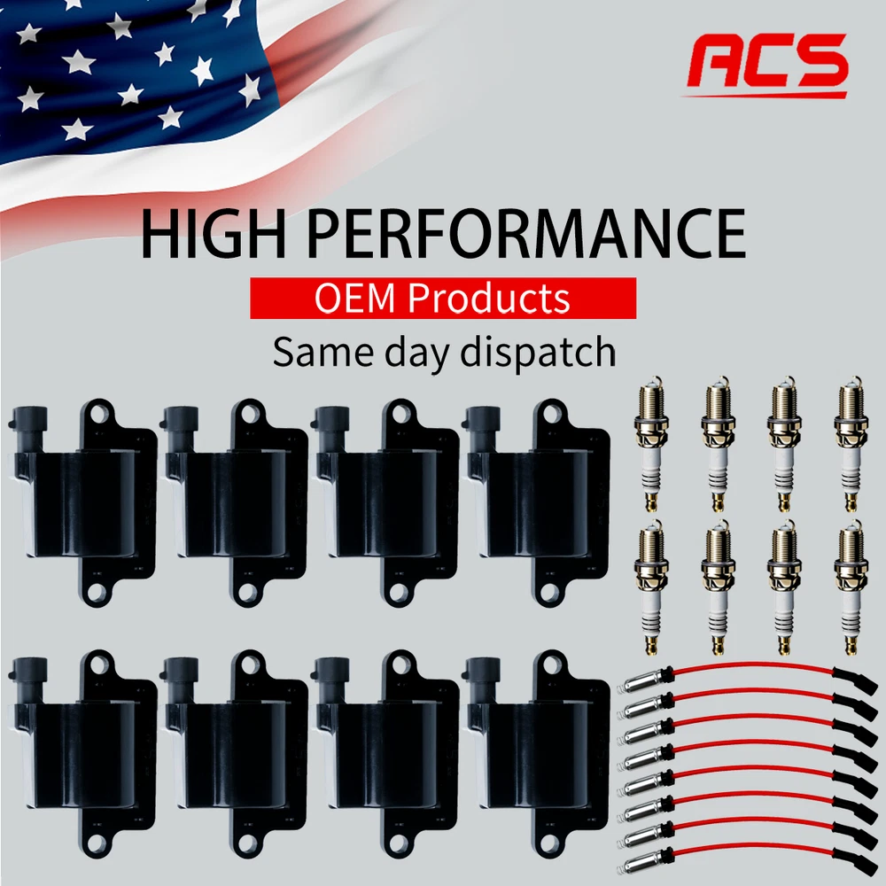 8X OEM Ignition Coil & 8X Iridium Spark Plug & 8X Wire For Chevy GMC Yukon UF271 Items Description Have any questions, please contact us first and we will do our best to solve it for you. Lifetime Warranty,feel free to buy without worries. Original standard, direct replacement for the old or broken one. Made with high quality material for maximum durability... Package included 8X Ignition Coils + 8X Iridium Spark Plugs + 8X Wires(15% increase in performance and energy) Feature High Performance Brand new ignition coil set, never used or installed Ready to use, Direct Replacement Built to strict quality control standards 100% Factory tested Superior quality part with durable copper wire inside. OE+ durability Better than OEM QUALITY replacement Part Number/OEM Number UF271, UF-271, D581, C1208, D581, E226, 52-1618, 5C1083, 12558693 12570553, 23218007, 3859078, 38590782, 392889925, 12556893, 12192133 Compatible Vehicle(for reference only) Cadillac Escalade (2002 - 2006) Chevrolet Avalanche 1500 (2002 - 2006) Chevrolet Avalanche 2500 (2003 - 2006) Chevrolet Express 1500 (2003 - 2006) Chevrolet Express 2500 (2003 - 2005) Chevrolet Express 3500 (2003 - 2004) Chevrolet Monte Carlo 2006 Chevrolet Silverado 1500 (1999 - 2006) Chevrolet Silverado 2500 (1999 - 2007) Chevrolet Silverado 3500 (2001 - 2007) Chevrolet Sonora (2003 - 2004) Chevrolet Ssr (2003 - 2004) Chevrolet Suburban 1500 (2000 - 2006) Chevrolet Suburban 2500 (2000 - 2006) Chevrolet Tahoe (2000 - 2006) Chevrolet Trailblazer (2003 - 2004) GMC Envoy (2003 - 2004) GMC Savana 1500 (2003 - 2005) GMC Savana 2500 (2003 - 2005) GMC Savana 3500 (2003 - 2005) GMC Sierra 1500 (1999 - 2007) GMC Sierra 2500 (1999 - 2007) GMC Sierra 3500 (2001 - 2007) GMC Yukon (2000 - 2006) GMC Yukon Xl 1500 (2000 - 2006) GMC Yukon Xl 2500 (2000 - 2006) Hummer H2 (2003 - 2007) Mercruiser All Models (2001 - 2007) Workhorse Fastrack Ft1061 (2004 - 2005) Workhorse Fastrack Ft1261 2005 Workhorse Fastrack Ft1461 (2004 - 2005) Workhorse Fastrack Ft1601 (2004 - 2005) Workhorse Fastrack Ft1801 (2004 - 2005) About Us We are a professional auto parts manufacturer We offer 100% customer satisfaction. Please check our store for other car and truck parts. Please leave us positive feedback if you are satisfied with the item. But in case you aren't satisfied the item, please kindly let us know, we will try our best to solve it. Thank you for reading. Highly appreciated your order and hope you have good buying experience in our store. NOTE: Please make sure the part numbers match the part you are replacing. Please check our photos and make sure the part shown looks identical to your stock one. . Shipping Payment Return Policy About Us Contact us: Shipping The item will be shipped out within SAME business day upon the payment is completed. Our regular carrier is FedEx, USPS, and UPS. Please feel free to message us through eBay if you have not received tracking info after two business days, we will be happy to provide it to you. We have two warehouses, located in California and Kentucky. The goods are dispatched from which warehouse is closest to the address. Sometimes due to inventory reasons, it will be sent from a far away warehouse. Hope you can understand. Payment We accept PayPal , your order will be shipped out when your transaction status is clear. Please do make sure your address is correct. We only ship to confirmed address. Note: If you are failed to pay in 5 business days, an Unpaid payment will be filled. Return Policy We can only issue an exchange if the item is received defective or incorrect item shipped. All exchange items MUST be in brand new condition which means the item is never installed and kept in the original packaging, otherwise a 15% restocking fees will be charged. Professional installation is highly recommended. Buyer assumes all risk on shipment and usage. We will not resend product before we get the returned item from customers. If your item is defective or damaged, let us know within 30 days of your purchase and you can return it for a new one or a full refund with no questions asked. About Us We are a professional auto parts manufacturer We offer 100% customer satisfaction. Please check our store for other car and truck parts. Please leave us positive feedback if you are satisfied with the item. But in case you aren't satisfied the item, please kindly let us know, we will try our best to solve it. Thank you for reading. Highly appreciated your order and hope you have good buying experience in our store. NOTE: Please make sure the part numbers match the part you are replacing. Please check our photos and make sure the part shown looks identical to your stock one. . Contact us: 1. Negative feedback will not help resolve any problems you have, please contact us via eBay messages before leaving negative feedback, our customer service will make best effort to help you with the issues. 2. We maintain high standards of excellenceand strive for 100% customer satisfaction! Feedback is very important to us. We request that you contact us immediately Before you give us neutral or negative feedback, so that we can satisfactorily address your concerns. Brand ACS Type Ignition Coil & Spark Plug & Wire Placement on Vehicle Front Manufacturer Warranty Lifetime Manufacturer Part Number 12558693, 12570553, 12556893, UF271, D581, 12192133, T4RAI-15 Interchange Part Number 12558693, 12570553, 12556893, 23218007, 392889925, 38590782, 3859078, UF271, UF-271, D581, 521618, 5C1083, C561, IC328, 52-1618, 12192133, T4RAI-15, T4RAI15, ITR4A15 OE/OEM Part Number UF271, UF-271, D581 Package contents: 8X Ignition Coils + 8X Iridium Spark Plugs + 8X Wires Product description: 15% increase in performance and energy Fitment Type: Direct Replacement Product Performance: High Performance Product