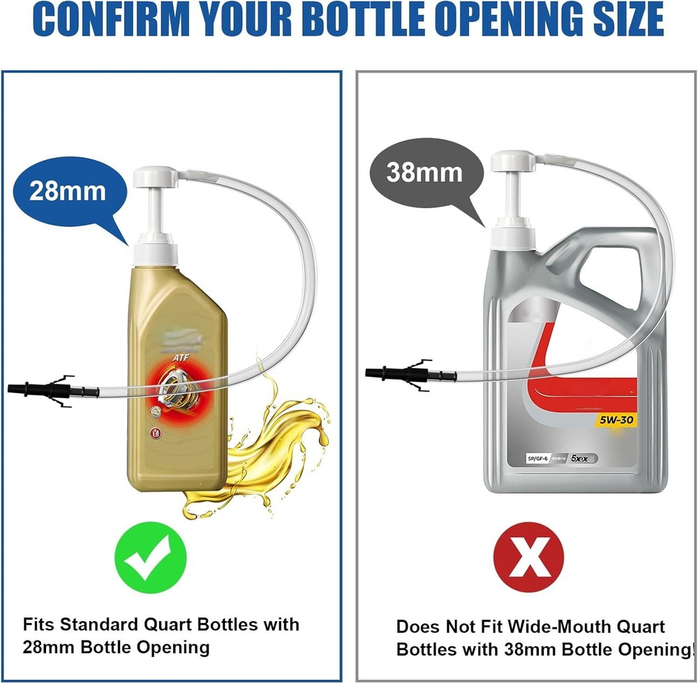 Free eBay listing template designed by dewiso.com Fluid Pump for Standard Quart Bottles, 8cc Per Pump Stroke, Transmission Fluid Pump with 3rd Hand Adapter, Differential & Transmission Fluid,Transfer Gear Oil Transmission and Differential Fluid Pump FREE AND FAST SHIPPING! 【Multiple Applications】This transmission fluid pump fits standard quart bottles come with 28mm bottle cap,with an 8cc per pump stroke capacity,Suitable for dozens of uses including oil changes,siphoning gasoline,and transferring a wide range of fluids such as engine oil, biodiesel, kerosene, or shampoo,detergent. 【Widely Used】The liquid transfer pump is suitable for the maintenance of automobile car,truck, RV,boat, motorcycles, and other daily applications,Be used for oil change,antifreeze fluid, engine/motor oil,transmission fluid, transformer oil,etc. 【With 3rd Hand Adapter】Use to fixes filling tube during pumping, offering convenience and ease of use,With a butterfly adapter working as a 3rd hand,you can easily secure the fill tube in the fill hole while pumping, making your work more effortless。 【8CC Per Pump Stroke】The 28mm gear oil transfer pump threads fit standard quart-sized bottles, ideal for motor oil, ATF, and gear lube 【Gear Oil Pump】 Designed for quart bottles, this lower unit gear oil pump simplifies gear lube refills and changes, keeping your boat's engine lubricated and running smoothly,Avoid messy spills and the hassle transferring fluids。 Product We offer a 30-Day Return Policy on items which you are not completely satisfied with. You have the option for a full-refund or an exchange of the item. No returns are available on items shipped outside of the US . Shipping We offer Free Shipping to the US and ship within 2 business days of payment, usually sooner. We use UPS express shipping. That's why your products are usually delivered within 3 days . Contact We try our very best to make sure every customer is completely satisfied. If there's a problem , message us! We're happy to help. 24/7 live chat available.
