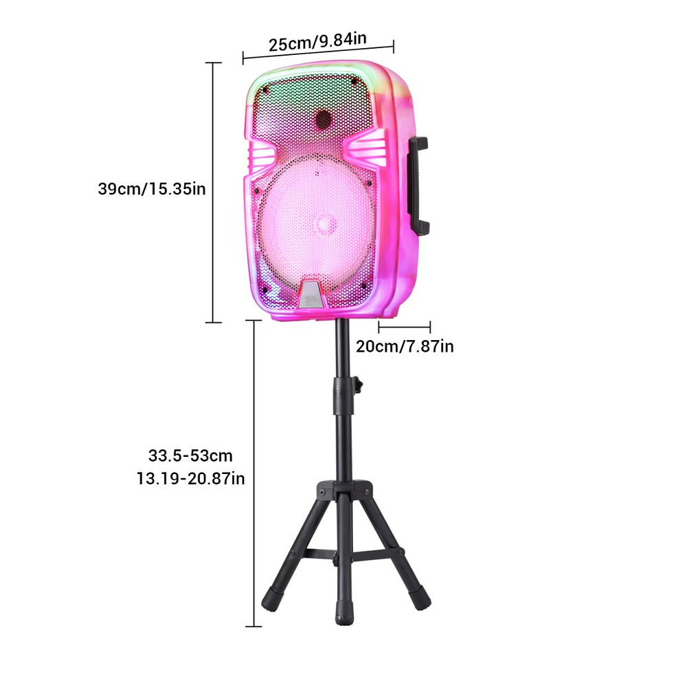 8in Portable Bluetooth Speaker Sub woofer Heavy Bass Sound System Party w/Stand This speaker is a versatile portable speaker designed for all occasions. With powerful audio performance and cool lighting effects, it can elevate your party to a whole new level. FEATURES: -Excellent sound quality . Equipped with an 8-inch woofer and 1.5-inch tweeter, it delivers powerful bass and clear treble. -Built-in tone control and digital equalizer (EQ), which can be adjusted via remote control to ensure optimal sound. -Gorgeous Lighting -Full cabinet clear party lights surround the speakers for stunning RGB LED lighting effects. -Liquid flowing RGB LED lighting creates a dynamic party atmosphere. -Multiple music sources -Bluetooth connection: support wireless Bluetooth device connection, enjoy wireless music playback. -Portable & Continuity. Rechargeable battery, built-in high-capacity battery, one charge can be played for a long time, no need to plug in and use. -TWS Stereo. Add a second speaker of the same model to enjoy the True Wireless Stereo Sound (TWS) experience. -Multiple audio inputs: USB drive: play MP3 music files stored in U disk through USB interface. TF card slot: Insert a TF card and play music files from it directly. AUX input: connect external devices, such as cell phone or computer, to play local music. FM radio: tune in to your favorite radio programs. Translated with DeepL.com (free version) SPECIFICATIONS: Colors: Pink Master Carton Qty: 1 Master Carton Dim: 11.4x9.5x17.2in Master Carton Wt: 6lbs Packaging Dim: 11.4x9.5x17.2in Packaging Wt: 6lbs Unit Dim: 10x8x15.4x4.3in Unit Wt: 4.3lbs PACKAGE INCLUDING: 1 x 8 inch Bluetooth Audio 1 x Stand 1 x Remote Control 1 x TYPE-C charging cable 1 x Wired Microphone 1 x English manual Payment Return Warranty Shipping Contact us Payment 1. We accept payment via PayPal. Use PayPal at checkout to pay with credit or debit. 2. Immediate payment is required. Shipping will be arranged within 1 business day once payment is cleared. Return 1. We stand behind our items and offer 60 days warranty. All items are in new and working condition unless specified otherwise elsewhere in the description. 2. All Returns - defective or otherwise - MUST BE PREAUTHORIZED to guarantee refund or exchange. Please contact us to get an authorization and return address. 3. Buyer agrees to pay for the cost of re-shipment for undeliverable or wrong addresses. 4. Buyer is responsible for Return Postage as well as a 20% restocking fee if return/replacement is not a result of our mistake such as wrong item. 5. Replacement or Refund will be made upon receipt of the returned item. Please include tracking number so we can process ASAP. If you do not wish to wait for a replacement, please repurchase the item. 6. ALL REFUNDS will be processed via PayPal. Please double check via PayPal history and transaction for confirmation. PayPal will send it back to whatever you used to pay within 3-5 days. Warranty The warranty shall not apply to the following circumstances: a) Damage caused by undue ware&tear, misuse, improper installation or operation, neglect, accidents. b) Damage caused by natural disaters, flood, fire, lightning or pollution. c) If item was opened, any parts removed or repaired by any unauthorized person. Shipping FREE SAME BUSINESS DAY MONDAY- FRIDAY SHIPPING FROM USA. All orders and payments received before 4PM EST (1PM PST) will be shipped the same business day. All other orders within 1 business day. No shipping on Weekends or US Public Holidays. No responsibility for any custom duty Shipping information will be updated when available. Contact us We have always been trying to provide the best service and reliable products for every customer, however, accident may happen sometimes, please contact us to resolve any issue before leaving a negative feedback.