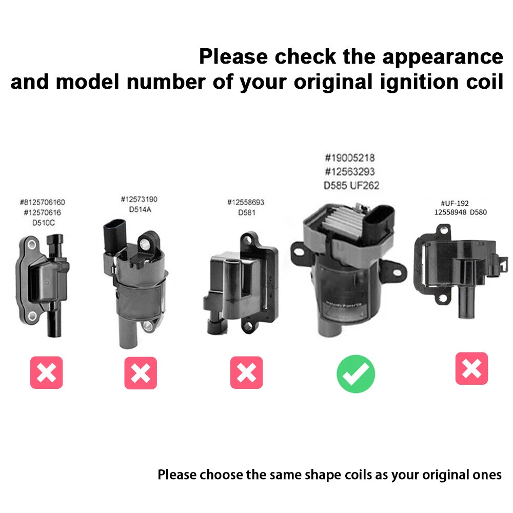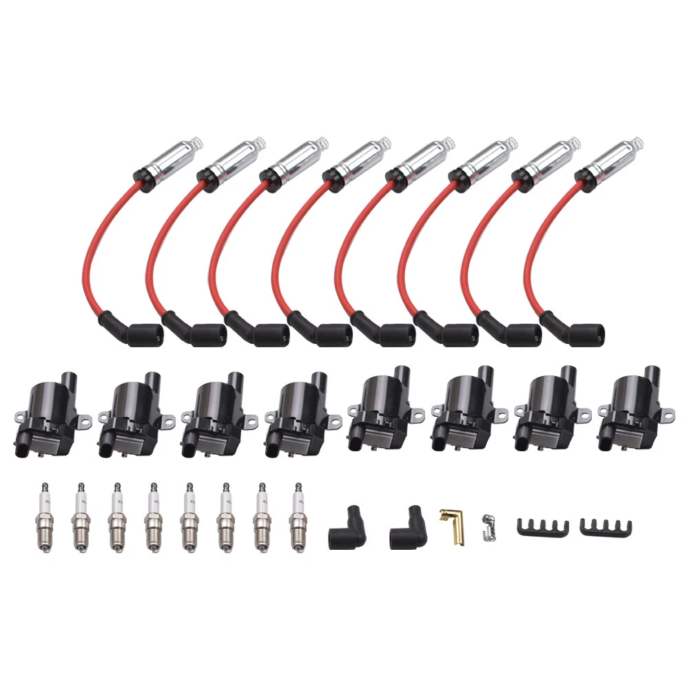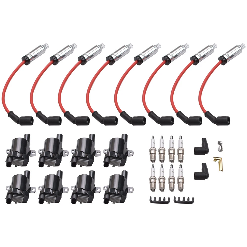 8* Ignition Coil Pack&Iridium Spark Plug&Wires For Chevy Silverado 1500 2500 GMC Package including: 8PCS Ignition Coils 8PCS Spark Plug Wire 8PCS Spark Plug Spark Plug Wire Divider Kit Replaces Parts Numbers: UF262, C1251, D585, 8125731900, 610-02839, GN10119 5C1082, E254, E254P, 52-1647, IC413, 10457730, 6737101 19005218, 8-10457-730-0, 8104577300, 12563293, CUF262 72909002614, 190005218, B045HE, BS-C1251, B045 12192195, 9748GG, 748GG, 12622553, 88862397, 12656210, XS10388 12192192 7873 12192133 88894393, 7874, 748EE, 09017, 748UU, 748BB Fitment: Buick Rainier 2004 5.3L Cadillac Escalade 2002-2005 5.3L Cadillac Escalade 2002-2006 6.0L Chevrolet Avalanche 1500 2002-2006 5.3L Chevrolet Express 1500 2003-2007 5.3L Chevrolet Express 2500 2003-2005 5.3L Chevrolet Express 2500 2003-2007 4.8L Chevrolet Express 2500 2003-2007 6.0L Chevrolet Express 3500 2003-2007 5.3L Chevrolet Express 3500 2003-2007 6.0L Chevrolet Express 3500 2005-2007 4.8L Chevrolet SSR 2003-2004 5.3L Chevrolet Silverado 1500 1999-2007 4.8L Chevrolet Silverado 1500 1999-2007 5.3L Chevrolet Silverado 1500 2003-2007 6.0L Chevrolet Silverado 1500 2009-2011 4.3L Chevrolet Silverado 1500 HD 2001-2007 6.0L Chevrolet Silverado 2500 1999-2004 6.0L Chevrolet Silverado 2500 1999-2006 5.3L Chevrolet Silverado 2500 HD 2001-2006 6.0L Chevrolet Silverado 3500 2001-2006 6.0L Chevrolet Silverado 3500 2004-2006 5.3L Chevrolet Suburban 1500 2000-2006 5.3L Chevrolet Suburban 1500 2006 6.0L Chevrolet Suburban 2500 2000-2006 6.0L Chevrolet Tahoe 2000-2006 4.8L Chevrolet Tahoe 2000-2006 5.3L GMC Savana 1500 2003-2007 5.3L GMC Savana 2500 2003-2005 5.3L GMC Savana 2500 2003-2007 4.8L GMC Savana 2500 2003-2007 6.0L GMC Savana 3500 2003-2007 6.0L GMC Savana 3500 2004-2007 4.8L GMC Sierra 1500 1999-2007 4.8L GMC Sierra 1500 1999-2007 5.3L GMC Sierra 1500 2002-2007 6L GMC Sierra 1500 HD 2001-2007 6.0L GMC Sierra 2500 1999-2000 5.3L GMC Sierra 2500 1999-2004 6.0L GMC Sierra 2500 HD 2001-2007 6.0L GMC Sierra 2500 HD 2006 8.1L GMC Sierra 3500 2001-2007 6.0L GMC Sierra C3 2001 6.0L GMC Yukon 2000-2006 4.8L GMC Yukon 2000-2006 5.3L GMC Yukon 2001-2006 6.0L GMC Yukon XL 1500 2000-2006 5.3L GMC Yukon XL 1500 2001-2006 6.0L GMC Yukon XL 2500 2000-2006 6.0L Hummer H2 2003-2006 6.0L Isuzu Ascender 2003-2004 5.3L