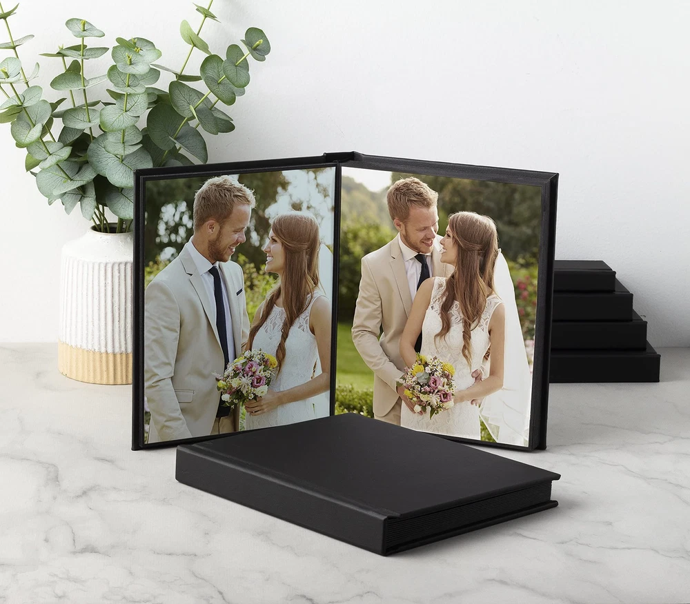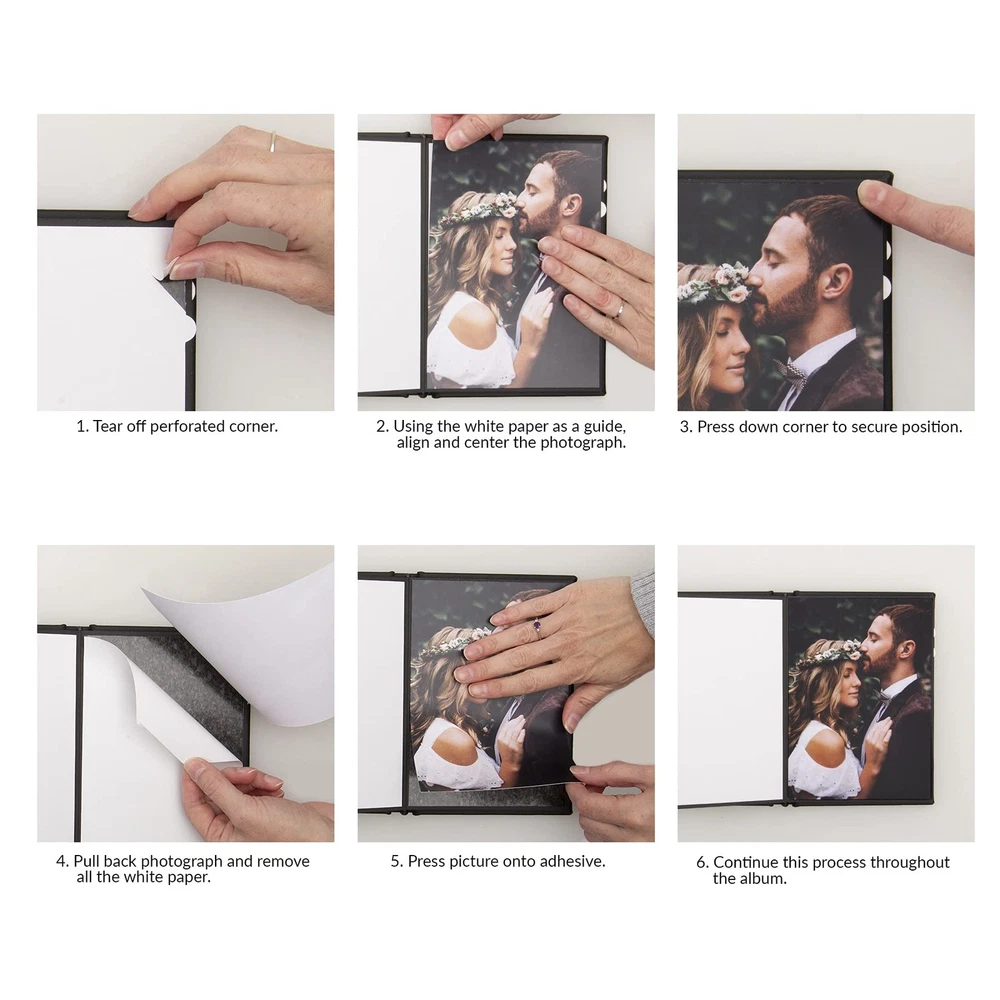 Vertical Self-Stick Albums Quality design and craftsmanship Economically priced Rich leatherette material Easy peel and stick pages Presentation box included Formerly known as the Neil Enterprises Brag Books Holds 20 8" x 10" photos Very easy self-stick or stick-on or peel and stick assembly Made out of rich leatherette material Perfect for displaying wedding or photos from a special occasion Larger sizes include a presentation box