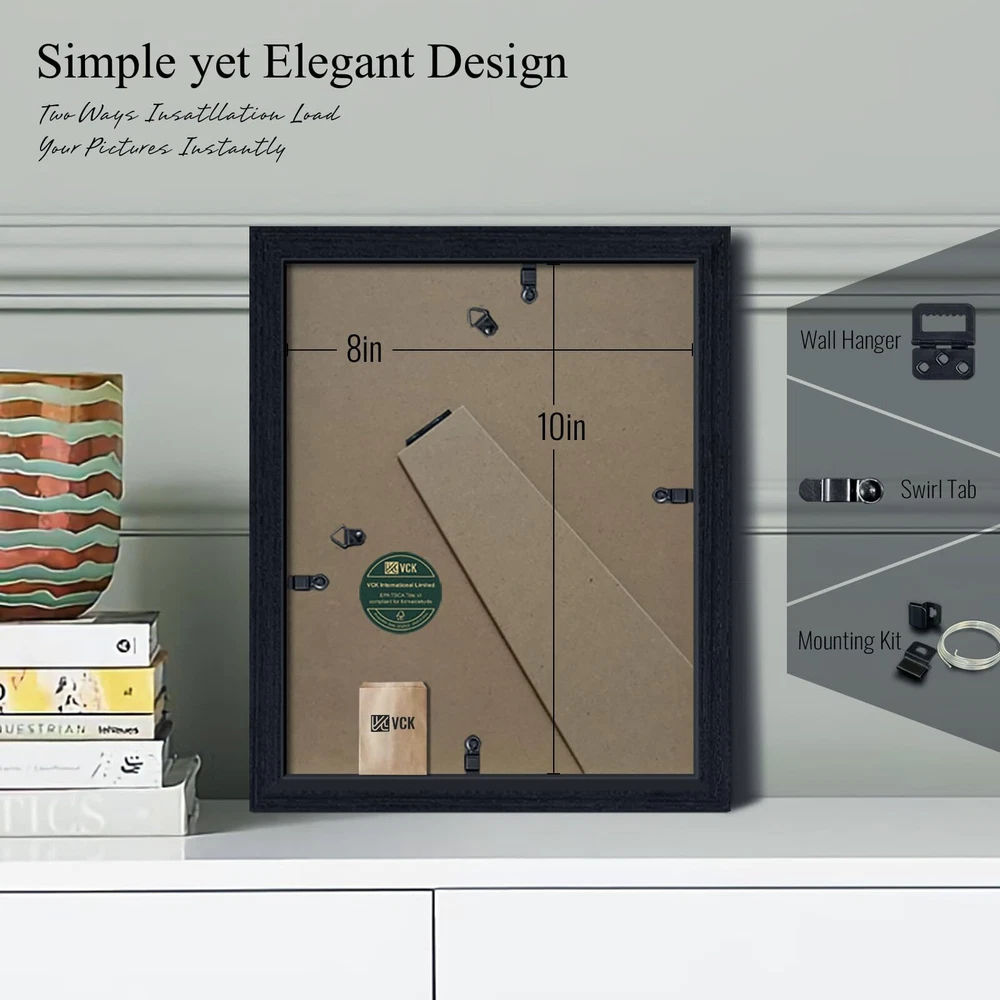 Award-Winning Design: Immerse yourself in the timeless elegance of Pennsylvania oak grain, masterfully reimagined in black by our independent designers team at . This tribute to classic craftsmanship fits seamlessly into any décor and brings a touch of sophistication to your life. FSC PREMIUM WOOD: Embrace the commitment of to sustainability and uncompromising quality. Our robust, long-lasting frames, echo our pledge to nature. Enhanced corners and backboards make sure your cherished moments are beautifully encased for eternity. PRODUCT FEATURES: Our versatile frame is perfect for displaying 8x10 without mat or 5x7 with mat photos. With the innovative design, you can effortlessly load your pictures and choose between horizontal or vertical display. Optimal View: Enjoy a new visual experience with our shatterproof HD tempered glass. Offering unparalleled UV ray protection and glare resistance, it's a safe and perfect choice for homes with children. Satisfied, or money back: At , we prioritize your satisfaction and strive for excellence in our product experience. We pack our frames securely to ensure a pristine condition upon arrival.