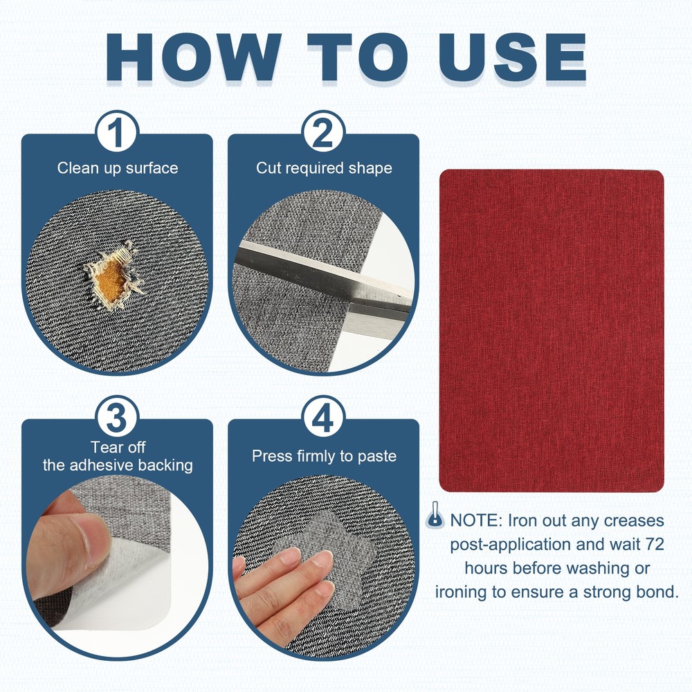 Document These linen fabric patch offers a quick solution to mend tears or holes in various fabrics like clothing, sofas, upholstery, and linen tablecloths. They complement not just linen but also nylon, cotton, and leather materials.SpecificationColor: RedMaterial: LinenSize: 280 x 205mm / 11 x 8 inch(L*W)Packing List: 2 x Fabric Patches Self AdhesiveAdvantageOur fabric repair patch tape is crafted from durable linen fabric, featuring an easy peel-and-stick design with a soft touch. Fabric patches are resistant to pilling and shrinking, machine washable for multiple uses while retaining its adhesive qualities.InstructionWith the clothing patches for holes, customization is simple as you can cut it into any shape or pattern needed. Peel off the backing paper, apply it to the damaged area, focusing on corners and seams to prevent felting and curling.NOTE: Iron out any creases post-application and wait 72 hours before washing or ironing to ensure a strong bond. 8x11 Inch Linen Repair Patches, 2Pcs Self-Adhesive Fabric Patch, Red These linen fabric patch offers a quick solution to mend tears or holes in various fabrics like clothing, sofas, upholstery, and linen tablecloths. They complement not just linen but also nylon, cotton, and leather materials. Specification Color: Red Material: Linen Size: 280 x 205mm / 11 x 8 inch(L*W) Packing List: 2 x Fabric Patches Self Adhesive Advantage Our fabric repair patch tape is crafted from durable linen fabric, featuring an easy peel-and-stick design with a soft touch. Fabric patches are resistant to pilling and shrinking, machine washable for multiple uses while retaining its adhesive qualities. Instruction With the clothing patches for holes, customization is simple as you can cut it into any shape or pattern needed. Peel off the backing paper, apply it to the damaged area, focusing on corners and seams to prevent felting and curling. NOTE: Iron out any creases post-application and wait 72 hours before washing or ironing to ensure a strong bond. Hot Item Payment 1.We accept eBay payment . 2.Payment must be received within 7 business days of auction closing. Shipping 1.We ship to your eBay or Paypal address. Please make sure your eBay and Paypal address is correct before you pay. 2.Items will be shipped within 1-3 business day when we received payment. 3.Delivery time depends on destination and other factors. Description Policy 8x11 Inch Linen Repair Patches, 2Pcs Self-Adhesive Fabric Patch, Red These linen fabric patch offers a quick solution to mend tears or holes in various fabrics like clothing, sofas, upholstery, and linen tablecloths. They complement not just linen but also nylon, cotton, and leather materials. Specification Color: Red Material: Linen Size: 280 x 205mm / 11 x 8 inch(L*W) Packing List: 2 x Fabric Patches Self Adhesive Advantage Our fabric repair patch tape is crafted from durable linen fabric, featuring an easy peel-and-stick design with a soft touch. Fabric patches are resistant to pilling and shrinking, machine washable for multiple uses while retaining its adhesive qualities. Instruction With the clothing patches for holes, customization is simple as you can cut it into any shape or pattern needed. Peel off the backing paper, apply it to the damaged area, focusing on corners and seams to prevent felting and curling. NOTE: Iron out any creases post-application and wait 72 hours before washing or ironing to ensure a strong bond. Hot Item Payment 1.We accept eBay payment . 2.Payment must be received within 7 business days of auction closing. Shipping 1.We ship to your eBay or Paypal address. Please make sure your eBay and Paypal address is correct before you pay. 2.Items will be shipped within 1-3 business day when we received payment. 3.Delivery time depends on destination and other factors.