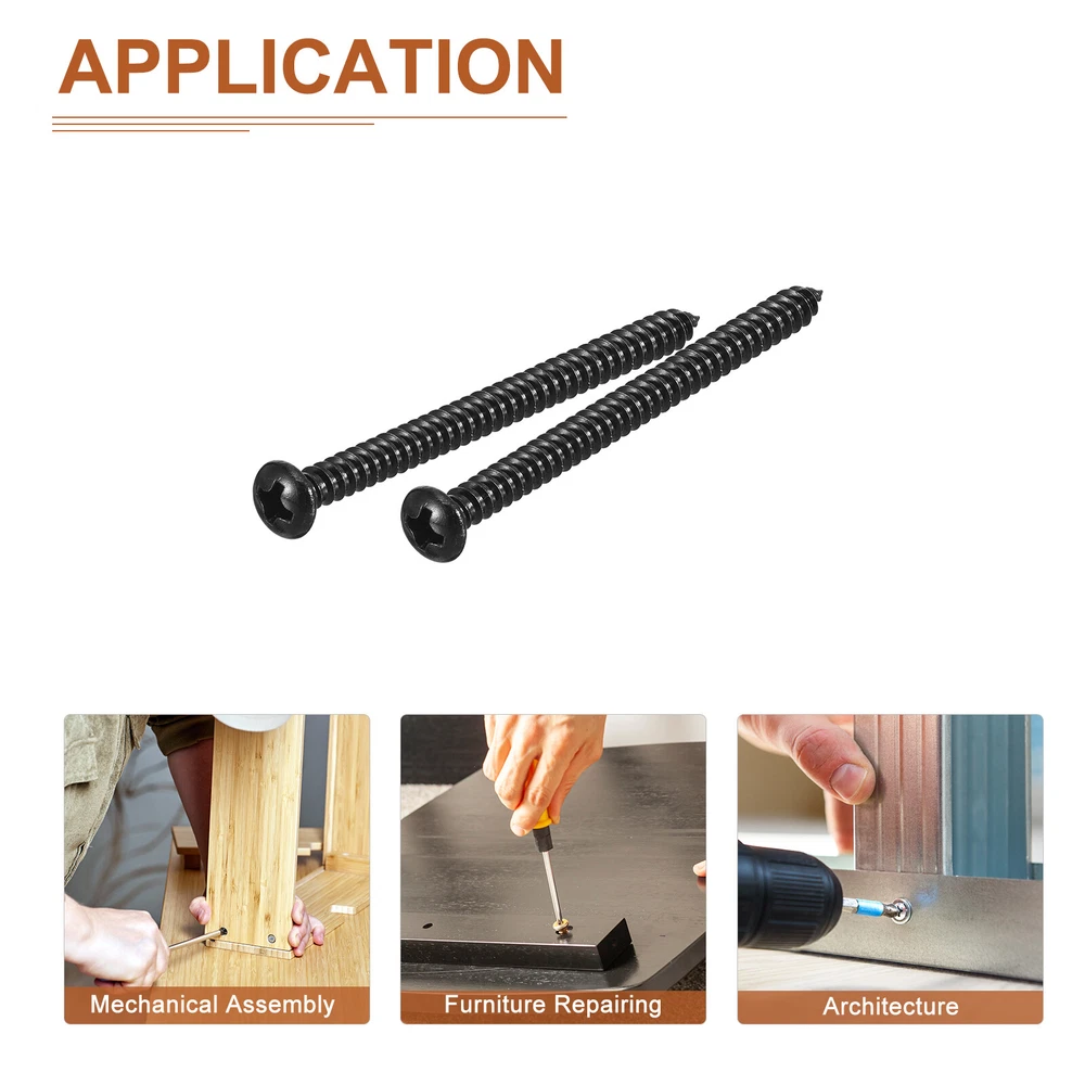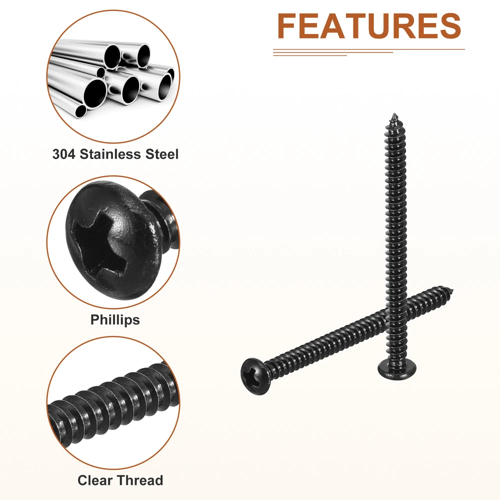 Document Product Details:Material: 304 Stainless SteelFinish: Black OxideThread Dia: #8Thread Length: 2inchHead Dia: 0.31inchHead Thickness: 0.11inchPackage Content: 25pcs x Phillips Pan Head Self-tapping ScrewsMaterial - The Phillips pan head self-tapping screw is made of 304 Stainless Steel, with a black oxide surface finish, which has high strength, anti-rust and corrosion resistance, long service life, and is solid.Feature - For different materials, cross grooves are easy to drill into, such as wood, spray-painted sheet metal, or other materials, and are good hardware fasteners. The self-tapping design allows faster screwing into hardwood, reducing cracking problems.Application - Sheet metal screws are widely used for furniture, household goods, electronics, communications, power products, floor fastening, industrial, construction, machinery, equipment maintenance, and other DIY projects.Notice - For harder materials, it is recommended to pre-drill with a drill to make it easier to insert the screws. This prevents the material from cracking or screws from slipping. #8x2" Phillips Pan Head Self-tapping Screw - 25Pack 304 Stainless Steel Product Details: Material: 304 Stainless Steel Finish: Black Oxide Thread Dia: #8 Thread Length: 2inch Head Dia: 0.31inch Head Thickness: 0.11inch Package Content: 25pcs x Phillips Pan Head Self-tapping Screws Material - The Phillips pan head self-tapping screw is made of 304 Stainless Steel, with a black oxide surface finish, which has high strength, anti-rust and corrosion resistance, long service life, and is solid. Feature - For different materials, cross grooves are easy to drill into, such as wood, spray-painted sheet metal, or other materials, and are good hardware fasteners. The self-tapping design allows faster screwing into hardwood, reducing cracking problems. Application - Sheet metal screws are widely used for furniture, household goods, electronics, communications, power products, floor fastening, industrial, construction, machinery, equipment maintenance, and other DIY projects. Notice - For harder materials, it is recommended to pre-drill with a drill to make it easier to insert the screws. This prevents the material from cracking or screws from slipping. Hot Item Payment 1.We accept eBay payment . 2.Payment must be received within 7 business days of auction closing. Shipping 1.We ship to your eBay or Paypal address. Please make sure your eBay and Paypal address is correct before you pay. 2.Items will be shipped within 1-3 business day when we received payment. 3.Delivery time depends on destination and other factors. Description Policy #8x2" Phillips Pan Head Self-tapping Screw - 25Pack 304 Stainless Steel Product Details: Material: 304 Stainless Steel Finish: Black Oxide Thread Dia: #8 Thread Length: 2inch Head Dia: 0.31inch Head Thickness: 0.11inch Package Content: 25pcs x Phillips Pan Head Self-tapping Screws Material - The Phillips pan head self-tapping screw is made of 304 Stainless Steel, with a black oxide surface finish, which has high strength, anti-rust and corrosion resistance, long service life, and is solid. Feature - For different materials, cross grooves are easy to drill into, such as wood, spray-painted sheet metal, or other materials, and are good hardware fasteners. The self-tapping design allows faster screwing into hardwood, reducing cracking problems. Application - Sheet metal screws are widely used for furniture, household goods, electronics, communications, power products, floor fastening, industrial, construction, machinery, equipment maintenance, and other DIY projects. Notice - For harder materials, it is recommended to pre-drill with a drill to make it easier to insert the screws. This prevents the material from cracking or screws from slipping. Hot Item Payment 1.We accept eBay payment . 2.Payment must be received within 7 business days of auction closing. Shipping 1.We ship to your eBay or Paypal address. Please make sure your eBay and Paypal address is correct before you pay. 2.Items will be shipped within 1-3 business day when we received payment. 3.Delivery time depends on destination and other factors.