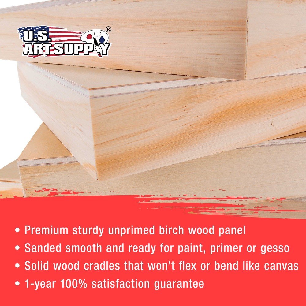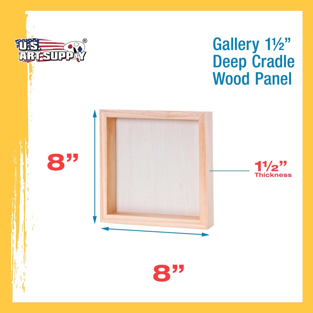 ]]> U.S. Art Supply Ebay Storefront Ordering | Shipping | Returns | International Product Information Part# USA WCG08X08-4PK Unfinished Birch Wood Canvas Panels for Painting, 4 Pack of 8x8 inch - Artist Gallery 1-1/2" Deep, Square Wooden Wall - Mixed-Media Craft, Acrylic, Oil, Encaustic, Paint Pouring 1-1/2" Gallery Depth Canvas Wood Art Panels: 4 Pack of premium artist quality 8" x 8" x 1-1/2" deep gallery depth cradled birch wood paint pouring panel boards. Premium sturdy unprimed smooth birch surface panels that are ready for primer or gesso. Alternative to Canvas: Provides a firm smooth painting surface that will not stretch, flex or bend like traditional canvases. Unfinished panels have smooth sanded birch faces with solid wood cradles that ensure strength, so there will be no warping. Easy to hang, as no frames are necessary. Ideal for Mixed-Media: 8x8 Wood Canvas boards for painting. Wooden Panels are excellent for paint pouring and most art and craft projects, as they can be used with all types of mixed-media including oil, acrylic, watercolor, tempera, encaustic, collage, decoupage, impasto, photos, drawing etc... Available in Multiple Wood Panel Size and Depths: Our cradled wood panels are available in multiple sizes from 4" x 4" up to 24" x 36" and with cradle depths of either 1-1/2" Gallery Panels or 3/4" Studio Panels. Quantity of panels per package also vary from 2 to 5. Our wood panel boards are used by professional artists, as well as the young aspiring artist for creating unique artwork. U.S. Art Supply is a national industry leader in Art Supplies. Buy with Confidence: Backed by a trusted brand dedicated to your satisfaction, we ensure a hassle-free experience every time. Discover the perfect foundation for your artistic creations with our premium artist birch wood panels for painting. These wood canvas boards for painting offer an ideal surface for artists seeking durability and a smooth texture. Wood boards for crafts. Our wooden canvas provides exceptional support, ensuring your paintings stay vibrant for years. Choose from a variety of wood painting panels that combine the natural beauty of wood with a finely sanded finish, perfect for both oil and acrylic paints. Whether you're working on a small project or a large masterpiece, our wooden canvases for painting deliver a reliable and versatile medium.