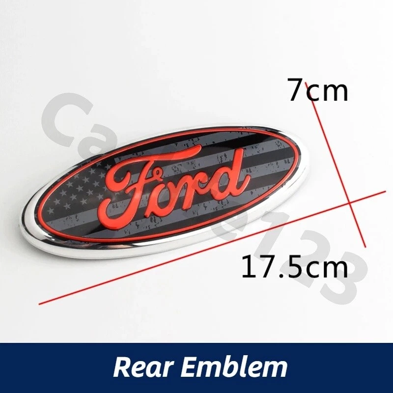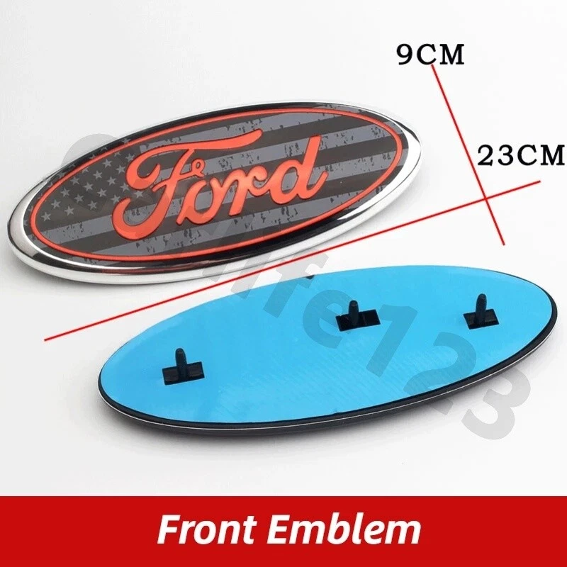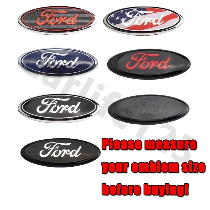 Notice: Please confirm your measure emblem size before buying!!!!!!!!!!!!!! Most model: Front: Length: 9 inches (23cm) Width: 3 .5 inches (9cm) Badge: Length: 7 inches (17.5cm) Width: 2.75 inches (7cm) ** It will fit in the rear luggage compartment and the front grille. Please make sure your truck requires a 9 inch badge, some custom models have different sized badges (like a 7 inch badge). Package: 1pc Material: ABS base + aluminum alloy logo Size: 17.5cm * 7cm (7 inches); 23cm * 9cm(9 inches) Adhesion: double-sided tape Fit for: Ford Color: American color, silver on black, red on black, all black, silver on black, original blue Color, American Gray Notice: - Please allow slight dimension difference due to different manual measurement.(The size error range is ±1-3mm.) - Due to the light and screen setting difference, the item's color may be slightly different from the pictures. - Please make sure your car can use it first! - If there is any question with the product, please contact us!
