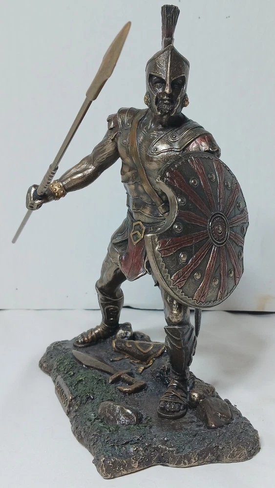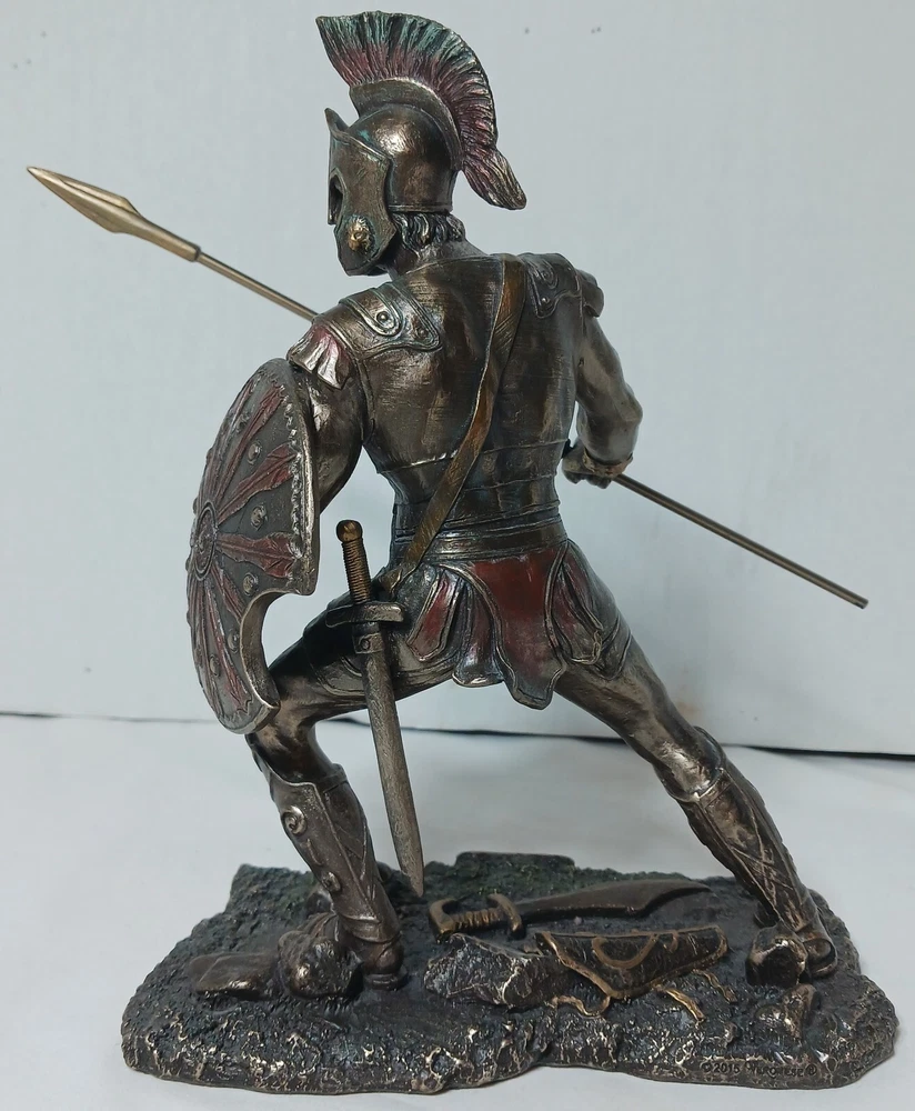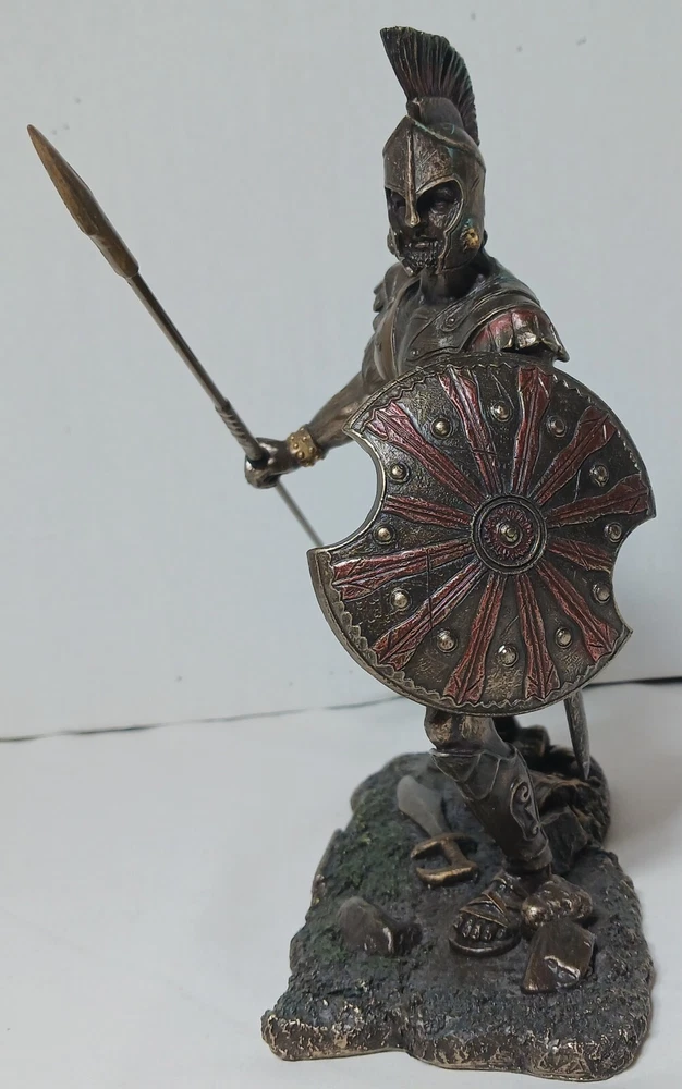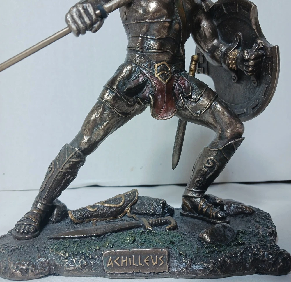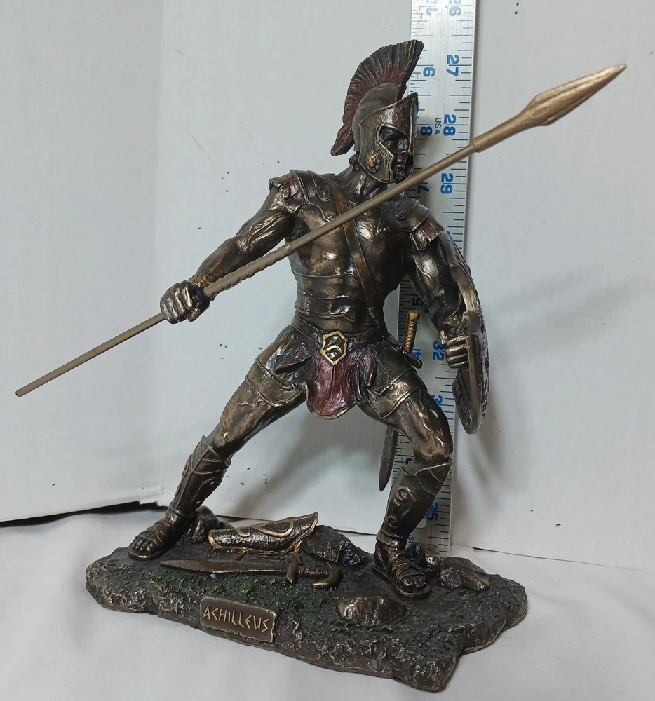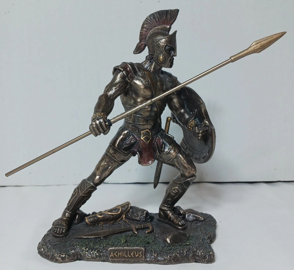 9" ACHILLES W/ Spear & Shield GREEK MYTHOLOGY Sculpture Statue Bronze Color, Veronese. See pictures for details. The pictures are of the actual item you will receive.