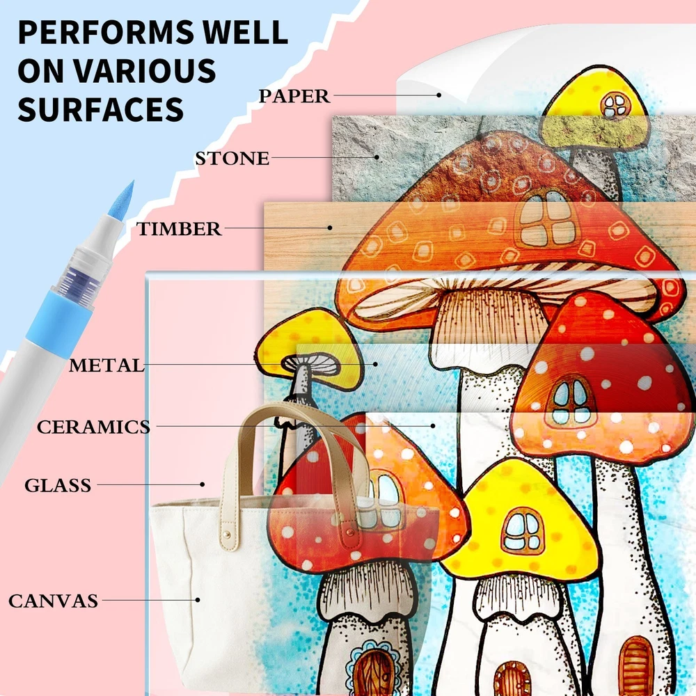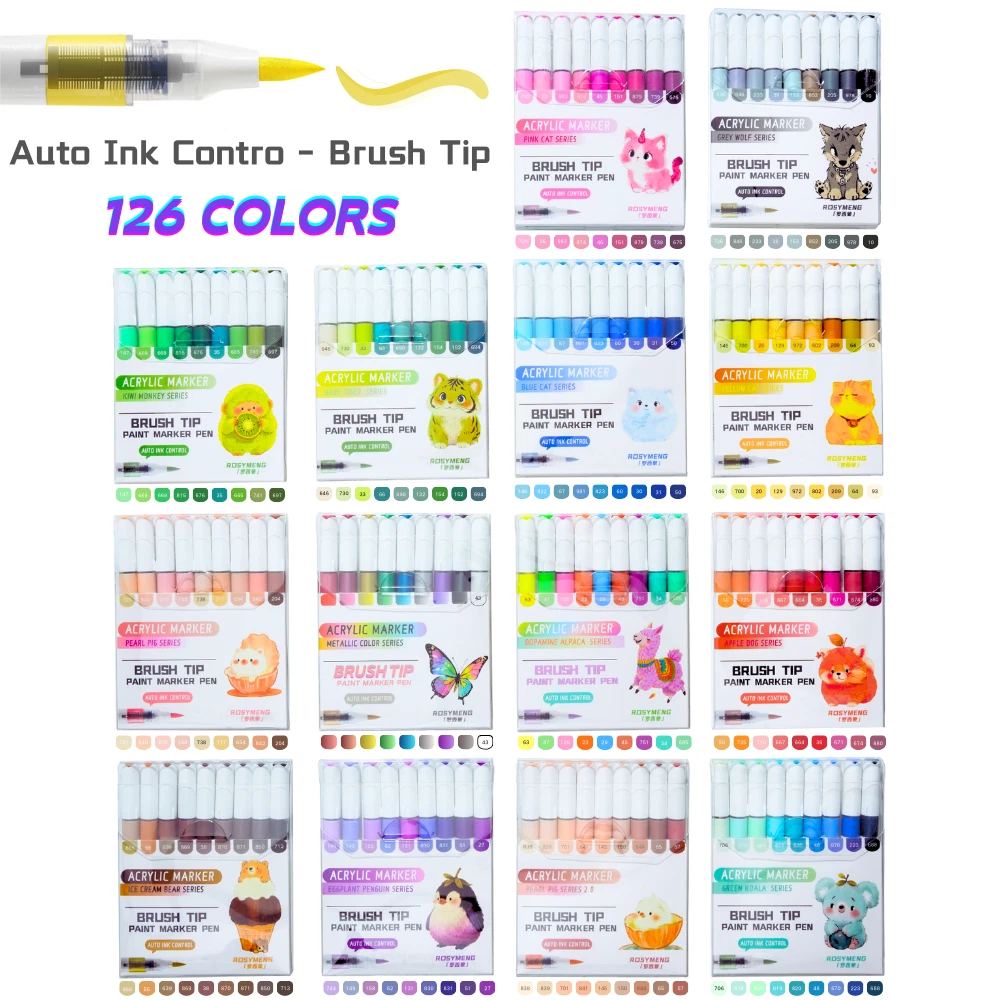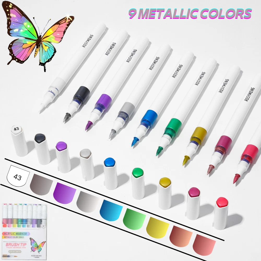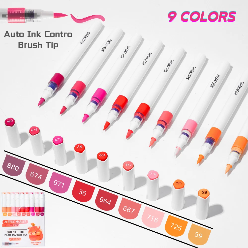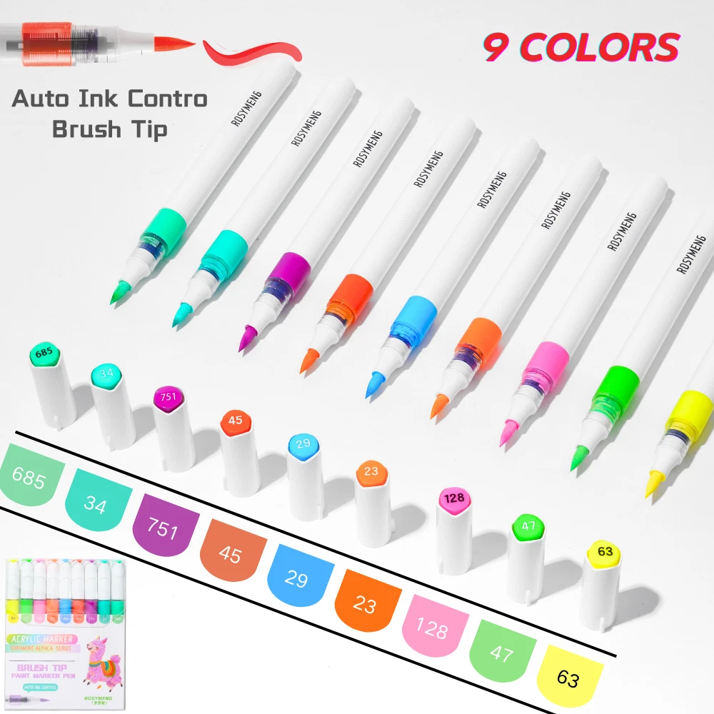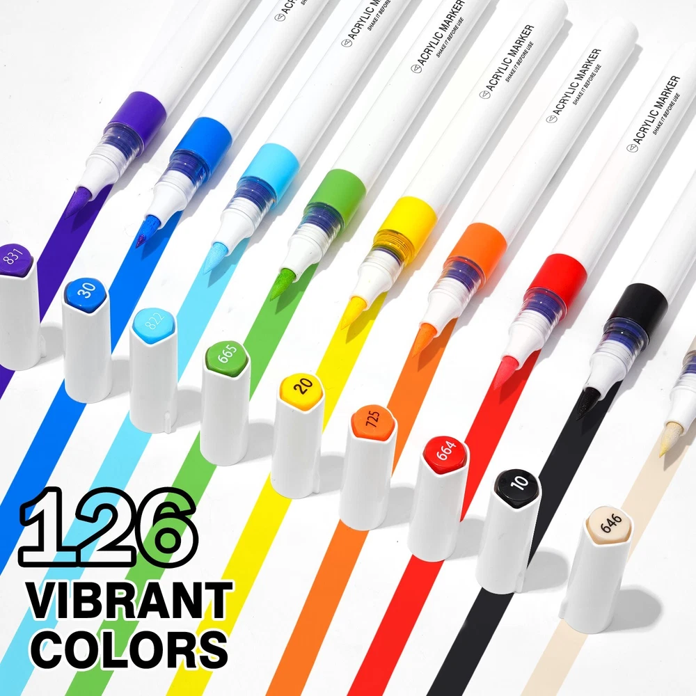 ROSYMENG acrylic paint pens set offer a selection of 9/126 rich and colorful options. Each paint markers are designed with unique and vibrant colors that cater to all your creative need. A variety of colors allows you to let your imagination run wild and have unlimited creative possibilities. Ideal for both beginners and professional artists looking to enhance their designs. These paint pens with soft brush tip feature a smooth application and strong coverage and water-resistant once dry which can make you enjoy uninterrupted creativity. Our 9-color acrylic paint markers feature long-lasting, fast-drying ink that won’t smudge or fade over time and this acrylic markers are made from non-toxic, eco-friendly materials, making them meet safety standards and are easy to handle for all skill levels. Our paint pens and paint markers are perfect for various surfaces, including paper, rocks, wood, glass, canvas, and more. Whether you’re working on a DIY home decor project or creating custom gifts, these paint markers for wood deliver bright, bold color on every surface which can let your imagination run wildly Each acrylic markers paint pens caps matches the ink color, with corresponding numbers for easy identification. The included color chart making it easy for you to choose exactly the right color every time. Looking for a thoughtful holiday presents? Whether it's Birthdays, Easter, Christmas, Halloween, Valentine's Day, Thanksgiving, or any other special occasion worth celebrating, our acrylic paint pens and acrylic paint markers with exquisite packaging making them ideal for parents and grandparents of children.