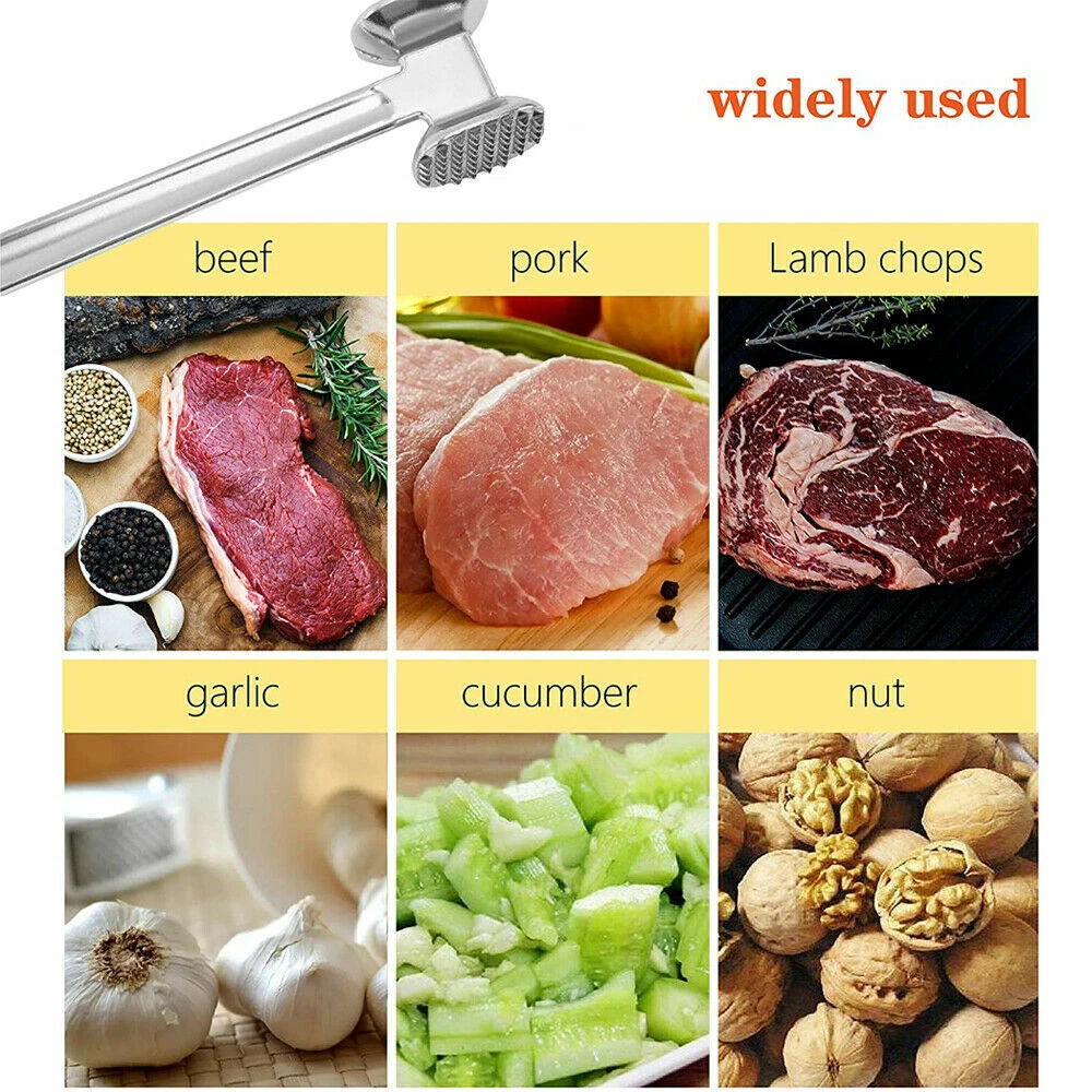 9" Double Side Meat Tenderizer Steak Mallet Food Hammer Beef Pork Kitchen Tool Package Include : 1 * Meat Hammer Specifications: Features: - Premium Quality: This hammer features one-piece aluminum construction for strength and durability. - Double Sides Design: The textured side is used to mash all kinds of meat. The smooth side is used to flatten the meat. - Convenient Storage: With handle hole which can be used to hang the hammer anywhere in the kitchen to keep it clean. - Multifunctional: Perfect for enhancing the tasty of barbecue, steak, pork ribs, pork, chicken, turkey, lamb, goose, duck, etc. You can also crack walnut shells, crab shells, crush garlic, and even break down ice drinks and bread crumbs, nuts and candies. Note: Pictures are taken in kind, due to the different colors of the display, there may be deviations. Due to manual measurement, there will be an error of +/- 5 mm. Thank you for your understanding. Guarantee • Fast & Free Shipping on ALL Orders We believe that you should enjoy the benefit of FREE Shipping on all of your orders within the all Continental States. That's why no matter what you buy, we will ship it for FREE, so the price you see is exactly what you pay. No hidden fees or shipping charges. • Most Items Delivered in 2-6 Business Days When you're buying from us, you deserve fast and reliable service. That's why we have a "Same Business Day" processing in place and wide range of shipping options to choose from in order to deliver your package as soon as possible. *2-6 business days’ time-frame is NOT GUARANTEED and was statistically calculated based on all previous orders. • ALL Orders Placed On Business Days Before 4 PM EST Will Be Shipped Same Day Why wait a day or more for your order to ship? All orders placed before 4 pm EST, Monday to Friday, ship the SAME day. Orders placed on Friday after 4 pm EST, Saturday and Sunday will be shipped the next Monday (if business day). We are closed on all Federal Holidays. • 30 Days Money Back Guaranteed! We will gladly accept your return within 30 days of the original purchase. Please, see below for our full Returns Policy. Shipping • Most orders arrive at your door in 2-6 Business Days FOR FREE! • Place your order before 4 pm EST and it will be shipped the same day, Monday to Friday, excluding major holidays. • We will ship your order to your PayPal Verified address provided. • Please verify your address and make sure that it is your current address before making your payment. Any address change requests after your payment CANNOT be guaranteed. • We do not include invoice with our shipments. Feedback • Positive feedback is automatically done once your order is shipped. • We appreciate all our customers to post a Positive Feedback and "Five-Star" scores. • If for any reason you are not satisfied with your purchase. Please contact us via eBay Message and We will do our best to satisfy you! Payment & Cancellation • Instant PayPal payment is required. • We also accepts Visa, MasterCard, Discover, and American Express through PayPal guest checkout. • Sales tax is charged by eBay based on your shipping address. • To uphold a shipping speed, your order will be processed almost immediately. If you change your mind after your payment is confirmed, we will do our best to stop the order, however, we CANNOT guarantee the cancellation. Return • We will gladly accept your return within 30-Days of the original purchase. • Our return process is simple and fast: 1. We will pay for the return shipping label if you received a broken/defective item(s) or the item(s) doesn't match our description. As soon as we receive the item(s) back we will process a refund for the item(s)which was/were returned. 2. You will be required to pay for the return shipping label if you changed your mind or no longer need the item(s). As soon as we receive the item(s) back we will process a refund for the item(s) which was/were returned. • If we'll receive a package back because of the incorrect address, the refund will be processed excluding our shipping cost. Contact Us • Send us a message on eBay and we will answer within 24h on business days.