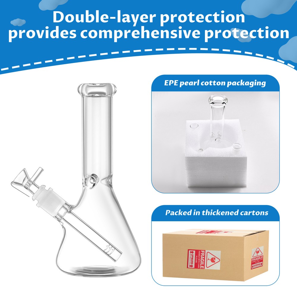 Detailed Description: Material: high borosilicate glass Thickness: 5mm (bottom approx. 4mm) Height: 8.5in/22cm Weight: 12.6/360g Bowl size: 14mm Length of stem: 5in/12cm Shipping: USPS 1-4 days PACKAGING: In order to protect the privacy of each buyer, there is no logo on the box, no one knows what products are inside! Fragile labels are attached to each box, and five layers of corrugated paper with pearl cotton are used inside the box to ensure that the product reduces the risk of damage during transportation. Received item damaged? If you receive a damaged item, please take a photo of it. Be careful not to cut your fingers We pay insurance for every order, if you receive a damaged item, please provide a photo and we will send you a replacement or refund. (Please do not open a return, we are able to resolve any issues) Cleaning Suggestion: Add a small amount of rice grains to the Bong, then add warm water and detergent, gently shake the Bong then rinse repeatedly. After-sales service: Usually we will reply you within 6 hours, sometimes there is a delay in reply on weekends. On Sep 12, 2024 at 05:36:41 PDT, seller added the following information: On Jun 7, 2025 at 02:38:10 PDT, seller added the following information: On Jun 15, 2025 at 06:47:40 PDT, seller added the following information: