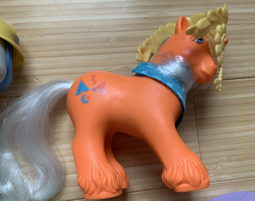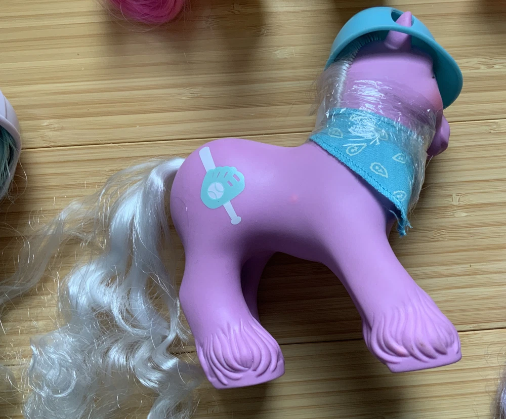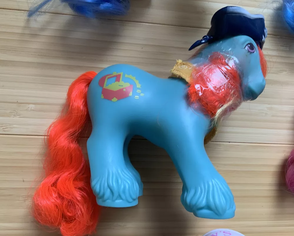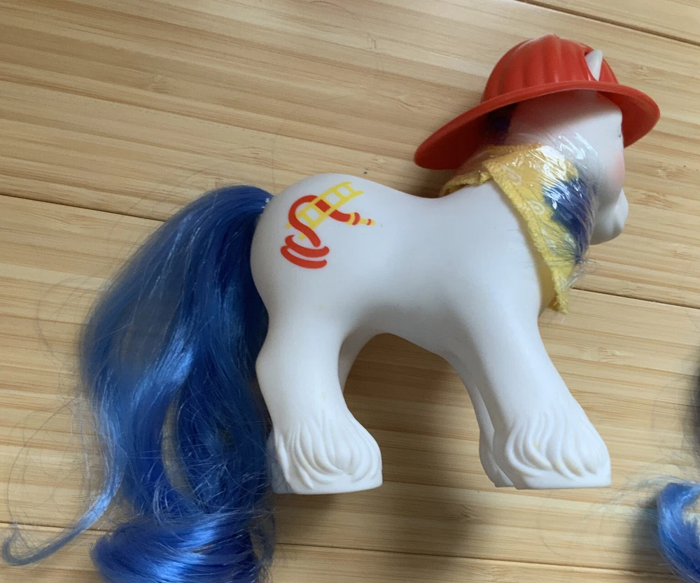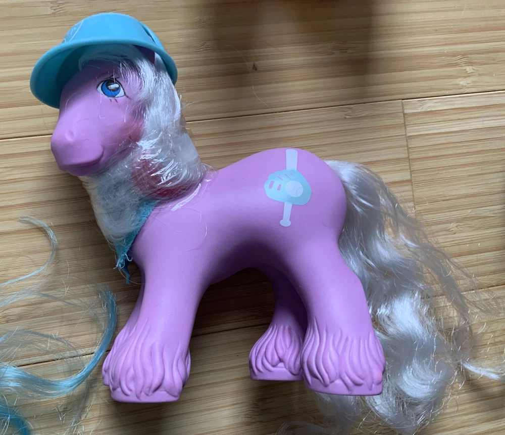 This lot is for ALL 9 My Little Pony Big Brother ponies! All with their hats and bandanas! These have been carefully stored with their manes wrapped for over 20 years. That being said, they still have some dots and/or discoloration due to their age. This is a perfect way to collect all of the US-released Big Brother ponies at once, either for yourself or maybe a holiday gift for someone else! Please check all pictures thoroughly and ask any and all questions before buying! You will receive: Chief - yellow spots on body 4-Speed - body does have marks and discoloration WigWam - looks good Quarterback - some marks and discolorations Steamer - some pink dots, light pen mark (?) on muzzle Pirate - marks on body, face - you can see some under right eye and left nostril Tex - couple of very light marks, clean Slugger - couple of pink dots Salty - couple of light marks From a non-smoking home! FAST shipping from US seller!