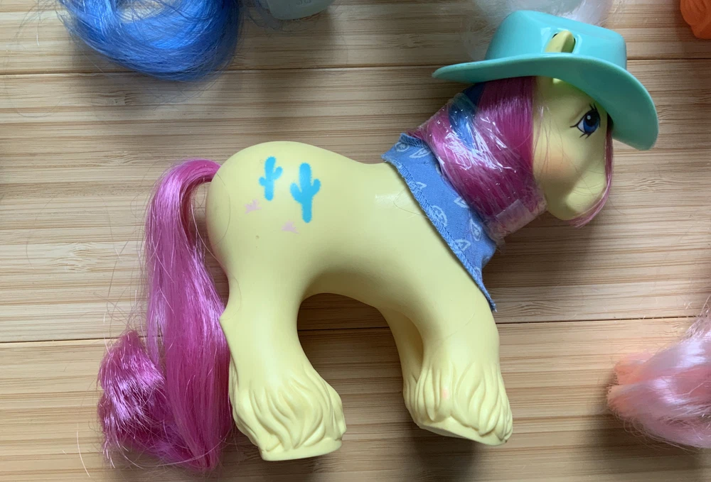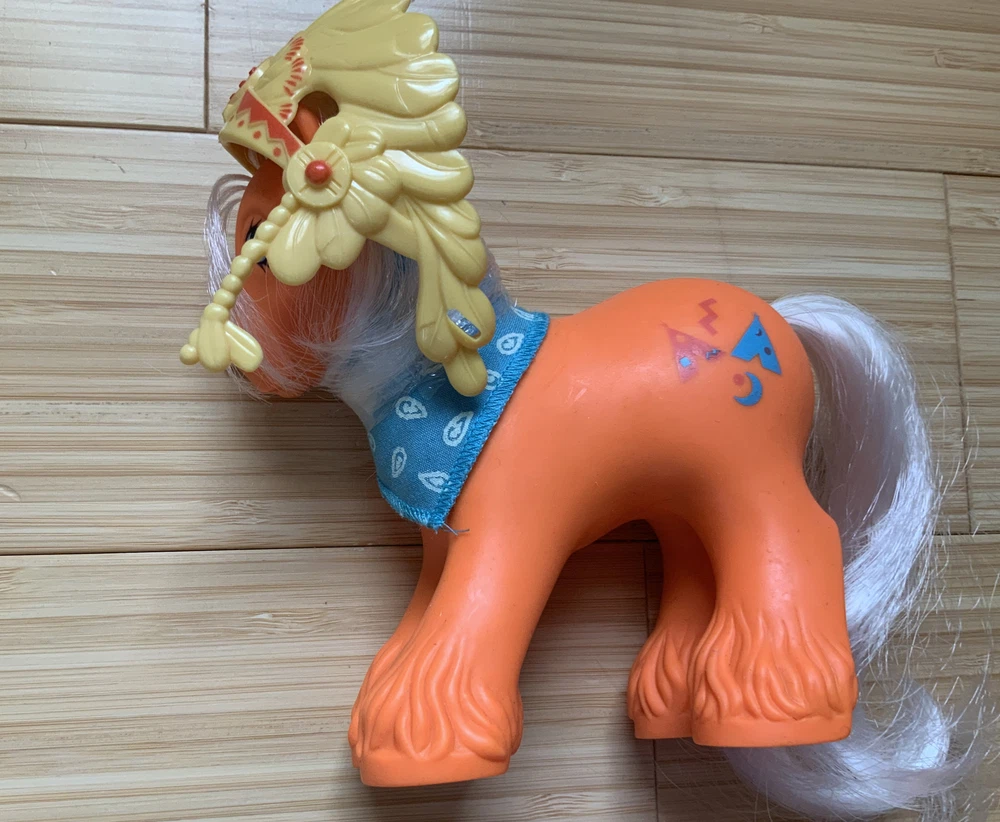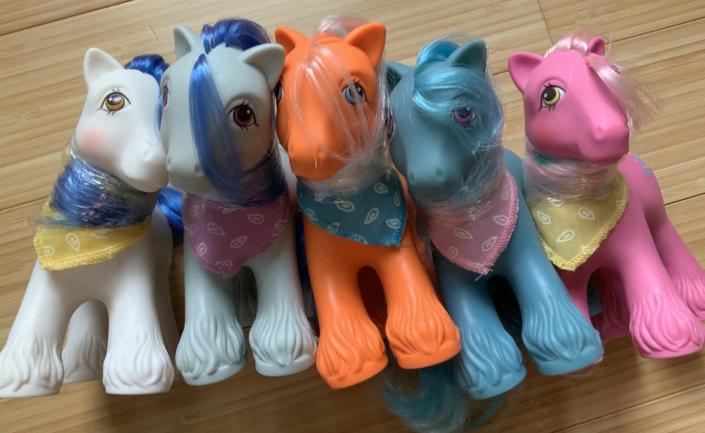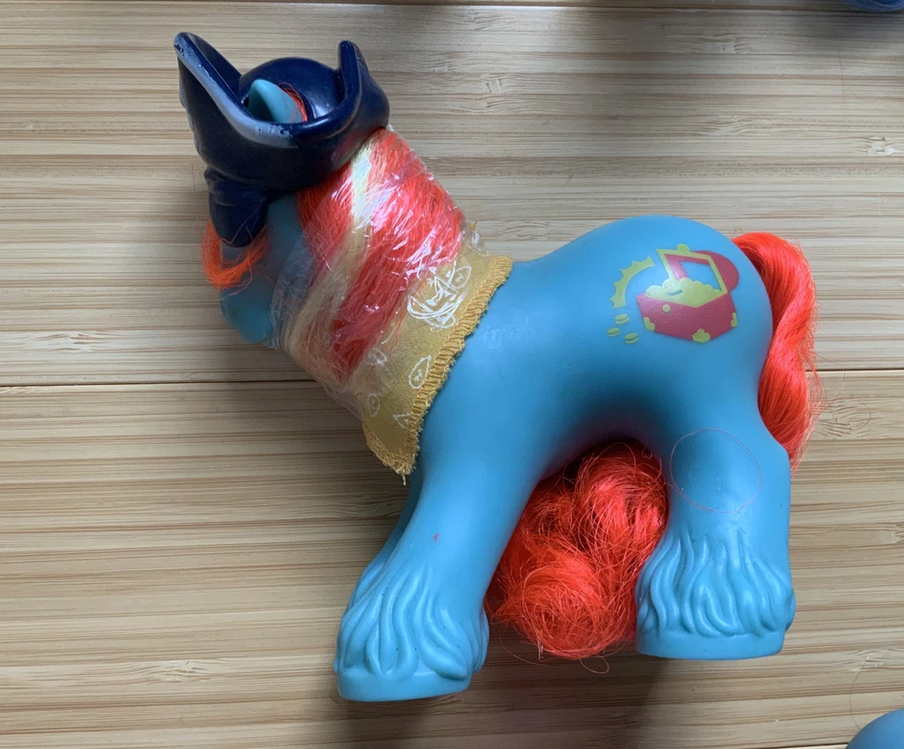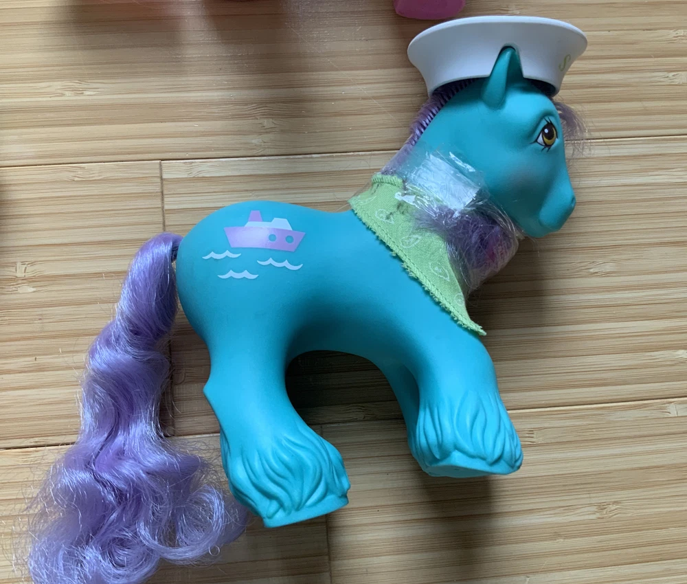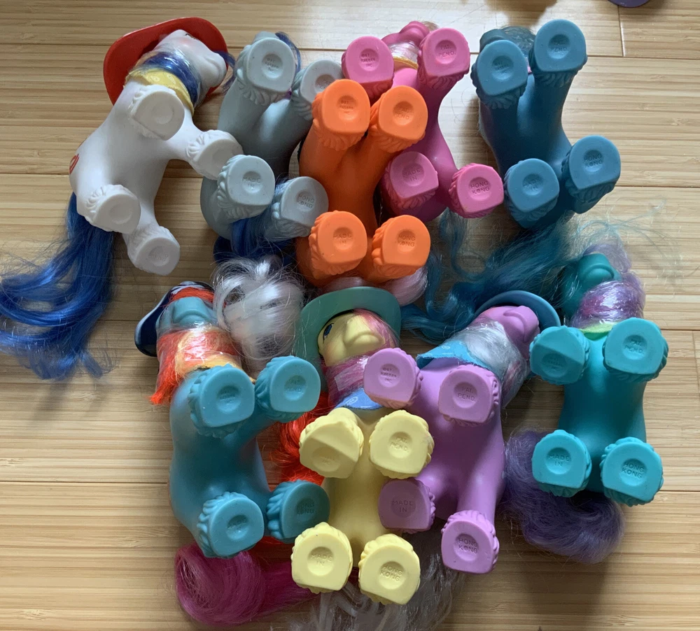 This lot is for ALL 9 My Little Pony Big Brother ponies! All with their hats and bandanas! These have been carefully stored with their manes wrapped for over 20 years. That being said, they still have some dots and/or discoloration due to their age. This is a perfect way to collect all of the US-released Big Brother ponies at once, either for yourself or maybe a holiday gift for someone else! Please check all pictures thoroughly and ask any and all questions before buying! You will receive: Chief - yellow spots on body 4-Speed - body does have marks and discoloration WigWam - looks good Quarterback - some marks and discolorations Steamer - some pink dots, light pen mark (?) on muzzle Pirate - marks on body, face - you can see some under right eye and left nostril Tex - couple of very light marks, clean Slugger - couple of pink dots Salty - couple of light marks From a non-smoking home! FAST shipping from US seller!