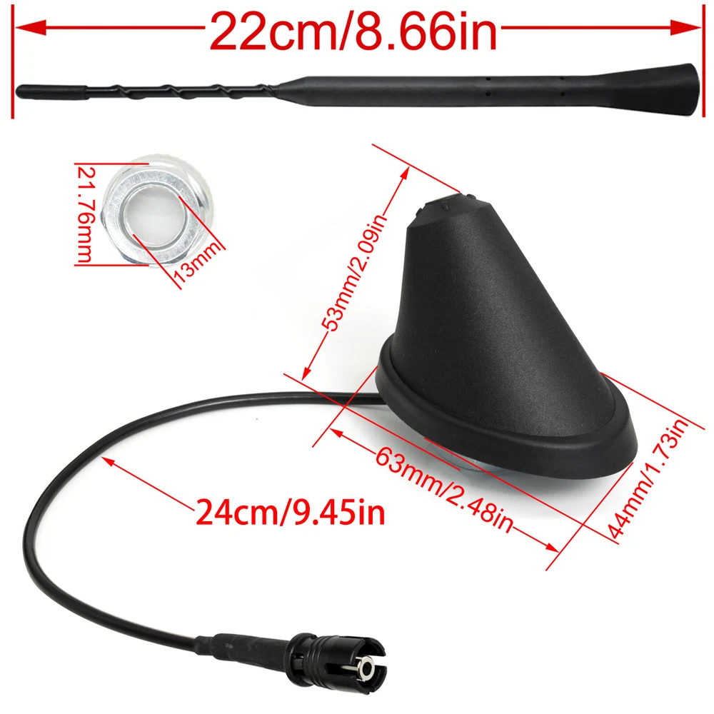 9” Roof Mount Antenna Aerial Base Mast Whip For VW BMW Toyota Mazda Mini Cooper; Features : 1. The base is designed with a single coax connection with a RAKU 2 type connector. Please ensure your existing base has this connection before buying. 2. The reception may vary for original VW radios. This antenna is for radio only, not navigation or phone. 3. With a 9" flexible antenna mast and base to replace the OEM part. Antenna length: Approx. 9" (23CM) This antenna fits Plug & Play on the following Volkswagen models : For Volkswagen For VW GOLF MK4 MK5 For VW BORA / Jetta MK4 For VW PASSAT 3B/B5 For VW PASSAT 3BG/B5.5 For VW LUPO For VW POLO 6N2 For VW POLO 9N For VW NEW BEETLE For VW SHARAN 00-04 For VW T4 96-03 For BMW For BMW Z4 2003 - 2008 BMW Z3 1996 - 2002 BMW M3 Convertible 1998 - 2006 BMW 330ci 2001 - 2006 BMW 325ci 2001 - 2006 BMW 323ic 1995 - 1999 BMW 318ic 1993 - 1999 BMW 318ti 1995 - 1999 For Mazda For Mazda 3 2004 - 2009 For Mazda 5 2005 - 2010 For Mazda 6 2003 - 2008 For Mazda Protege5 2002 - 2003 For Mazda MX-5 Miata 2006 - 2010 For Toyota For Toyota Yaris Hatchback 2007 - 2010 For Toyota Prius 2004 - 2009 For Toyota Matrix 2003 - 2008 For Toyota Corolla 2003 - 2008 For Toyota Solara Convertible 2004 - 2008 For Chevrolet Aveo 2004 - 2006 For Sprinter 2002 - 2009 Dodge For Lexus IS300 2001 - 2005 For Mitsubishi Lancer 2002 - 2009 For Mini Cooper 2002 - 2006 For Nissan 350z 2003 - 2009 For Pontiac Vibe 2003 - 2009 For Scion tC 2005 - 2010 For the following models there might be small modifications required to the antenna wiring/plug/connector : For VW models: For VW GOLF MK1 For VW GOLF MK2 For VW GOLF MK3 For VW VENTO / Jetta MK3 For VW CADDY 04-07 For VW TOURAN 03-07 For VW PASSAT B4 For VW CORRADO For VW SCIROCCO 82-93 For Audi models: For Audi A2 A3 A4 A6 A8 TT 100 For Skoda models: For Skoda FABIA 00-04 For Skoda OCTAVIA 97-07 For Skoda SUPERB 02-07 For Skoda ROOMSTER 06-07 For Seat models: For Seat ALHAMBRA 96-07 For Seat ALTEA 04-07 For Seat AROSA 97-04 For Seat CORDOBA 96-07 For Seat IBIZA 95-07 For Seat LEON 02-07 For Seat TOLEDO 95-07 Package include: 1 pc antenna base 1 pc antenna mast We accept Paypal and majoy credit cards payment When you place an order, please choose a shipping method and pay for the order including the shipping fee within 48 hours. And please make sure your current address correct after your payment within 1-2 days! About Shipping 1. Receiving time = Processing time + Shipping time 2. Processing Time: Around 1-3 Days 3. Shipping Time: 15-26 Days By Air Mail 3-10 Working Days By Express We do not guarantee delivery time on all international shipments due to differences in customs clearing times in individual countries, which may affect how quickly your product is inspected! Important Notice >Transit Time Is Best Estimated But NOT Guaranteed As Transit Time Varies >Orders may be subject to import taxes, customs duties and fees levied by the destination country.Additional charges for customs clearance must be fulfilled by the recipient; We no control over these charges, nor can we predict what they may be. 100% Customer Satisfaction Is Our Top Priority For Any Reasons You Are Not Satisfied With The Products Within 30 Days Of Purchase, Return Or Exchange Can Be Issued, Customers Are Responsible For The Return Shipping Cost And Subsequent Replacement Shipping Cost For An Exchange Item. Replacement Item Will Be Processed And Shipped Upon Return And Inspection Of The Original Item. Return Items Must Be In Their Original Packaging And Unused Condition, Or They Will Be Rejected And Sent Back To You. Due To The Nature Of The Products We Sell, We Carefully Inspect All Packages Prior To Shipping. All Of Our Products Are Sold As Brand New, All Damaged Products Are Considered Damaged During Transit. If You Received A Damaged Or Broken Item, Please Save All Packaging Material And Paperwork And Contact Us Immediately So We Can Help You With The Damage Claim With The Shipping Carrier. No Claims Will Be Honored After 14 Days Upon Item Receive. Digital Photos Will Be Required For All Cases. All Products Come With A 60 Days Limited Warranty Against Manufacturer’s Defects. No Exchange Will Be Issued On Products That Have Been Damaged In Any Way. Warranty Does Not Applied To Improper Installation, Water / Fire Damage, Modification, Or Any Acts Of Nature . If you have any question or concern, please feel free to contact us via eBay massage directly, we will get back to you as soon as we are available ATTENTION : We do not answer any emails over the weekend Please send message to us.We will reply your message in 24 hours, Our working time: 9:00 AM-22:30 PM (GMT+ 08:00 Beijing) 1:00 AM -14:30 PM (GMT+ 00:00 London) 19:00 PM-08:30 AM (GMT- 06:00 USA/Canada) Why Choose us? 1. A tremendous variety of products-- With over 200,000 items in stock, we are one of the world's largest online stores in automotive aftermarket product sector. You'll have more choices than what you can ever imagine. What's more, we're updating with over 100 new arrivals per month! 2. Affordable prices -- we are offering the latest car parts and accessories for almost 20 years, we're always keeping up with the newest trends, while most importantly, making the prices as low as we can. 3. Free worldwide shipping -- Yep, you won't believe that you'll enjoy free worldwide shipping with us (unless stated otherwise),it's not a joke,but an absolute truth. 4. No-question refund and return-- Anything wrong issuing quality and breakage can be returned or refundable. Features : 1. The base is designed with a single coax connection with a RAKU 2 type connector. Please ensure your existing base has this connection before buying. 2. The reception may vary for original VW radios. This antenna is for radio only, not navigation or phone. 3. With a 9" flexible antenna mast and base to replace the OEM part. Antenna length: Approx. 9" (23CM) This antenna fits Plug & Play on the following Volkswagen models : For Volks