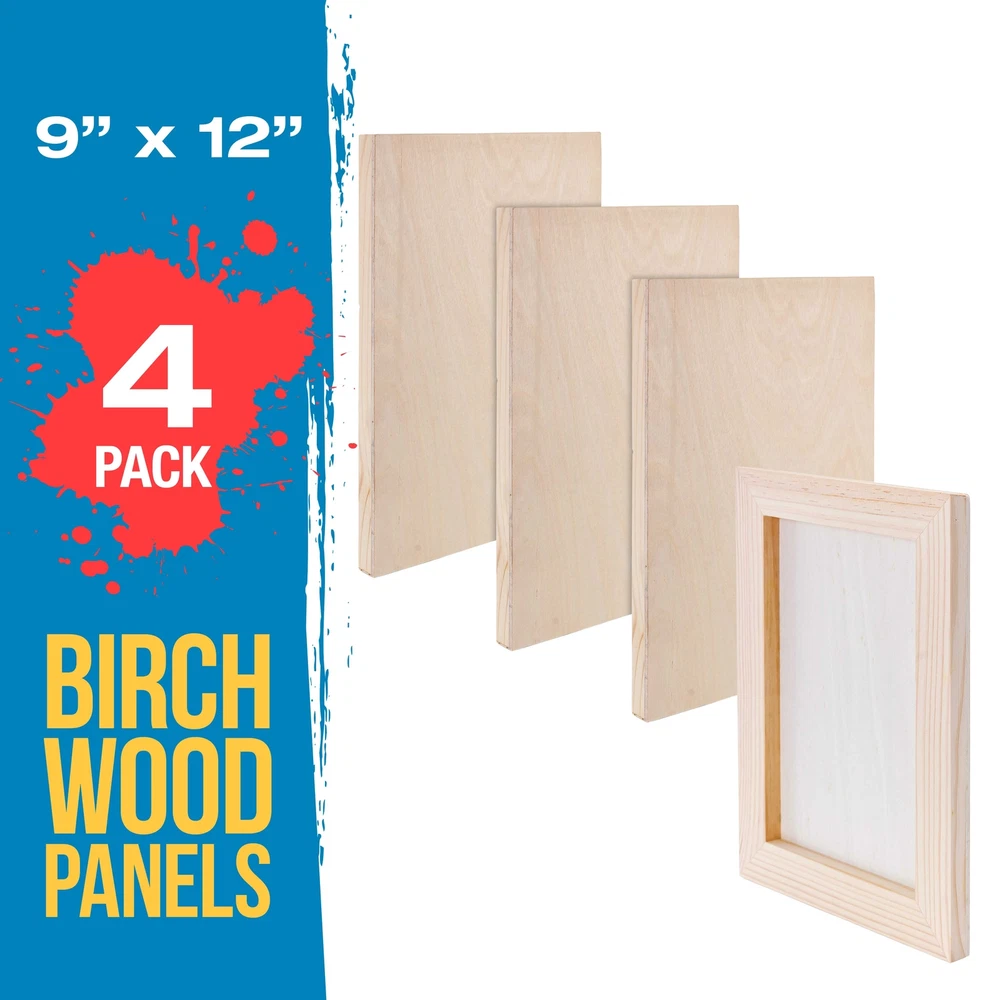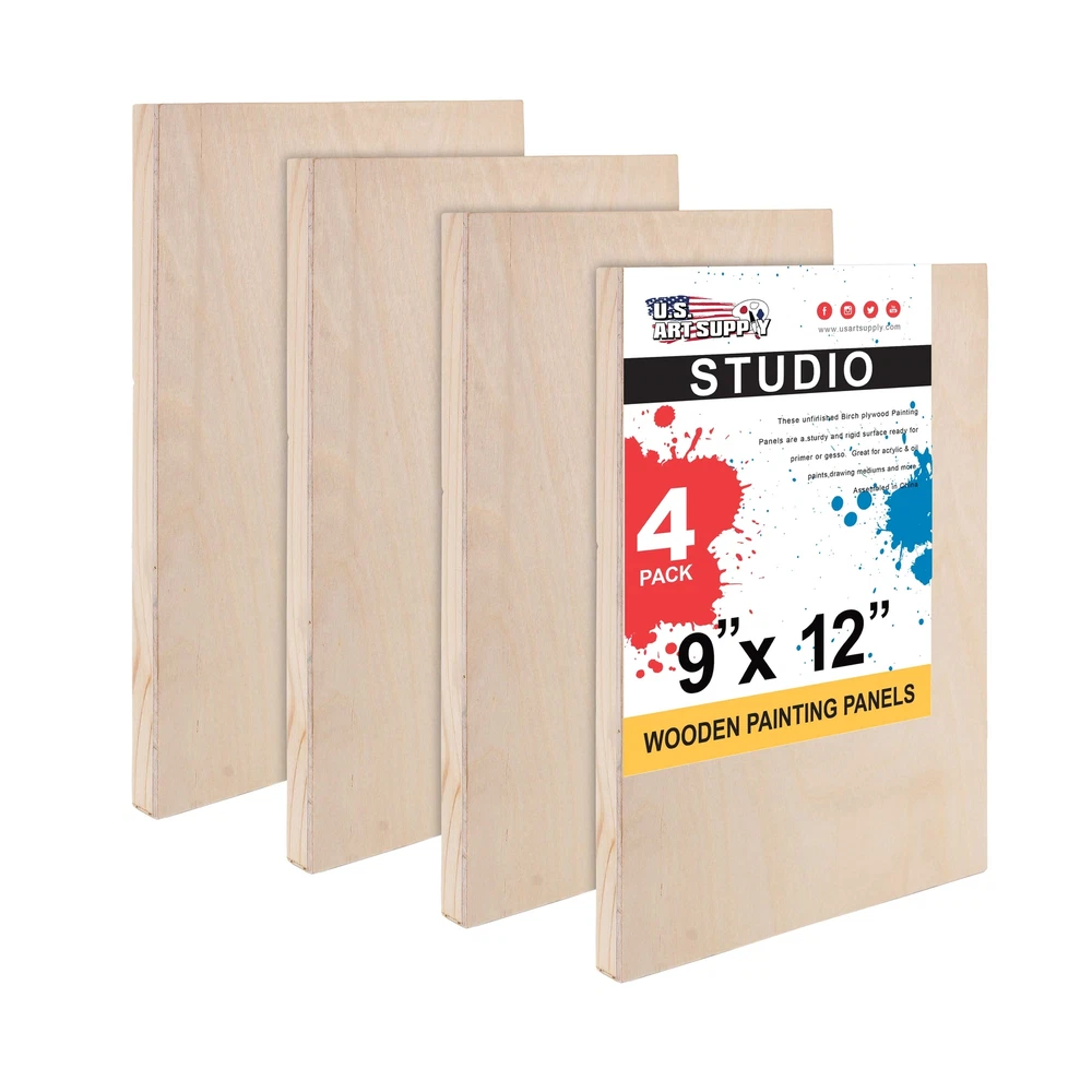 ]]> U.S. Art Supply Ebay Storefront Ordering | Shipping | Returns | International Product Information Part# USA WCS09X12-4PK Unfinished Cradled Wood Panels for Painting, 4 Pack of 9x12 inch - Studio Birch Wooden Canvas Boards 3/4" Deep - Mixed-Media Craft, Acrylic, Oil, Encaustic, Paint Pouring Panel Board 3/4" Studio Depth Panels: Pack of 4 premium artist quality 9" x 12" x 3/4" deep studio depth cradled birch wood paint pouring panel boards. Premium sturdy unprimed smooth birch surface panels that are ready for primer or gesso. Alternative to Canvas: Provides a firm smooth painting surface that will not stretch, flex or bend like traditional art canvases. Unfinished wood panels have smooth sanded birch faces with solid wood cradles that ensure strength, so there will be no warping. Easy to hang, as no frames are necessary. Ideal for Mixed-Media: 9x12 wood Canvas boards for painting. Wooden Panels are excellent for paint pouring and most art and craft projects, as they can be used with all types of mixed-media including oil, acrylic, watercolor, tempera, encaustic, collage, decoupage, impasto, photos, drawing etc... Available in Multiple Wood Panel Size and Depths: Our cradled wood art panel canvases are available in multiple sizes from 4" x 4" up to 24" x 36" and with cradle depths of either 1-1/2" Gallery Panels or 3/4" Studio Panels. Quantity of panels per package also vary from 2 to 5. Our wood panel boards are used by professional artists, as well as the young aspiring artist for creating unique artwork. U.S. Art Supply is a national industry leader in Art Supplies. Buy with Confidence: Backed by a trusted brand dedicated to your satisfaction, we ensure a hassle-free experience every time. U.S. Art Supply 4 Pack 9x12 wooden studio wood panels are great for painting and other crafts. Discover the perfect foundation for your artistic creations with our premium artist birch wood panels for painting. These wood canvas boards for painting offer an ideal surface for artists seeking durability and a smooth texture. These wooden canvases for painting are great for other crafts. Our wooden canvas provides exceptional support, ensuring your paintings stay vibrant for years. Choose from a variety of wood painting panels that combine the natural beauty of wood with a finely sanded finish, perfect for both oil and acrylic paints. Whether you're working on a small project or a large masterpiece, our wooden canvases for painting deliver a reliable and versatile medium. Quantity of panels per package also vary from 2 to 5. Provides a firm smooth painting surface that will not stretch, flex or bend like traditional canvases. Panels have smooth sanded birch faces with solid wood cradles that ensure strength, so there will be no warping. Easy to hang, as no frames are necessary. Our panels are used by professional artists, as well as the young aspiring artist for creating unique artwork. U.S. Art Supply is an industry leader in Art Supplies, so purchase our panels with confidence. One Year - 100% satisfaction guarantee, so if you're not satisfied with these panels at anytime within one year of purchase, we'll provide a refund or replacement.