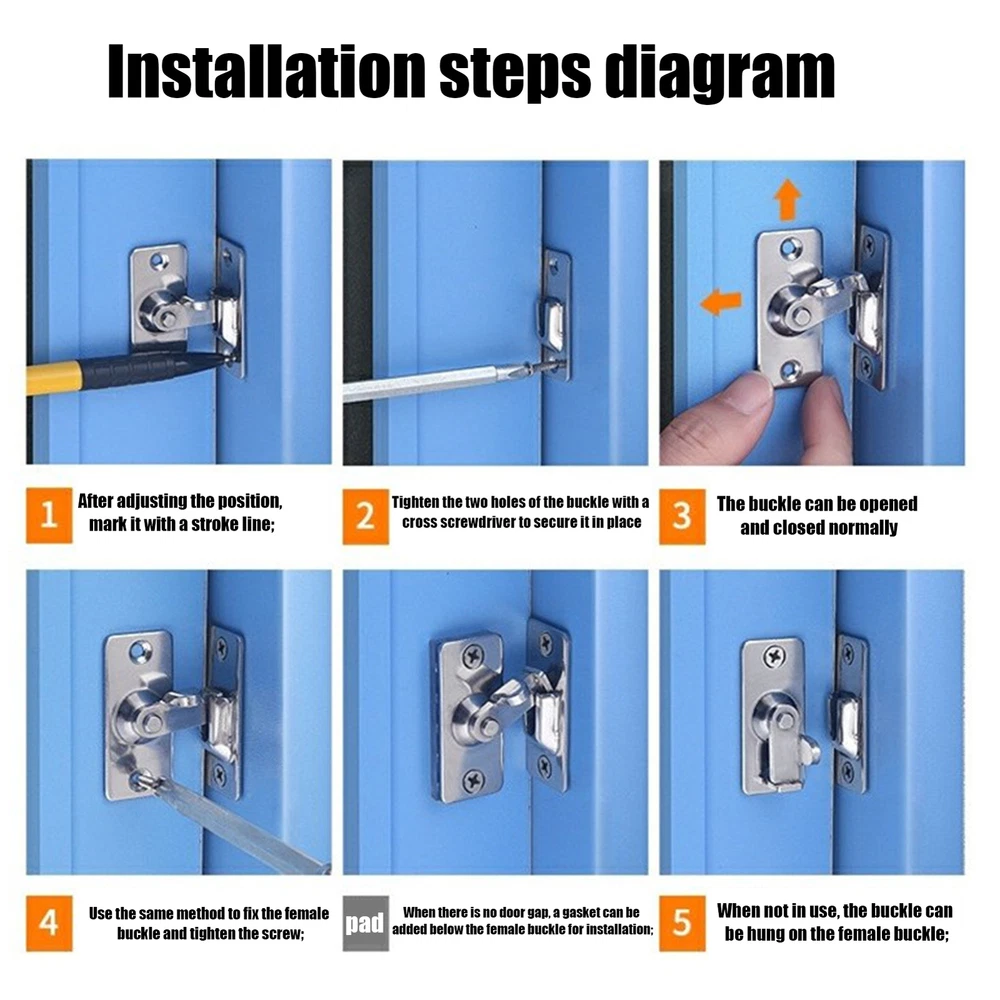 90 Degree Barn Door Latch Lock Sliding Door Lock Sliding Screen Door Latch Set Comes with Screws: Easier and faster installation of small locks, as it comes with 4 screws and contains 1 piece of 90 degree bolt set, making it ideal for sliding door lock applications. Durability and Reliability: Made of stainless steel, this 90-degree door latch has a face brushed and polished with multiple layers, ensuring it will not scratch people or objects; its very smooth face can eliminate erosion, rust, and discoloration, with no burrs, making it solid and strong. Extra Security Protection: This 90-degree door latch provides a safety corner lock, ensuring beautiful appearance while protecting the privacy of bedrooms, bathrooms, and cabinets. Easy to Install: First determine the installation position of the screws, then drill the holes, and finally tighten the screws for a secure 90 degree stainless steel door lock. Beautiful and Practical: Prevent children from reaching dangerous items with this sliding door latch, perfect for bathrooms, kitchens, offices, hotels, etc.; install on doors, pet doors, drawers, or cabinets; suitable for bedrooms, garages, gardens; beautiful and practical. Our 90 degree door lock is the perfect solution for sliding doors! With no burrs, it provides extra security protection while offering a beautiful and practical design.The screws' installation position should be determined first for easy use.Experience peace of mind with this excellent lock. Specification: Product name: 90 degree door latch Product Material: 201 stainless steel Product Size: marked as shown in the picture Product Weight: about 30g Packing List: 90 Degree door latch x1 Note: 1. Due to the different display and lighting effects, the actual color of the product may be slightly different from the color shown in the picture. Thanks! 2. Due to manual measurement, a measurement deviation of 1-3cm is allowed. 1.You can make a Credit payment via Paypal.Paypal will let you use MasterCard,Visa to pay. 2.Payment should be completed within 5 days after auction closed, or unpaid dispute will be filed for an closing auction.An unpaid case will be filled after 4 days. ● We strive for 100% customer satisfaction ! ● Positive Feedback is very important to us. ● We hope that you contact us immediately BEFORE you give us neutral or negative feedback, so that we can satisfactorily address your concerns. ● We promise to offer the lowest price and high quality produce. Dear buyers : ● Welcome to my store ! ● Your satisfaction is our top goal,we appreciate your patronizing. ● If you have any questions, please contact us before leave negative or neutral feedback, we will try our best to solve the issue to your satisfaction, thanks ! ● If you are satisfied with our service, please rate the details of the transaction (Detailed Seller Ratings) on eBay. ● Please always talk to us via ebay Message. ● We appreciate your business and look forward to growing our e-Bay sales with satisfied customers.