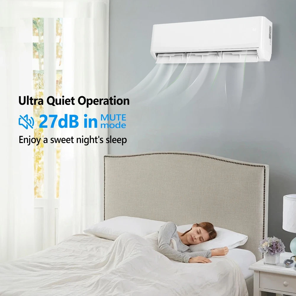 listing template VISIT OUR STORE SIGH UP FOR EMAIL 9000 BTU 24 SEER AC Ductless Mini Split Air Conditioner & Heat Pump,Wifi,Remote 9000BTU/24SEER2 115.00V 680W Split Air Conditioner Split Indoor Unit ABS with WIFI/Cooling/Heating 730W/Dehumidification/Energy Saving Wall Split Unit White Introductions : The smart Split Type Type Inverter Air Conditioners with heating function are made with high quality compressor, high speed pure copper motor & inner spiral copper tube which are powerful to quickly cool down / warm your home, office, garage or apartment for maximum comfort in quiet operation, perfect appliance in hot Summer or cold Winter. Comparing with others, machine featured with high SEER grade, which means that it is more energy efficient and much money saving! This unit also has Sleep, Turbo, ECO, Mute and Timer functions. These functions help you enjoy the true individual comfort. Features: 1. [4-IN-1 Multi-Function] Featured with Cooling, Heating, Dehumidifying and Fan only modes in one compact unit. This mini split AC/heating system is multifunctional. It is ideal for using in home’s bedroom, living roo, kitchen, office, apartment, garage and so on. 2. [Energy Saving] the speed of the air conditioner equipped with frequency converter directly affects the service efficiency of the air conditioner. The frequency converter is a control system used to control & adjust the speed of the compressor to make it always in the best speed state, so as to improve the energy efficiency ratio (at least 35% more energy-saving than the conventional air conditioner). This 24 SEER2, 9000BTU, 115V/60Hz, Energy Star&AHRI Certified AC unit with a heat pump is featured high quality compressor for more efficient cooling and longer working life; Higher SEER grade & Eco-friendly design which leads you for money saving ( please confirm voltage before making purchase) . 3. [Quiet Cooler & Heater] Ultra Silent at only 27-42 dB(A) and beautifully built adds a touch of elegant charm to your room. In sleeping & mute mode, It's able to maintain the temperature while you are sleeping. And you can use the 24-hour timer in combination to free you from additional worries. Featured with 4-way swing function, unit provides scientific airflow in your room to suit your comforts in just a few minutes. Best choice to decorate your home. 4. [Smart Operation] Operating this conditioner is an easy-understanding and enjoyable cooling experience (61-88degree Fahrenheit ). We can set all functions on remote control (Fan Speed Selection, Sleep Mode, 24 Hour Timer, ECO Mode, Turbo Mode, and Mute Mode). Built-in microprocessor chip & sensor in the remote controller makes it more convenient to operate the air conditioner from a distance. Digital LED display controls offer precise temperature adjustments and the remote control lets you control the air conditioner from across the room. At the same time,there are Smart Control at Your Fingertips. Manage all of your products with the APP, which works from absolutely anywhere. There’s no need to even get up from the couch. 5. [Washable Air Filter] This indoor AC machine comes with a permanently washable and easy cleaning air filter. Keep your air conditioner running more efficiently by cleaning the filter once a month. Specifications: 1. Color: White 2. Power Supply: 115V~60Hz 3. Cooling : Rated Capacity: 9000 Btu/h Rated SEER2: 24 Btu/W.h Rated EER2: 13 Btu/W.h Rated Input power: 680W 4. Heating: Rated Capacity: 10000Btu/h HSPF2 Rating (Region IV): 10Btu/W.h Rated Input power: 730W 5. Operation temperature: (16~31)degree Celsius/(61~88)degree Fahrenheit 6. use the air conditioner in the following temperature conditions. Indoor(cooling/heating): 17 ~32degree Celsius(63 ~90degree Fahrenheit)/0 ~27degree Celsius(32 ~80degree Fahrenheit) Outdoor(cooling/heating): 15 ~55degree Celsius(59 ~131degree Fahrenheit)/-15 ~24degree Celsius(5 ~75 degree Fahrenheit) 7. Refrigerant type: R454B/25.04ozs/710g 8. Connecting Pipe:Gas 3/8'' Liquid 1/4'' 9. Moisture removal: 1.1L/h 10. Indoor air circulation/Hi : 650/550/450 m³/h 11. Indoor noise level at cooling(Turbo/High/Med./Low/Mute): 42/39/34/29/27dB(A) 12. Signal Cable Length: 19FT/5.8M 13. Application Area: Up to 400 sq.ft 14. Certificate : Energy Star,AHRI, ETL 15. Indoor Dimensions: 82x30.6x19.5cm(32.28×12.05×7.68inch) indoor Net weight: 9.4kg/20.7Ibs 16. Outdoor Dimensions:81x30.5x54.9cm(31.88x12.00x21.61inch) Outdoor Net weight: 24.3kg/53.6lbs Package Includes: 1 * Indoor Unit 1 * Outdoor Unit 2 * Copper Line set(16.4FT) 1 * Signal Cable(19FT) 1 * Remote Control 2 * Drain Hose(13.1FT) 1 * Drain Joint 4 * Rubber Feet 1 * Tape 1 * Sealing Gum 1 * Screw Pack 2 * Liner Cover You might like this more>> Portable Princess Castle Play House Blue Large Kids Play Tent $23.79 Double Shoe Rack Closet Shelf Storage Organizer $19.49 Oil Painting Easel Sketch Box Portable Folding $57.49 FCH L-Shaped Corner Computer Desk Home Office Desk $109.99 10 Tier Durable Storage Organizer 30 Pair Shoe Tower $18.99 24 Slots PU Leather Wrist Watch Box Display Case Organizer $16.99 Shipping Policy 1. Ship from New Jersey by Standard Int'l Shipping, and only to VERIFIED PAYPAL ADDRESS . 2.International Buyers – Please Note: a. Import duties, taxes and charges are not included in the item price or shipping charges. These charges are the buyer’s responsibility. b. Please check with your country’s customs office to determine what these additional costs will be prior to bidding/buying. 3. Please check your shipping address carefully before checkout, it can't be changed if order completed. 4. All items will be shipped to buyer's ebay address. Before you pay, please make sure your address in ebay match the address you would like us to ship to. 5. Ship within 1 business day once payment completed. We do not ship on weekends or public holidays. 6. Item normally will arrive in 10-15 business days but sometimes goes to 25-30 business days for remote area. That is depends