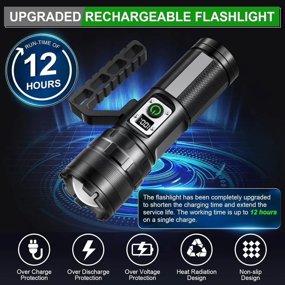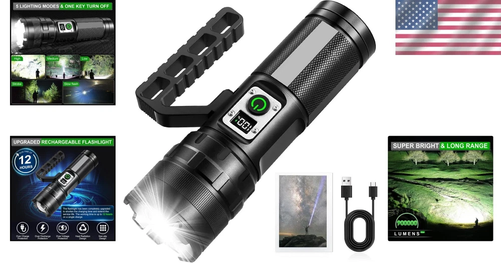 900000 Lumens Rechargeable LED Flashlight - Heavy-Duty Water-Resistant Light ‹ › ‹ › ‹ › ‹ › ‹ › ‹ › ‹ › ‹ › 900000 Lumens Rechargeable LED Flashlight Heavy-Duty Water-Resistant Light Features: Unparalleled Brightness: Emits an astounding 900,000 lumens, 35 times brighter than regular LED flashlights, illuminating spaces up to 200 square feet or focusing on objects 3280 feet away. 11 Adjustable Light Modes: Tailor your lighting with High, Medium, Low, Strobe, and Slow flash options. The COB Rear light offers Warm and White light, plus Red and Red warning lights for safety in crisis. Long-lasting Power: Equipped with a 2750mAh high-capacity rechargeable battery, providing up to 12 hours of continuous illumination in low mode. Quick Charging: Features a built-in type-C fast charging port, with a charge time of just 4-5 hours. The digital screen keeps you informed about the battery's status. Virtually Indestructible: Constructed from rugged anodized aviation aluminum, this flashlight can withstand extreme conditions, including sub-zero temperatures and heavy impacts. IPX6 Waterproof Design: Built for endurance in wet conditions; the hidden charging port safeguards against rain and snow, making it perfect for any adventure. Benefits: Perfect for outdoor activities: hiking, camping, fishing, and biking. Reliable home emergency tool and a must-have for roadside repairs or nighttime walks. Compact, lightweight design for effortless portability. Ideal gift for outdoor enthusiasts and anyone who values safety and preparedness. Comprehensive after-sales support from a dedicated team to address any concerns. Why choose our 900000 Lumens Rechargeable LED Flashlight? Illuminate your world with unparalleled brightness and reliability. Whether you're navigating through a dark forest, fixing your vehicle at night, or simply seeking peace of mind, this flashlight offers powerful, adaptable lighting solutions tailored to your needs. With its exceptional features and sturdy construction, this flashlight stands out as a crucial companion in any situation. Don’t settle for ordinary; elevate your illumination experience with this advanced LED flashlight. Order yours today and ensure you’re prepared for any adventure or emergency! Shipping Free & Fast Shipping - We offer free shipping to most of the USA with a normal delivery time of 3-7 days. However, due to the current situation, additional delivery time (up to 3 weeks) may be required for some items. Alternative Carriers - We may use alternative carriers (e.g. USPS, FedEx, UPS, etc.) to ensure your package arrives safely and on time. Due to the use of multiple carriers, we are unable to provide a tracking number automatically. Handling Time - Orders are processed and shipped within 1-2 business days of receiving cleared payment. Shipping Restrictions - Shipping to Alaska, Hawaii, Puerto Rico, Guam, and other US territories may incur shipping charges or delivery restrictions. Please contact us before ordering, or your order can be refunded/cancelled. State Restrictions - There may be restrictions based on your state of purchase. For example, certain items may not be shipped to California due to state regulations. Contact for Tracking Updates - If you require tracking updates or have any concerns about the delivery of your order, please feel free to contact us, and we will be happy to assist you. Return 30-Day Hassle-Free Returns - We want you to be completely satisfied with your purchase. If you are not, you can return the item within 30 days of receiving it for a full refund or exchange. Easy Return Process - To start a return, simply contact us and we will provide you with a prepaid return shipping label and detailed instructions. Restocking Fee - There are no restocking fees for returns. However, the buyer is responsible for return shipping costs if the return is not due to a seller's error. Refund Processing Time - Refunds will be processed within 5 business days of receiving the returned item in its original condition. Payment We accept all major credit cards, PayPal, and Apple Pay for your convenience. Your payment information is secure and encrypted to ensure a safe and seamless transaction. Please complete your payment within 3 days of purchase to avoid any delays in shipping. Feedback Your feedback is extremely important to us. We strive to provide the best products and customer service possible. If you are satisfied with your purchase, please take a moment to leave us a positive review. If you have any concerns or issues with your order, please contact us before leaving negative feedback. We are committed to resolving any problems and ensuring your satisfaction. Contact Us If you have any questions or concerns, please feel free to reach out to our customer support team. You can contact us through the eBay messaging system. We are available Monday to Friday, 9:00 am to 5:00 pm EST, and we will do our best to respond to your inquiry within 24 hours. Thank you for supporting our small family business! UPC: Not Set Voltage: Rechargeable LED Flashlight Item Height: Rechargeable LED Flashlight Item Length: Rechargeable LED Flashlight Item Weight: 1.87 lb Item Width: Not Set Model: Not Set Lumens: 900000 Number of LEDs: Not Set Unit Quantity: 1 Features: Rechargeable,Waterproof,Adjustable Light Modes,Portable,Long Range,Weatherproof Material: Aluminum Brand: Unbranded Type: Flashlight Lighting Technology: LED Power Source: Battery Operating Range: 3280 feet MPN: Not Set Battery Technology: NiMH Number of Batteries: 1 Color: Black Country/Region of Manufacture: Not Set IP Rating: IPX6 Operating Time: More Than 10 Hours Number of Lights: 1-3 Unit Type: lb Personalize: Not Set