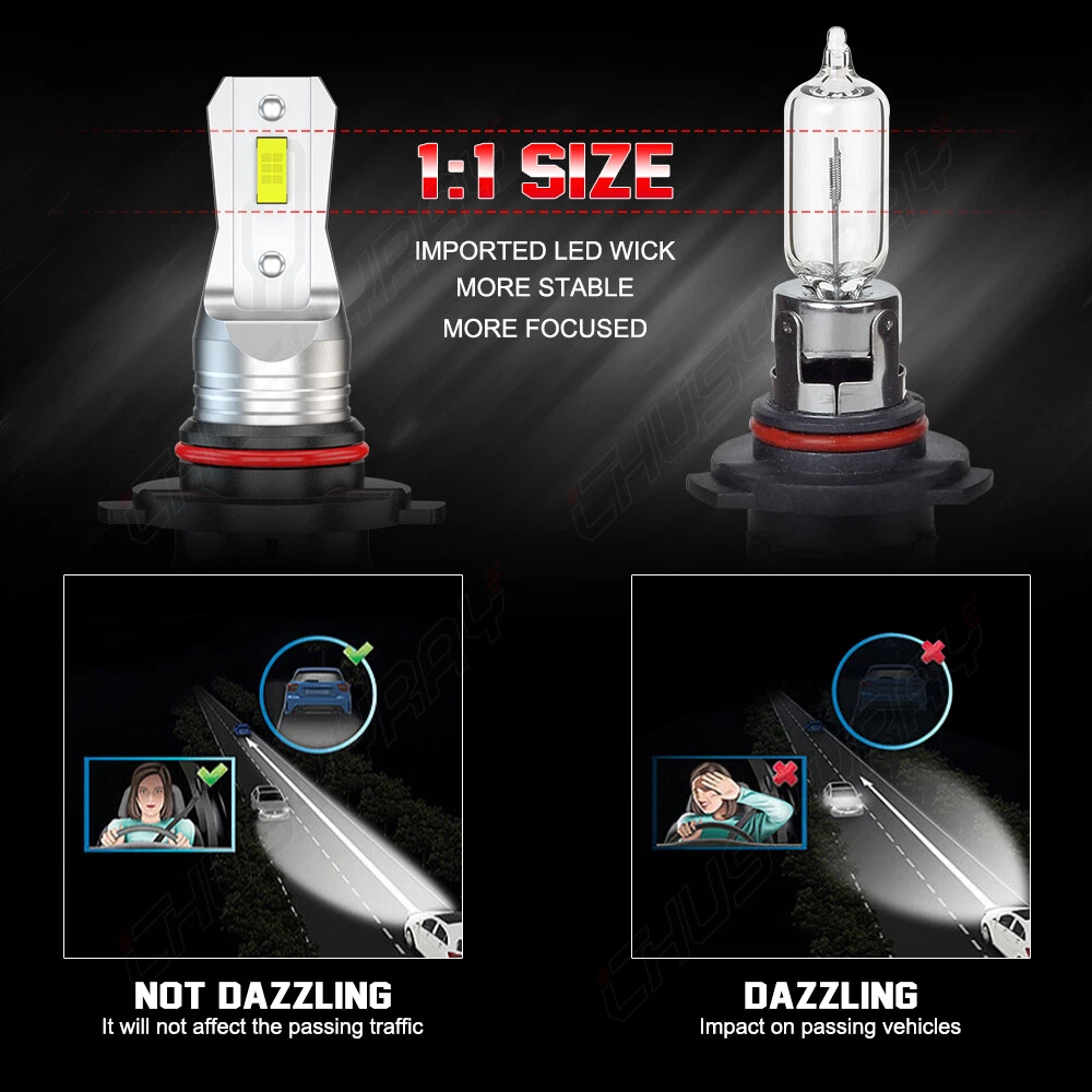 Product Advantages: 9005 (High Beam) + 9006 (Low Beam) High brightness High temperature resistant High purity of luminescence Good stable performance Built-in Driver Ballast Instant on fast cooling Energy saving environmental Long lifespan(>50000hr) Interchange Part Number: Use for high Beam, Low Beam, DRL or Fog Lights… LED Type: 6Pcs Led Chips Each Bulb Other Part Number: 6000K (Xenon HID Pure White) Head Light Lamp Bulbs Beam Angle: 360 Degrees Placement on Vehicle: Left, Right, Front Color: 6000K (Pure White Color) Condition: 100%Brand New/ Never Used Need additional Parts or Modification? 100% Integrated Design, Plug and Play. (Few vehicles may require load resistors to stop flickering or fix error message) Package include: 4x LED Headlight Bulbs 9005 (High Beam) + 9006 (Low Beam) Features: 1.Each Bulb have 2 sides of Super Bright LED Chips 2.Complete Kit: No Other Ballast/Driver Required Just Plug and Play - Newest Technology 3.Beam Angel: 360 Degrees 4.Color Temperature: 6000K Pure White 5.Smart Efficient Cooling System, Fast Heat Dissipation 6.High quality Aluminum heat dissipation ensures the secure temperature range 7.Low Power Consumption than Halogen bulb or Hid Kit, Energy Saving 8.Low Voltage Protection, High Precision Constant Current driver Chip 9.Shakeproof and Long lasting up to 50,000 Hours. 10.Easy installation, Plug and Play, NO modification required 11.Operating Temperature: -40°C ~ +80°C Automotive LED headlamps advantages: 1. LED lights than traditional halogen energy, more power. 2. Xenon lamp brightness and proximity , but the LED lights light up without delay, to enhance road safety. Instant start no strong currents impact , effectively protecting the car comes with a battery , improving battery life of more than 30%. 3. Fast cooling , the appearance of the most advanced design , thermal structure ingenious and reasonable. Less warranty, power driver with wide voltage constant current mode , the car can respond to a variety of voltage instability , the effective protection of normal use Led efficient and simple structure . Fewer Components damaged, repair the probability is very low , compared with HID ballast repair lower than 80% . 4. Heating temperature is low , protect the car . Xenon working temperature up to 800 ° -1000 ° , the main reason for the car ignition . 5. LED car headlights simple structure, fewer parts than xenon lamps, significantly lower than the xenon lamp failure rates ! 6. Automotive LED headlamps color temperature balancing. The Xenon bulbs in the same color to clear , about 6000K-6500K. Install Caution 1. As a safety precaution, make sure that the car has had time to cool down properly before starting the installation process. 2. Put the vehicle into park or make sure it is securely in gear. 3. Make sure to have the ignition turned off and the keys removed. 4. Be careful to avoid burns, especially when turning on or off the vehicles lighting. 5. Be careful to avoid crushing or cutting the bulbs. Also make sure to not touch the bulbs with your fingers, as this will cause blotting. 6. Fully examine the connection of the contact points, ports and the wires as faulty connections can cause lighting problems. 7. Make certain that the end of the bulb does not come in contact with the interior light shield of the headlight when adjusting the bulb. Brand New High Quality with Reasonable Price Fast Ship from KY or CA within 1 business day Tracking# Is Available With Free Shipping 60 days money-back guarantee & free return
