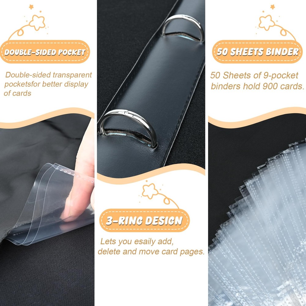 This 9-pocket card binder is a game-changer for collectors! It holds up to 900 cards securely with its double-sided pockets, and the sturdy PU zipper keeps everything safe. The pages are crystal clear, making it easy to showcase your favorite cards while keeping them organized. Perfect for trading, gaming, or just storing your collection—durable, spacious, and totally worth it!