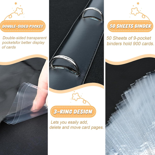 9 Pockets Trading Card Binder with 900 Double-Sided Pockets, PU Zipper Top Loader Binder with 50 Removable Sleeves for Basketball Baseball Football Playing TCG Card LuxeFusion Product Description Features 【900 Pocket Design】- The exquisite RJVW card collect binder has 50 pages of double-sided transparent pockets, with each side holding 9 cards, allowing you to collect up to 900 cards! The extra-large capacity can hold all your cards! The card binder’s card page pockets measure 2.8*3.9 inches, perfect for storing the cards you wish to collect. This trading card binder is not only designed to protect your cards but also serves as an excellent way to showcase your collection! 【Unique Design】- The sport card binder comes equipped with removable metal clips, allowing you to easily add, remove, and move card pages. The transparent pocket design makes it easy to perfectly display your cards! The RJVW sport card binder also features a wrist strap, making it convenient for both children and adults to carry, whether at home or on the go. Take your cards with you and show them to your friends! 【Multiple Protection】- RJVW playing card binder’s surface is made of PU leather material, making it waterproof and stain-resistant. The top loader binder’s exterior has been reinforced to protect your cards from being squeezed! Additionally, the trading card binder is equipped with a zipper design, ensuring your cards are safely stored. This is a must-have for card collectors! 【Compatible with Multiple Cards】- The RJVW card binder is compatible with standard-sized cards, such as baseball cards, basketball cards, star trading cards, TCG cards, 3 inches photos, playing cards, and more. If you have a collection of cards, you’ll definitely need this RJVW card holder binder! 【Perfect Gift】- This is a perfect gift designed for card enthusiasts. The beautiful card binder offers multiple protections for your cards and can be given as a birthday, Christmas, New Year, or holiday gift. It’s the ideal present for card collectors, kids, and friends! Product Details Brand: RJVW Occasion: New Year, Chirstmas, Birthday, Thanksgiving Color: Black Material: Polyurethane (PU) Specific Uses For Product: Photo Album, Card Storage Recommended Uses For Product: Trading Card, Recipe Card, Stamp, Camera Film Target Audience: Adults Model Name: CASC-001 Included Components: 50 Removable Sleeves Special Feature: Dust Resistant, Lightweight, Large Capacity, Stain Resistant, Flip Style: Classic Shape: Square Product Dimensions: 13.1"L x 10.4"W x 2"H Occasion: Christmas, Birthday, Halloween, Valentine's Day Pages: 100 Pages Size: Large Number of Pieces: 900 Max Input Sheet Capacity: 900 Manufacturer: Shenzhenshi Jinglongyu Dianzishangwu Youxiangongsi Item Weight: 2.38 pounds Country of Origin: China Item model number: CASC-001 Item Package Quantity: 1 Special Features: Dust Resistant, Lightweight, Large Capacity, Stain Resistant, Flip Batteries Required?: No Brand: RJVW Occasion: New Year, Chirstmas, Birthday, Thanksgiving Color: Black Material: Polyurethane (PU) Specific Uses For Product: Photo Album, Card Storage 🚚 Free Shipping All orders ship free and fast to your doorstep. 🔁 Easy Returns Satisfaction guaranteed. 30-day returns, no questions asked. 💬 24/7 Support Contact us anytime; we’re here to help, day or night. Brought to you by LuxeFusion – Quality you can trust.