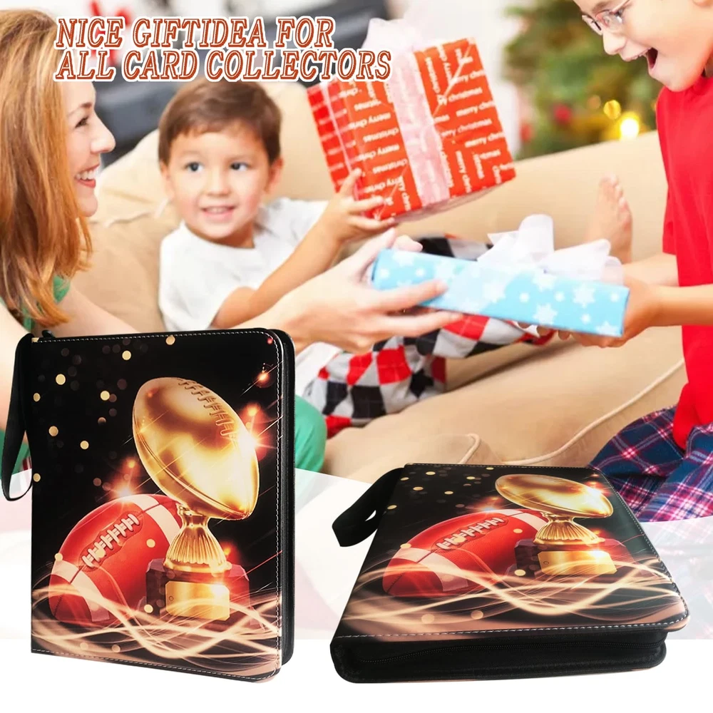 Football card binder is made of high quality PU leather, durable and waterproof. Highly transparent card sleeve for easy display and browsing. The zipper design ensures that the cards cannot be lost. All-round protection for your cards. The 9-pocket card binder with 50-page sleeve can hold 900 cards. Store and display your cards in this trading card binder to keep them organized. Compatible for Different Card, Trading card binder fits all standard size cards like soccer card football cards, baseball cards, top aces, game cards, attack cards and more. 【Football Card Binder 9 Pocket】Each football card binder has 50 pages, each page has a double-sided card slot,holds up to 900 cards. hobby. Fits any standard, 3-hole pages or paper. It is refillable/expandable, It means that you can arbitrarily increase or reduce the number of internal Pages. 【Waterproof PU Fabric】Sport card binder is made of premium PU leather, they can be easily wiped even if they are accidentally covered with a little stain. The middle layer is protection material-Velvet, which has good shock and moisture resistance and provides a series of protection. 【 Unique design】Football card binder with sleeves have a unique design, bright and colorful cover design, and football fans like this design to make them look different. The extra wristband design makes the card binder easy to carry to your friend's house or travel. 【Applicable to Various Cards】Trading card binder applicable to various cards,It is compatible with other standard cards such as YuGiOh, Magic Cards, Football Cards, Baseball Cards, Game Cards etc. 【Ideal Gift】 Help kids develop good storage habits. or as an album for school supplies! This is an ideal gift for card collectors, Sports fan, children and friends